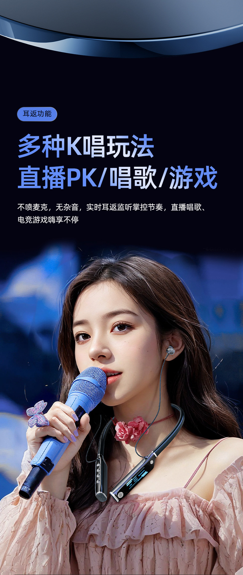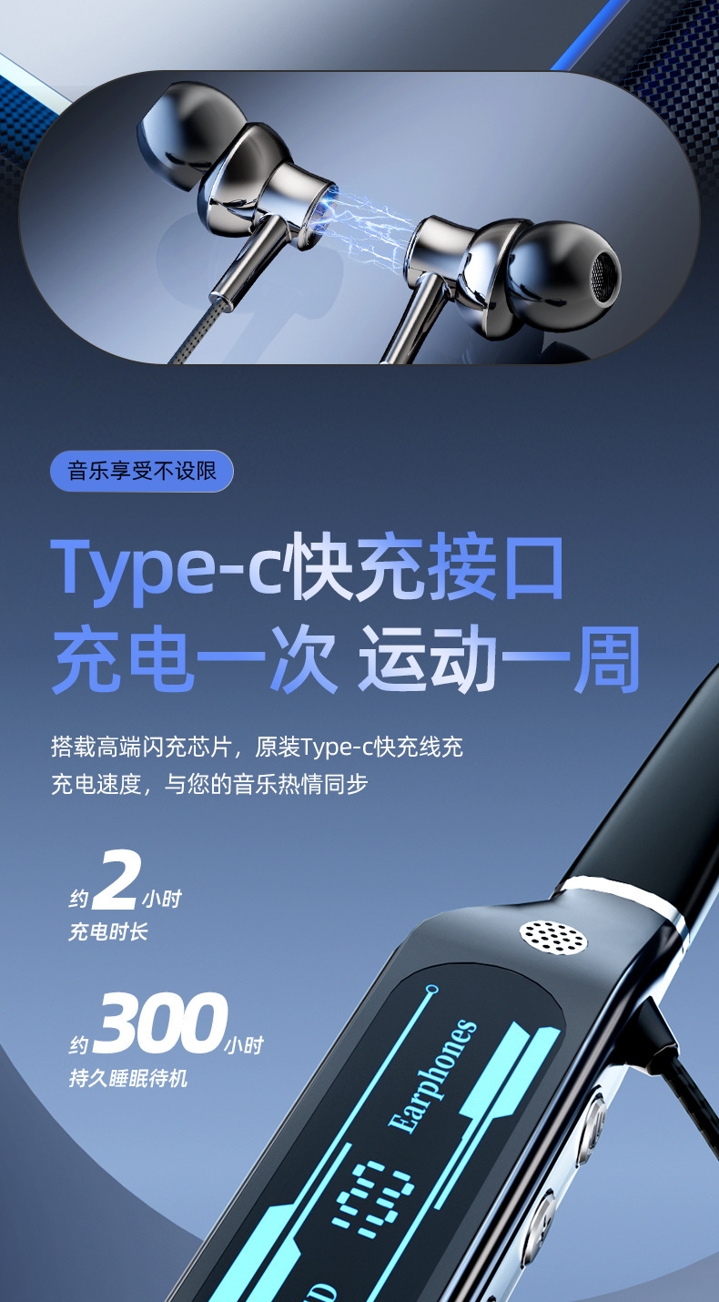 신형 V9 넥밴드 블루투스 이어폰, 스포츠용 노이즈 캔슬링, 초장시간 배터리, 중저음 강화, 디지털 디스플레이, 이어폰 리턴 기능 탑재, 해외 직구 전용스토어 가기