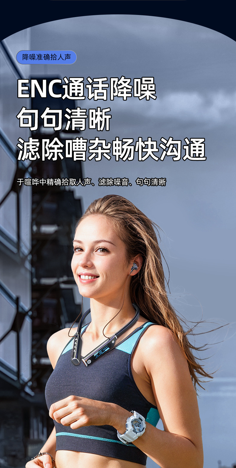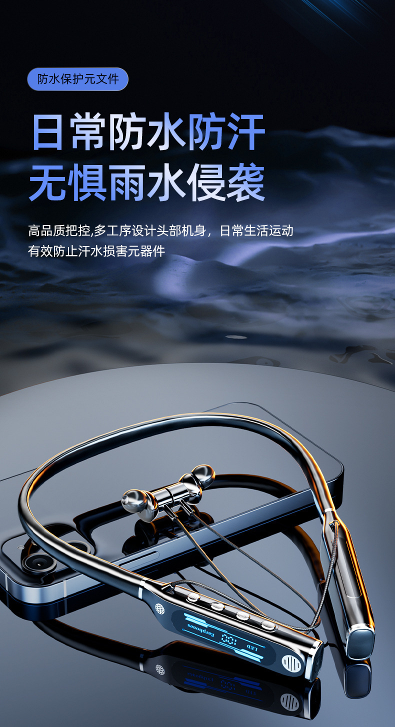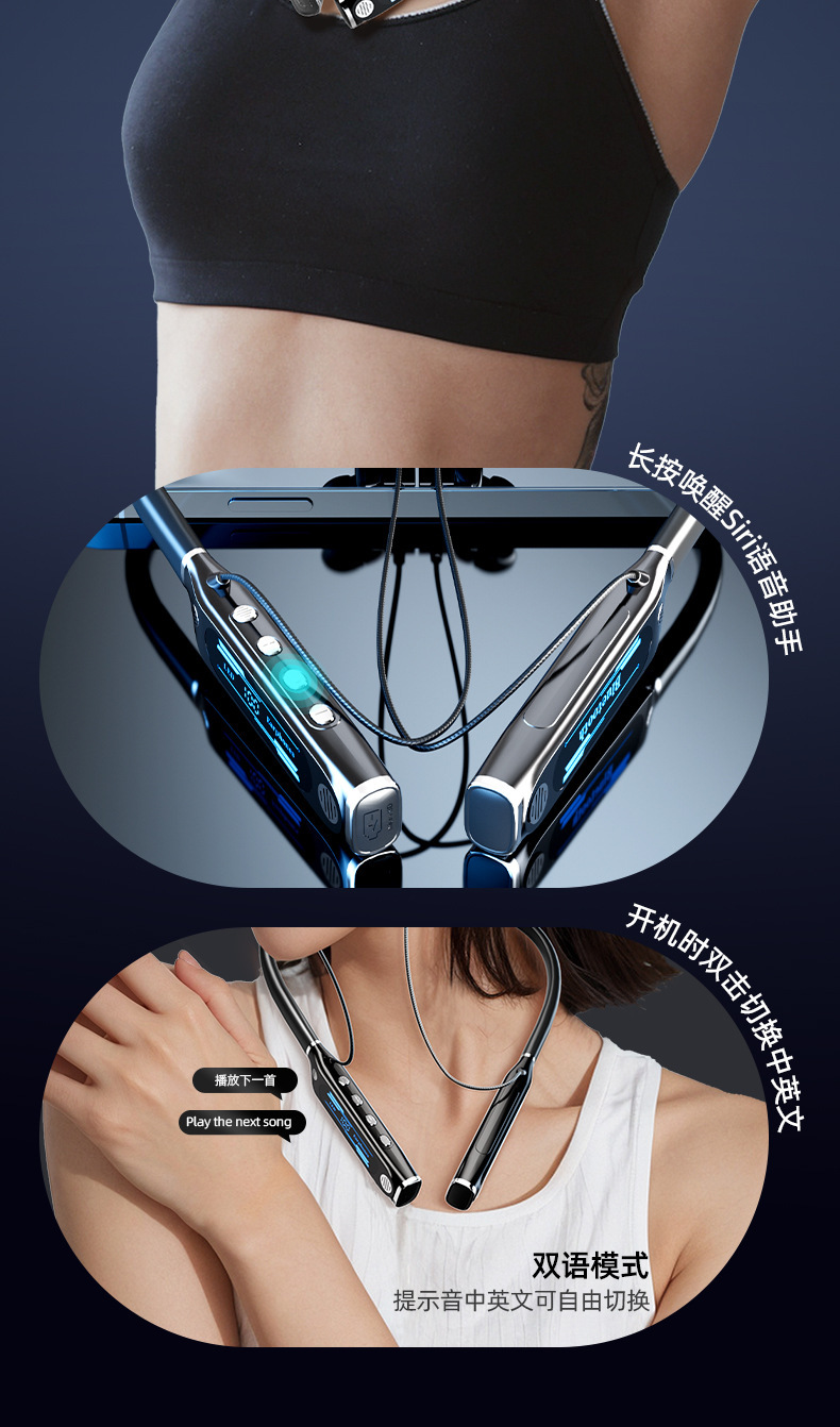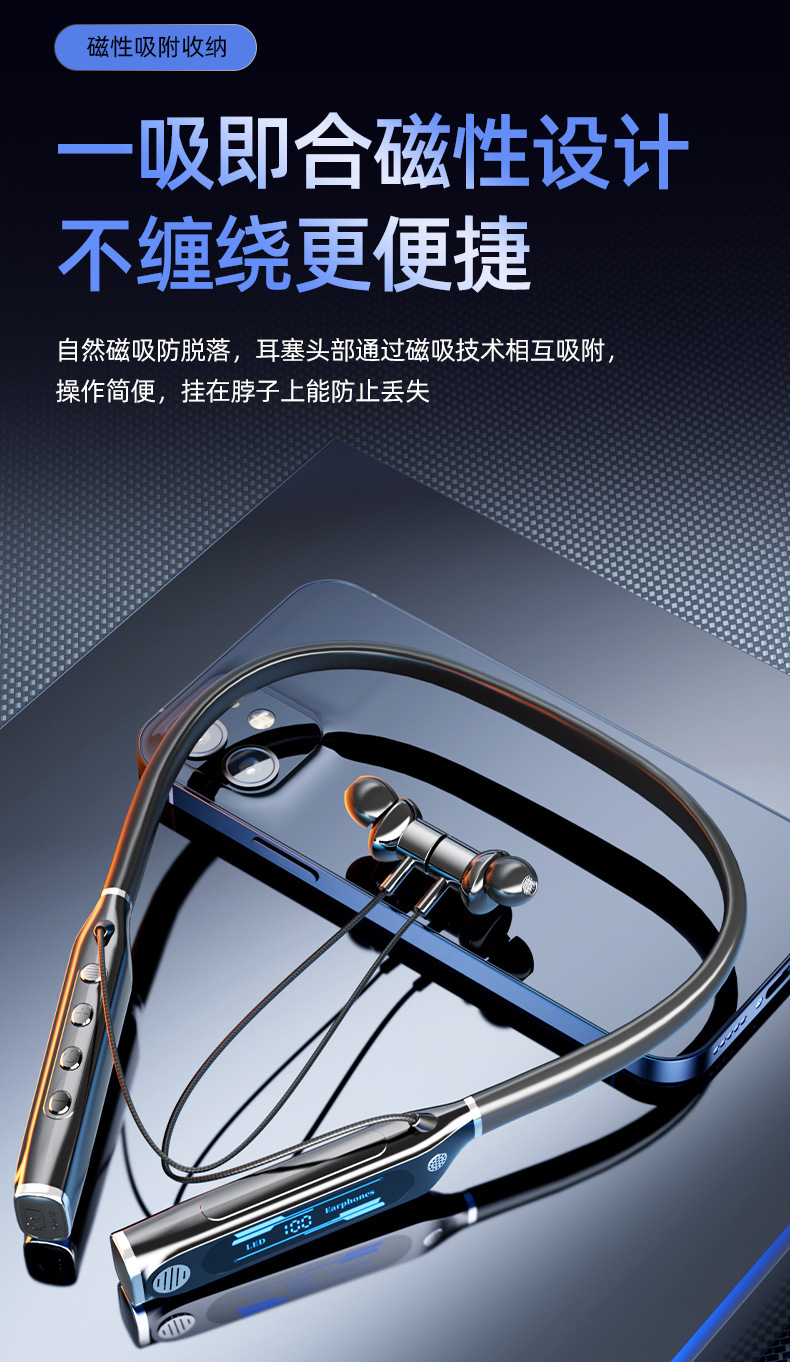 신형 V9 넥밴드 블루투스 이어폰, 스포츠용 노이즈 캔슬링, 초장시간 배터리, 중저음 강화, 디지털 디스플레이, 이어폰 리턴 기능 탑재, 해외 직구 전용