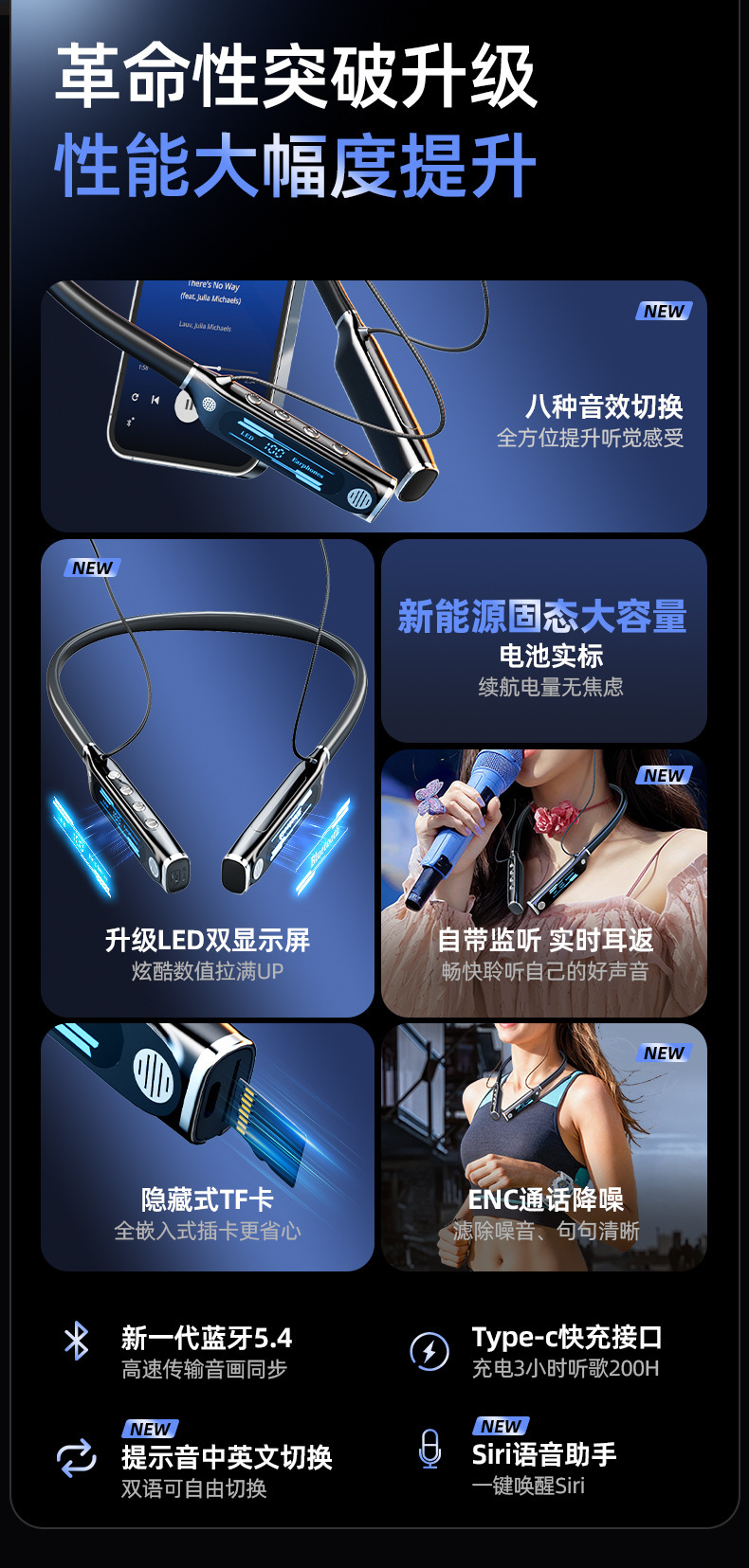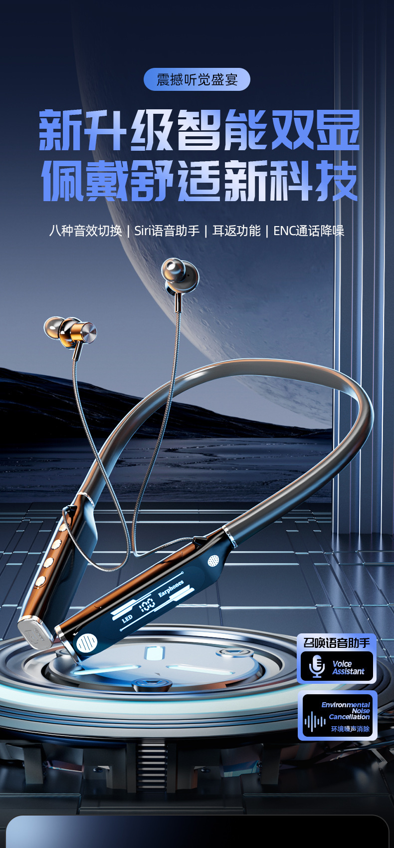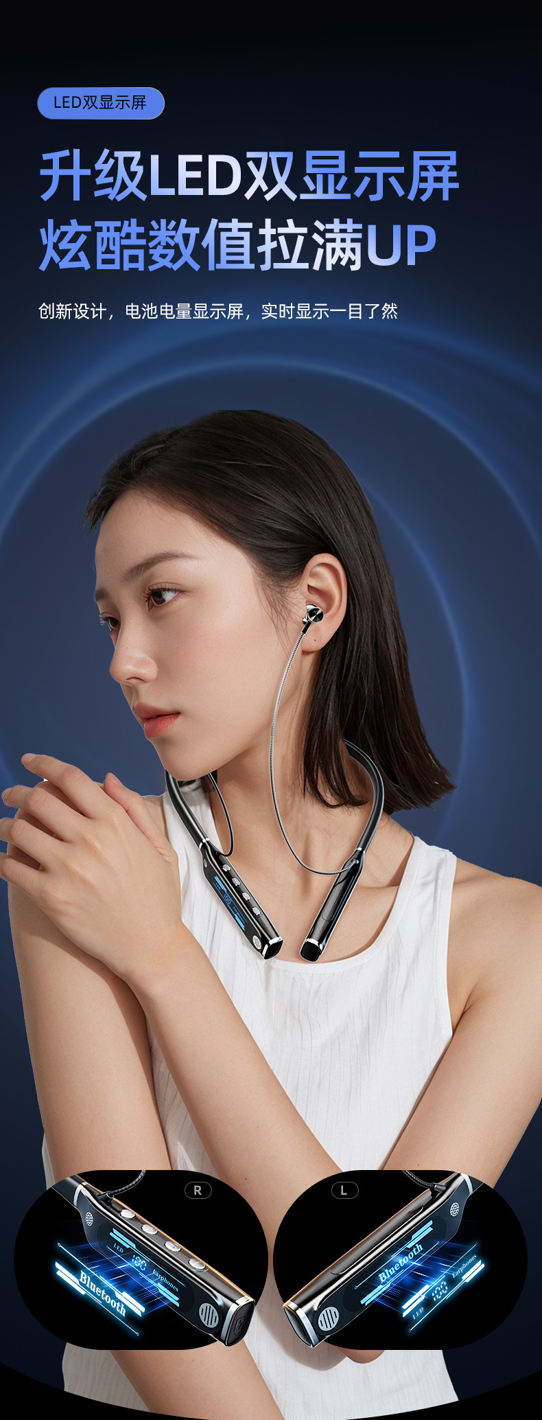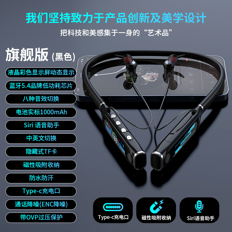 신형 V9 넥밴드 블루투스 이어폰, 스포츠용 노이즈 캔슬링, 초장시간 배터리, 중저음 강화, 디지털 디스플레이, 이어폰 리턴 기능 탑재, 해외 직구 전용