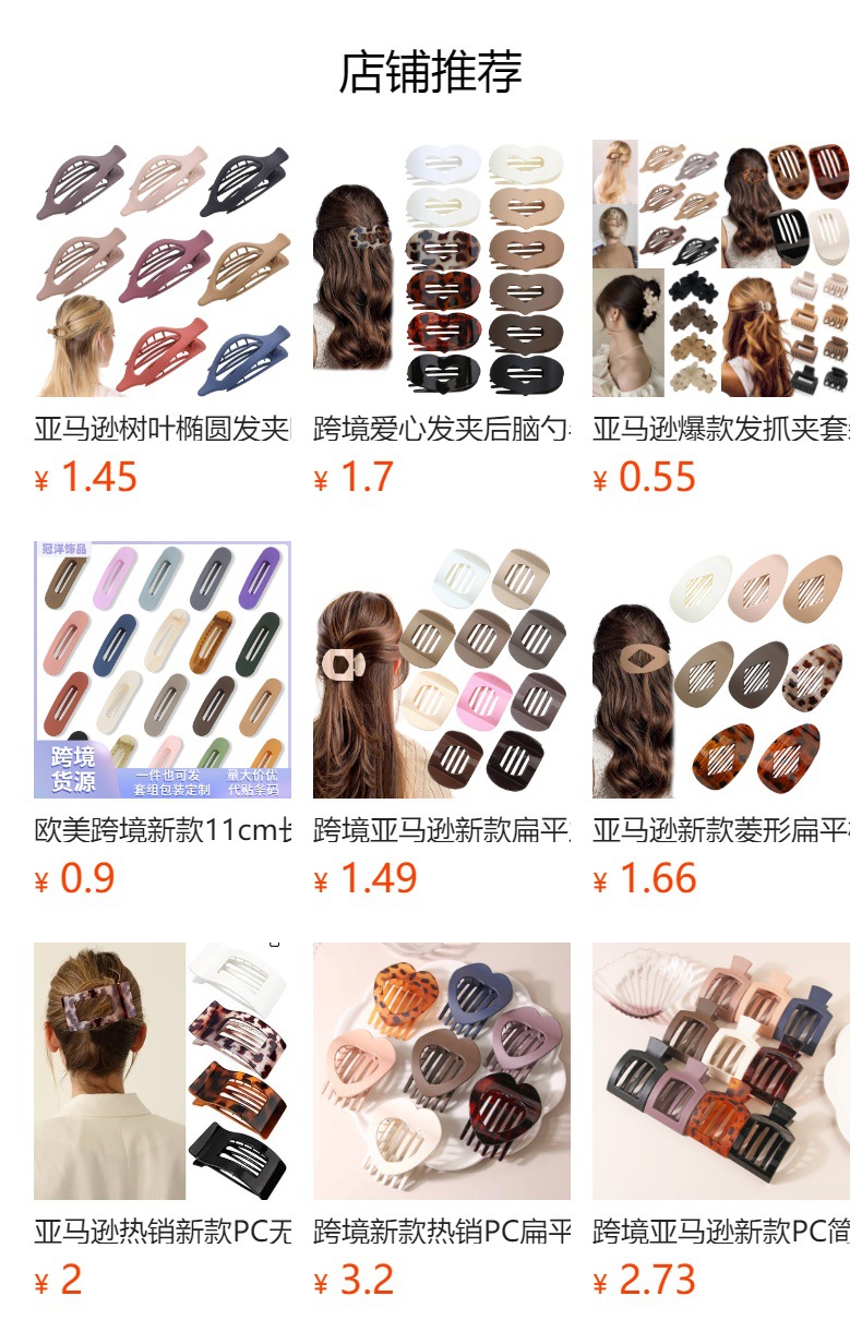 국경을 넘나드는 새로운 인기 판매 플랫 타원형 머리핀, 덕빌 클립, 뒷머리 클립, 강한 그립력, 간단한 클립 헤어 액세서리스토어 가기