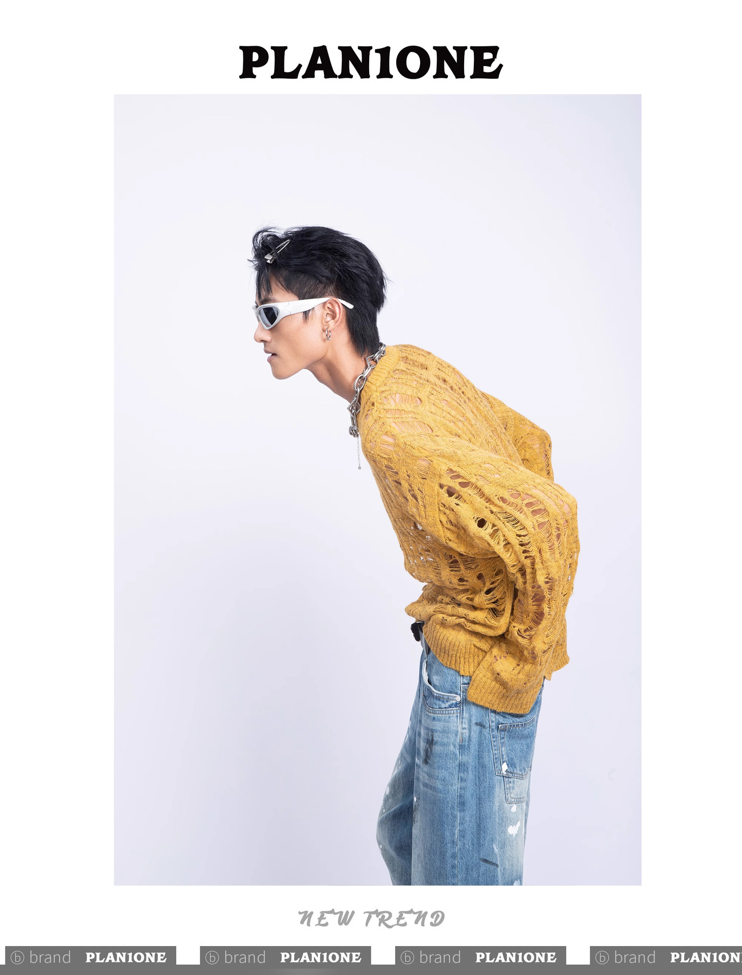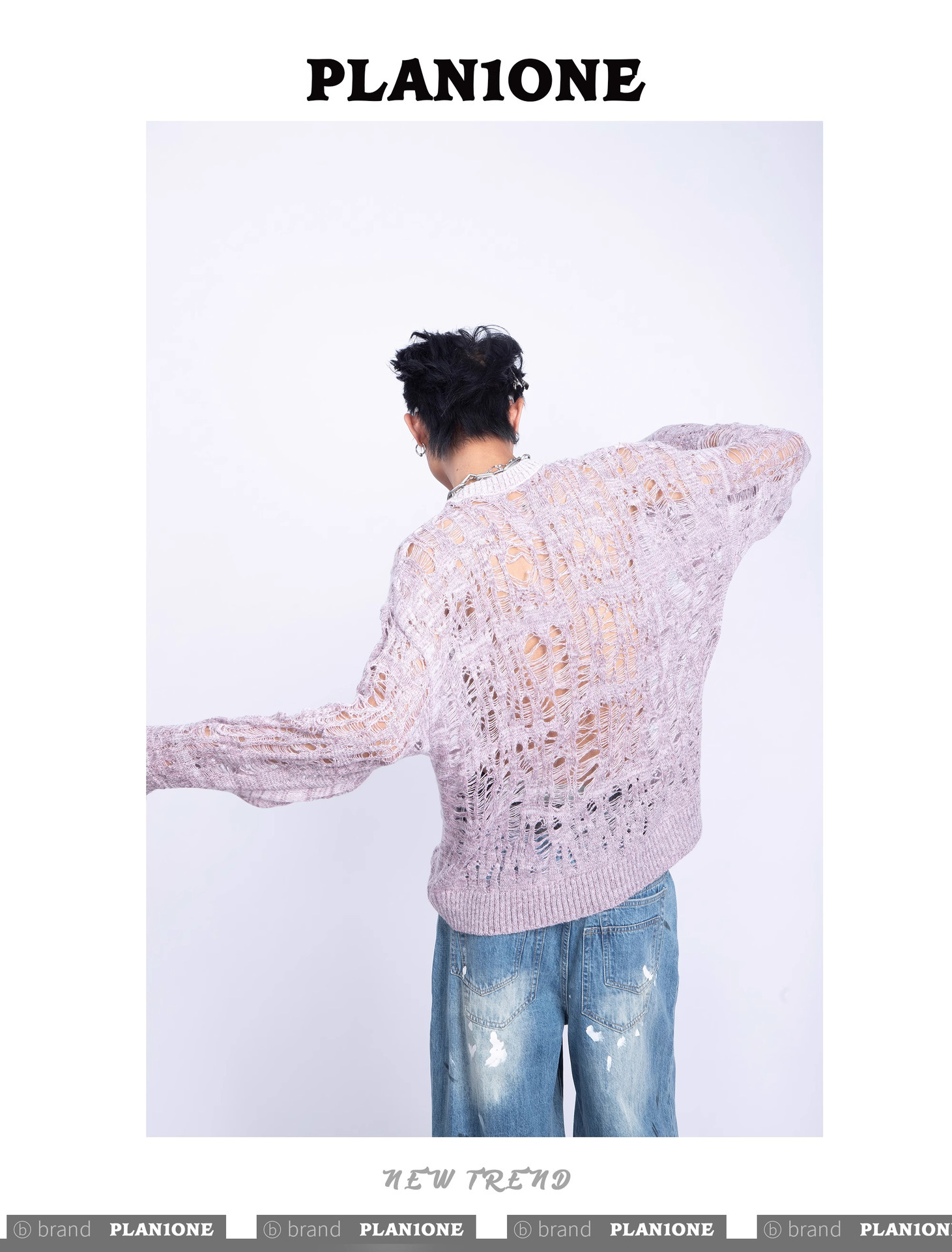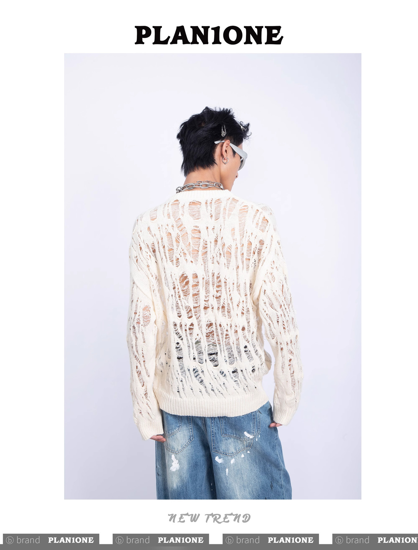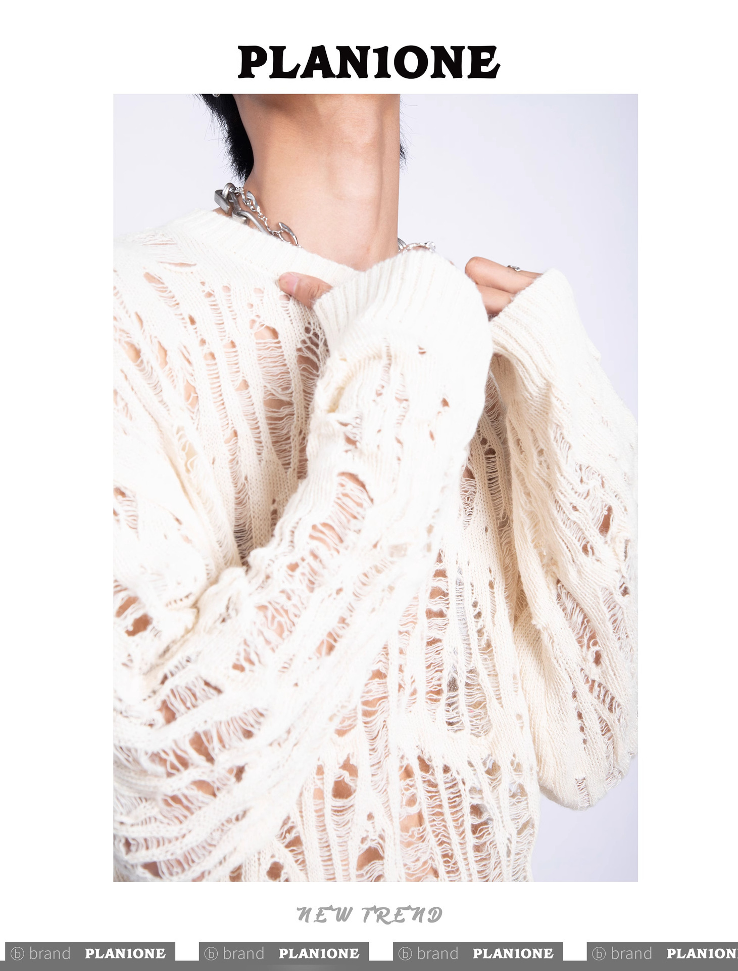 이른 가을 새로운 느슨한 빈 구멍 니트 스웨터 남자 하이 엔드 센스 게으른 선 스크린 프로필 스웨터 캐주얼 탑스토어 가기