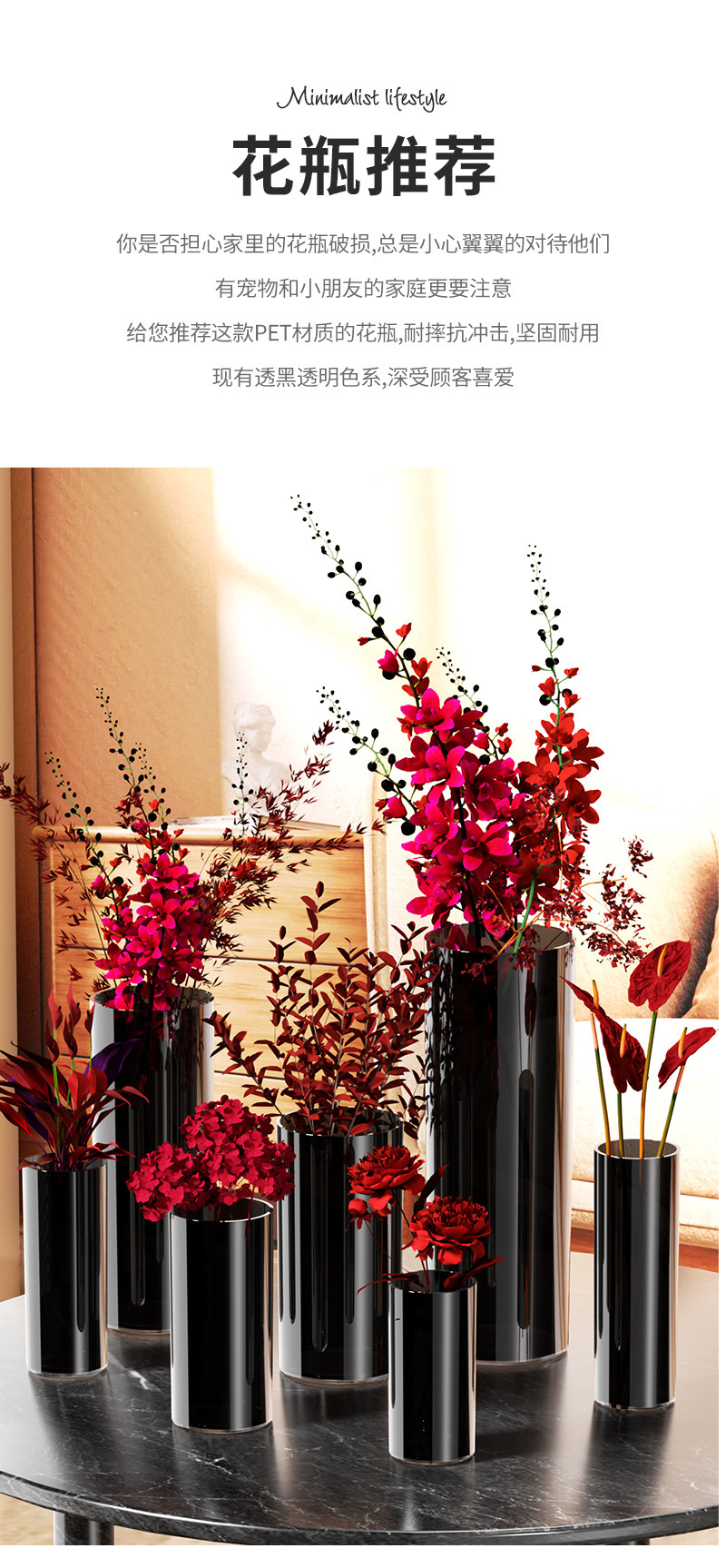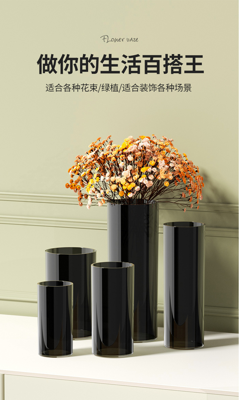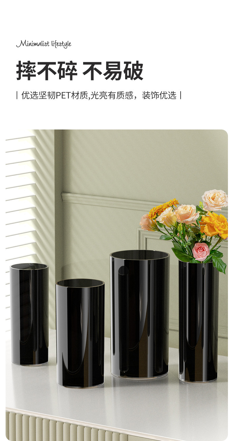 북유럽 스타일 꽃 양동이 순수한 검은 꽃병 큰 둥근 꽃 튜브 스트레이트 꽃 냄비 풍부한 대나무 꽃 높이 꽃 양동이스토어 가기