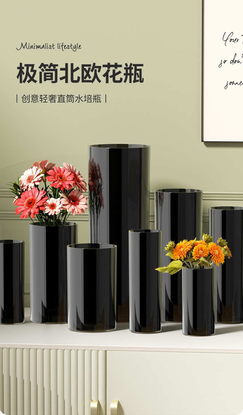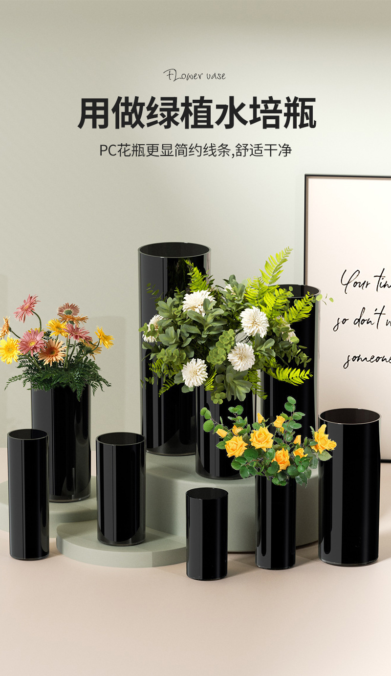 북유럽 스타일 꽃 양동이 순수한 검은 꽃병 큰 둥근 꽃 튜브 스트레이트 꽃 냄비 풍부한 대나무 꽃 높이 꽃 양동이