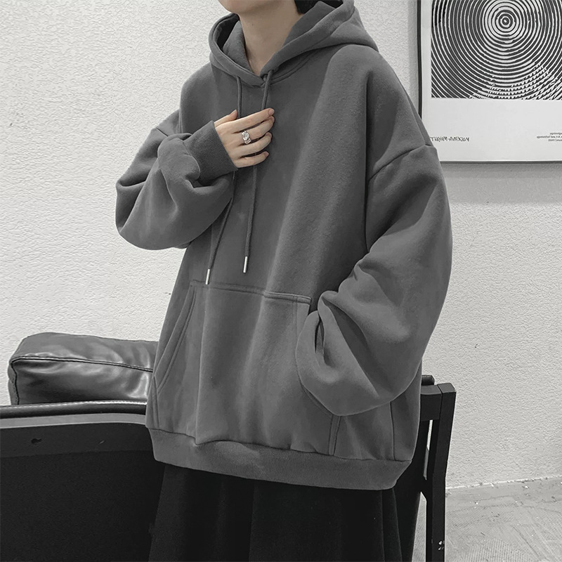 • 다크 그레이 후드 스웨트셔츠 레귤러 스타일 - 솔리드 컬러 [GL]