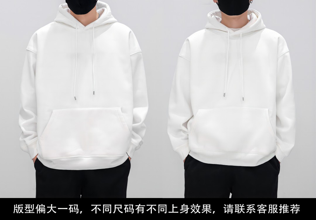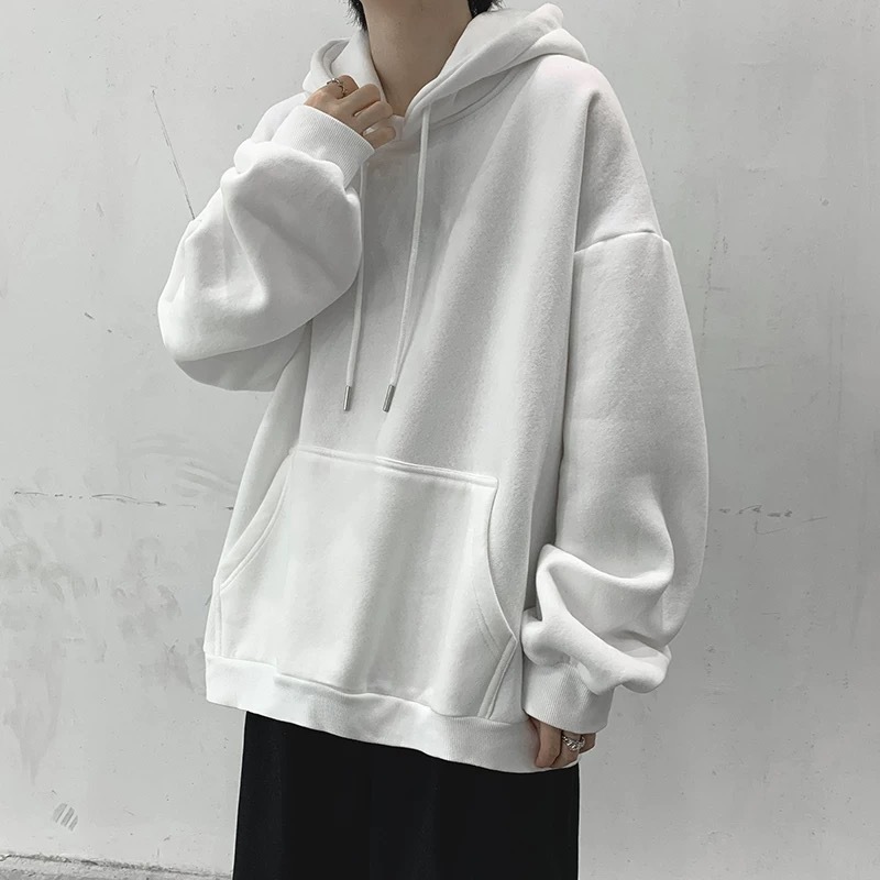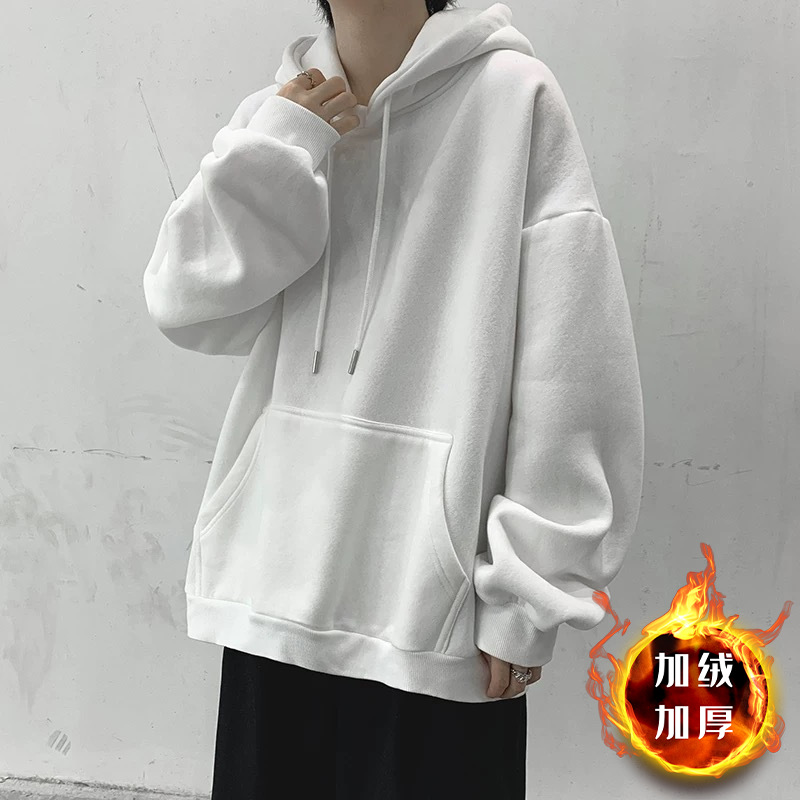 • 화이트 후드 스웨트셔츠 플러스 벨벳 - 솔리드 컬러 [GL]