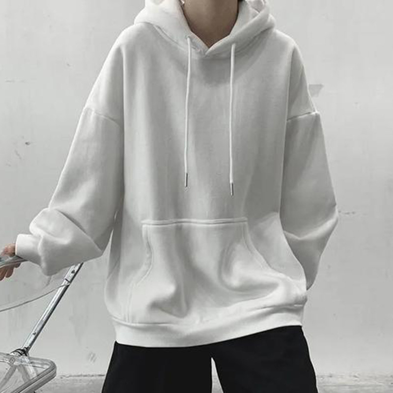 • 화이트 후드 스웨트셔츠 레귤러 스타일 - 솔리드 컬러 [GL]