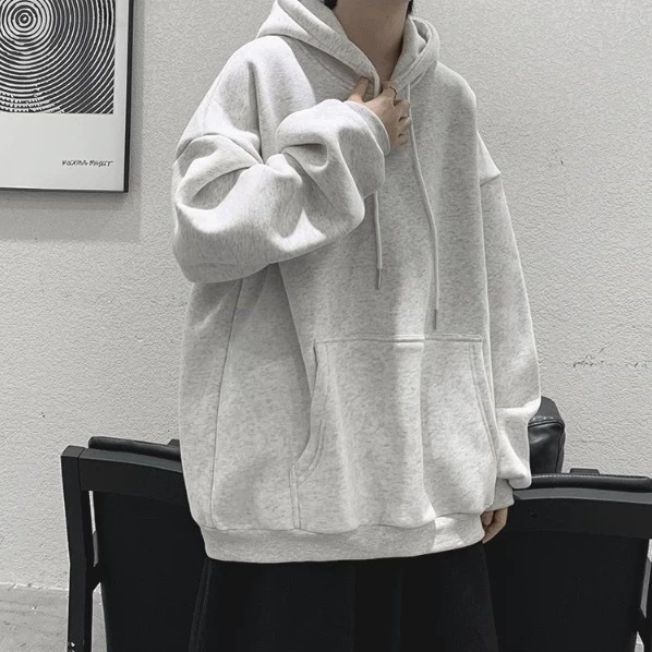 • 라이트 그레이 후드 스웨트셔츠 레귤러 스타일 - 솔리드 컬러 [GL]