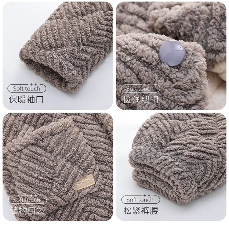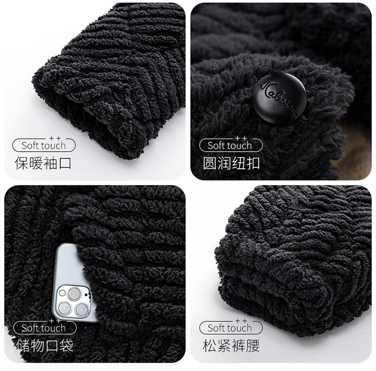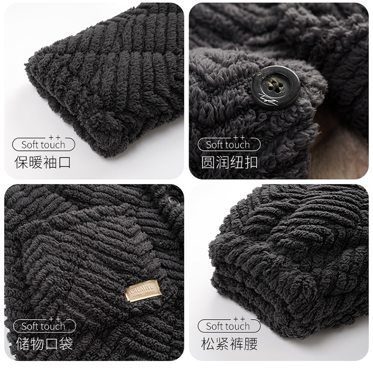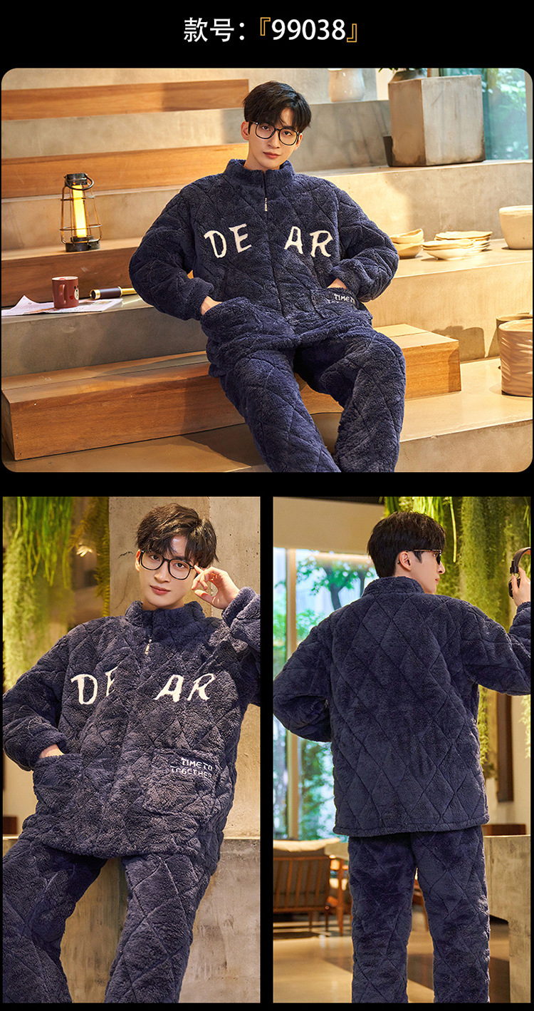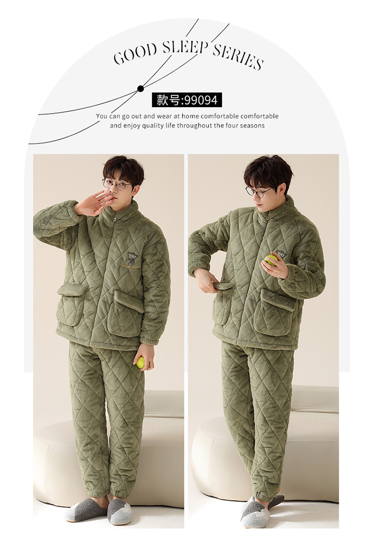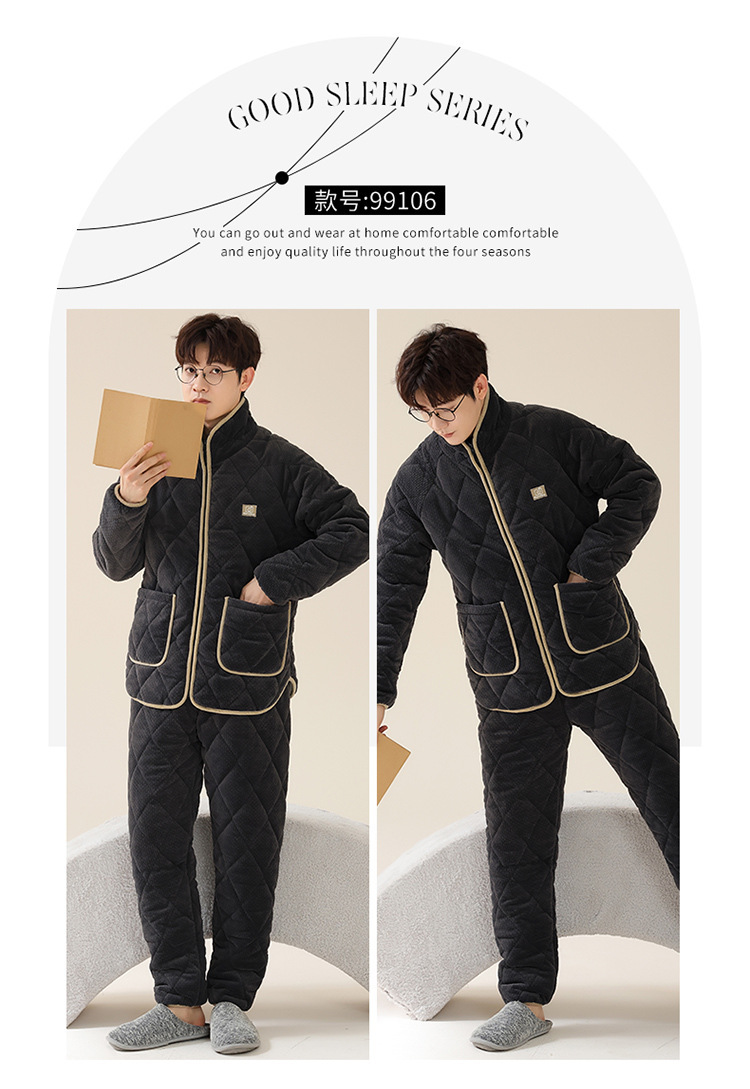 두꺼운 기모 겨울 남자 퀼트 플란넬 긴 소매 잠옷 카디건 따뜻한 세트 가을과 겨울 홈 옷스토어 가기