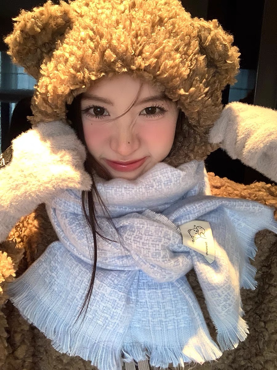 밀크 Hoo 귀여운 블루 베어 솔리드 컬러 스카프 여성의 가을과 겨울 학생 부드러운 따뜻한 두꺼운 목도리 스카프 패션