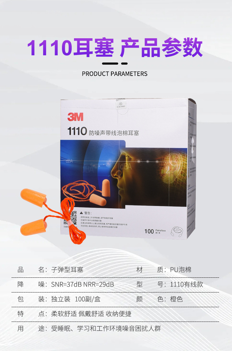 3M1110 거품 귀마개 선택 전문 기숙사 공장 사용 소음 방지 벨트 라인 별도의 포장 슬리핑 스폰지 귀마개스토어 가기