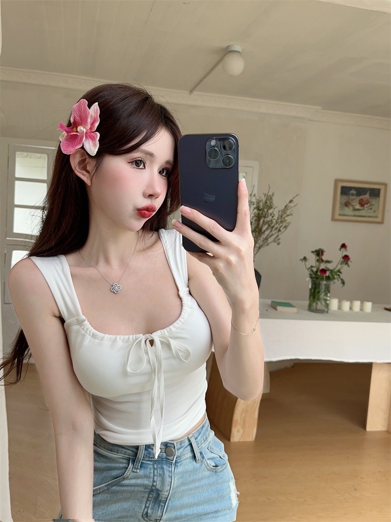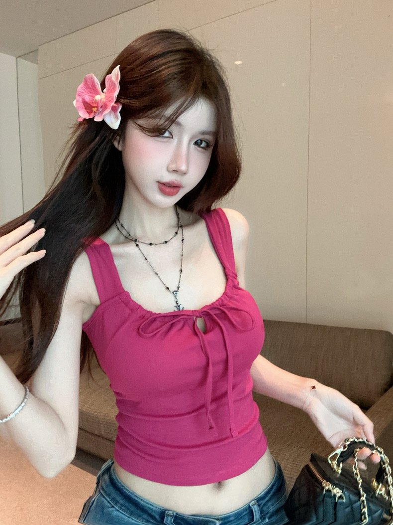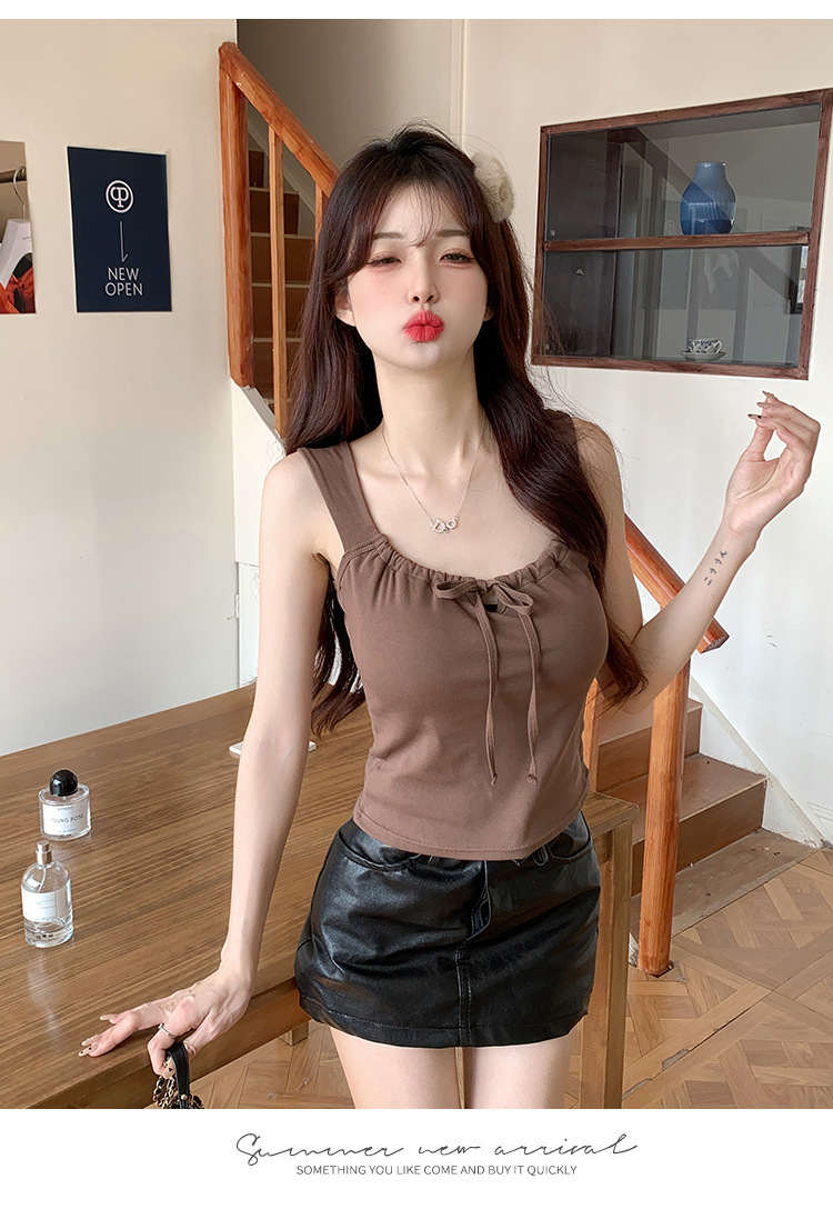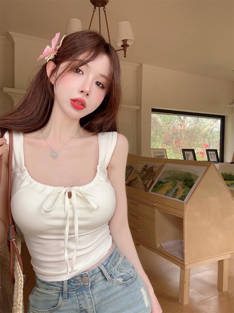 퓨어 스파이스 걸 스타일 레이스 업 카미 솔 여성 Comes-in Chest Pad Exterior-Wearing Slim-Fit Slimming Inner Base Top스토어 가기