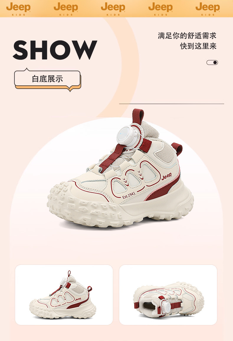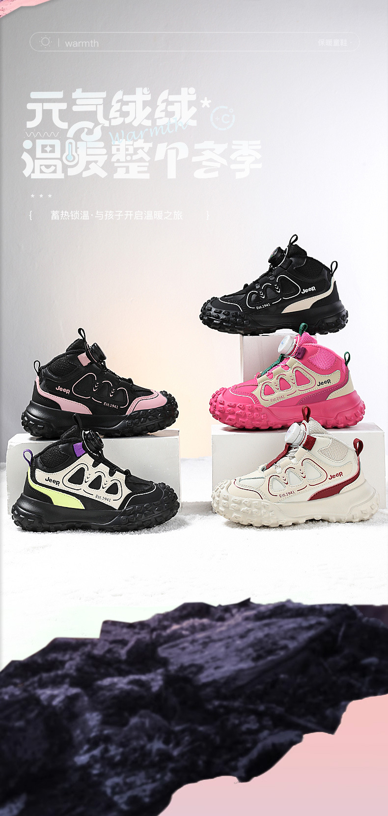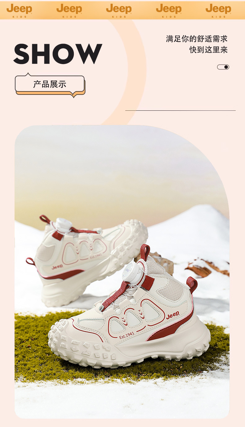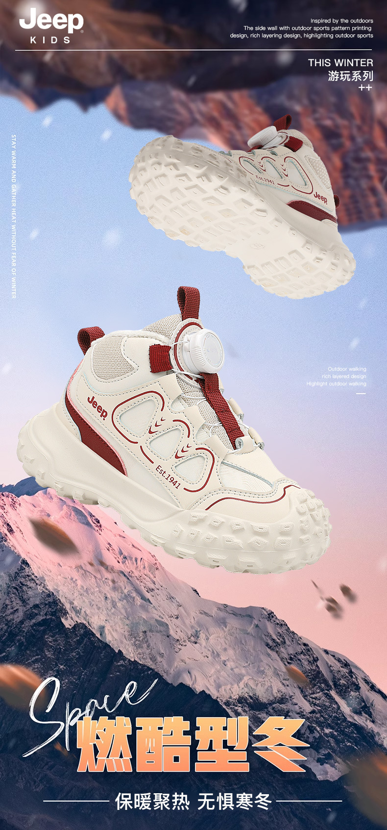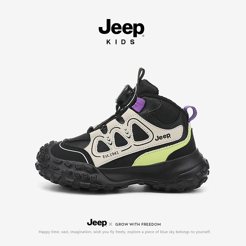 지프 어린이 스포츠 신발 겨울 벨벳 면화 2024 새로운 하이 탑 방수 및 따뜻한 야외 신발 소년과 소녀를위한