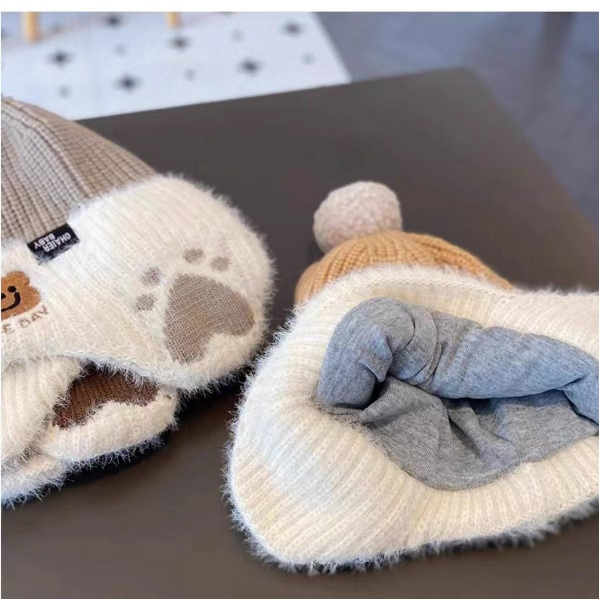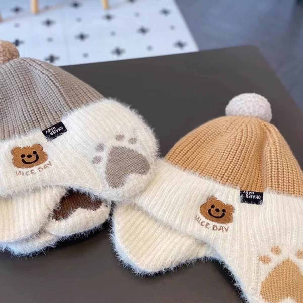 새로운 귀여운 곰 니트 귀 보호 어린이 모자 가을, 겨울 따뜻한 양모 아기 모자 한국어 버전 두꺼운 겨울 어린이 모자스토어 가기
