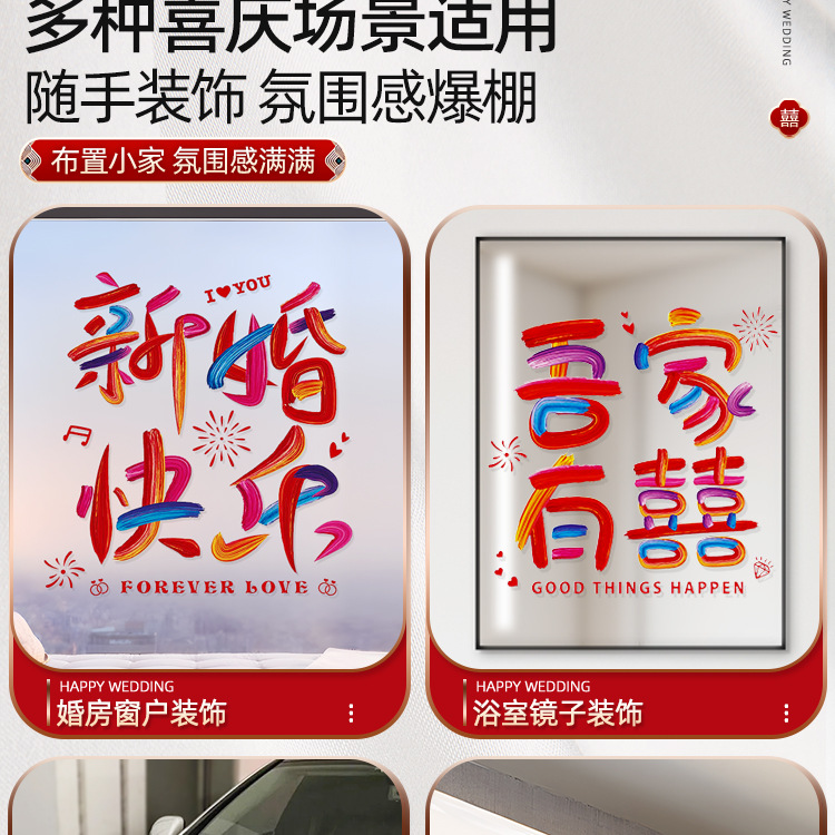컬러 정전기 웨딩 스티커 도파민 웨딩 특수 에어컨 끊기 스티커 창조적 인 창 그릴 웨딩 용품스토어 가기