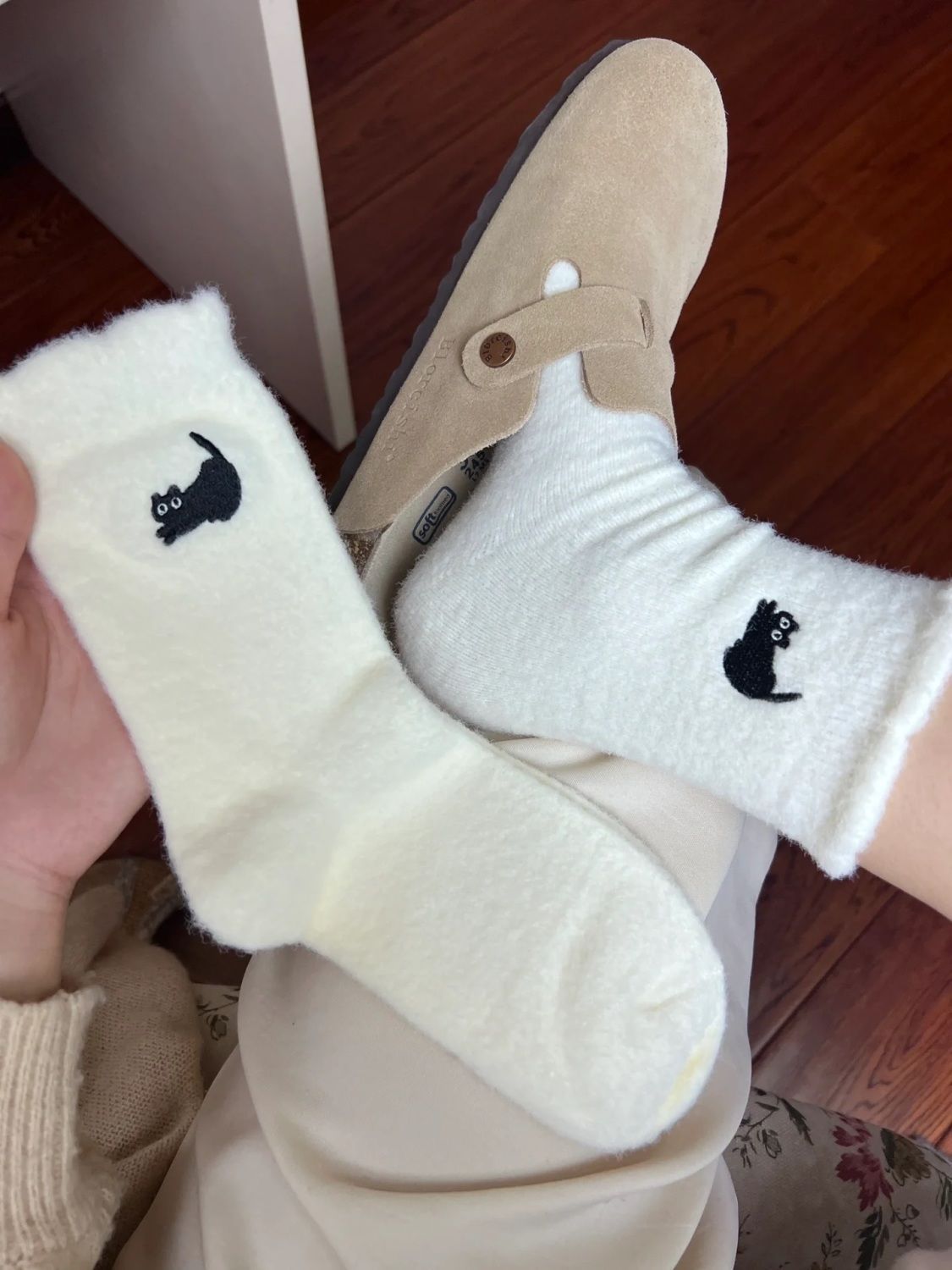 가을과 겨울 양말 여성 밍크 벨벳 튜브 양말 기모 두꺼운 따뜻한 귀여운 고양이 수면 집 아기 양말스토어 가기