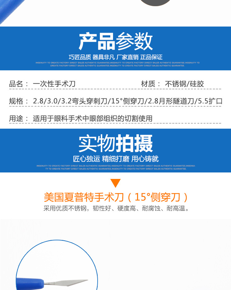 미국 Sharpt Scalpel 현미경 일회용 안과 메스 15 도 측면 절개 문 터널 피어싱 칼스토어 가기