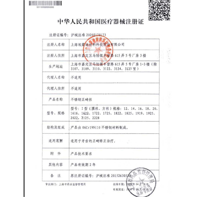 上海埃蒙迪IMD牙科正畸不锈钢丝方圆型非卵圆不锈钢丝圆丝方丝弓