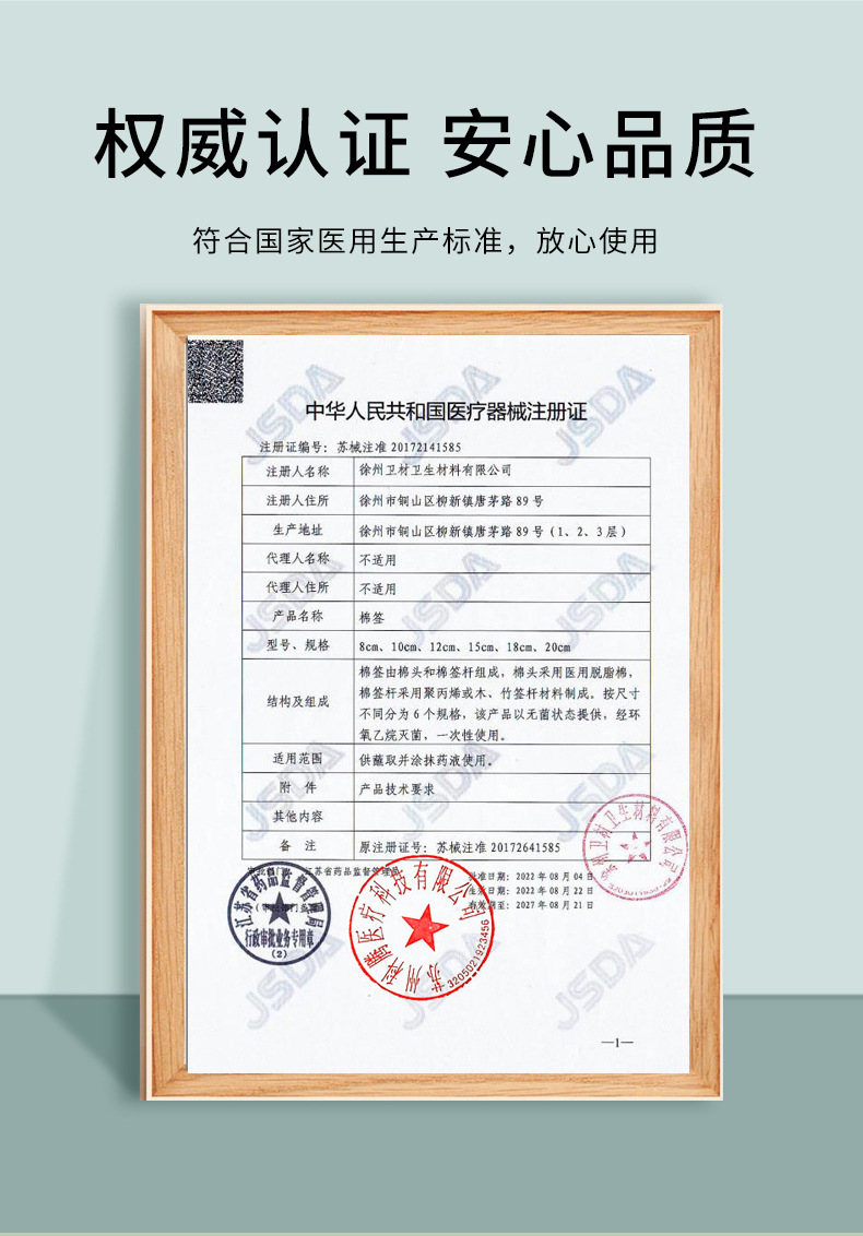 Ancheson 의료 면 스왑 멸균 의료 일회용 큰 머리 의료 면 스틱 단일 헤드 작은 패키지 면스토어 가기