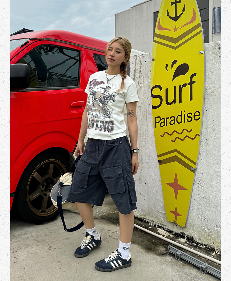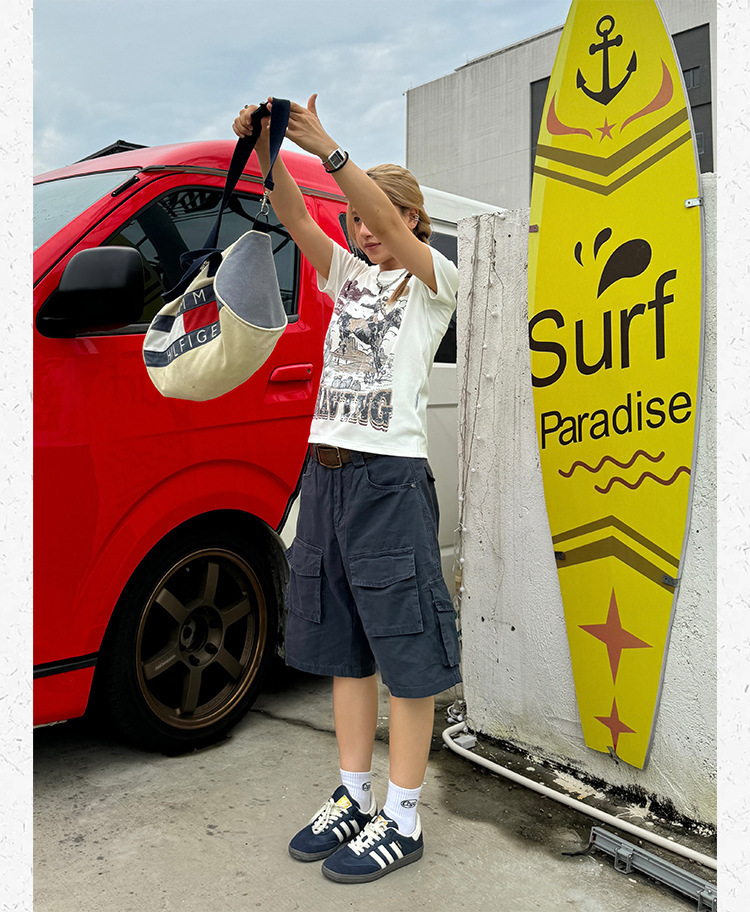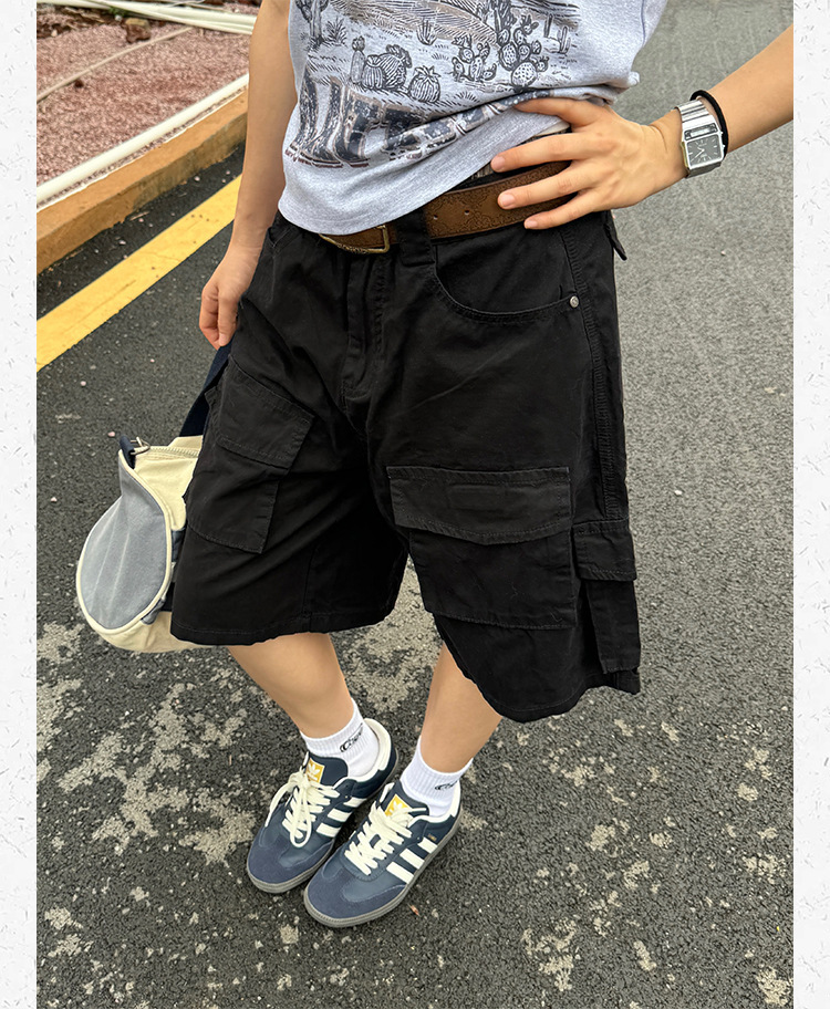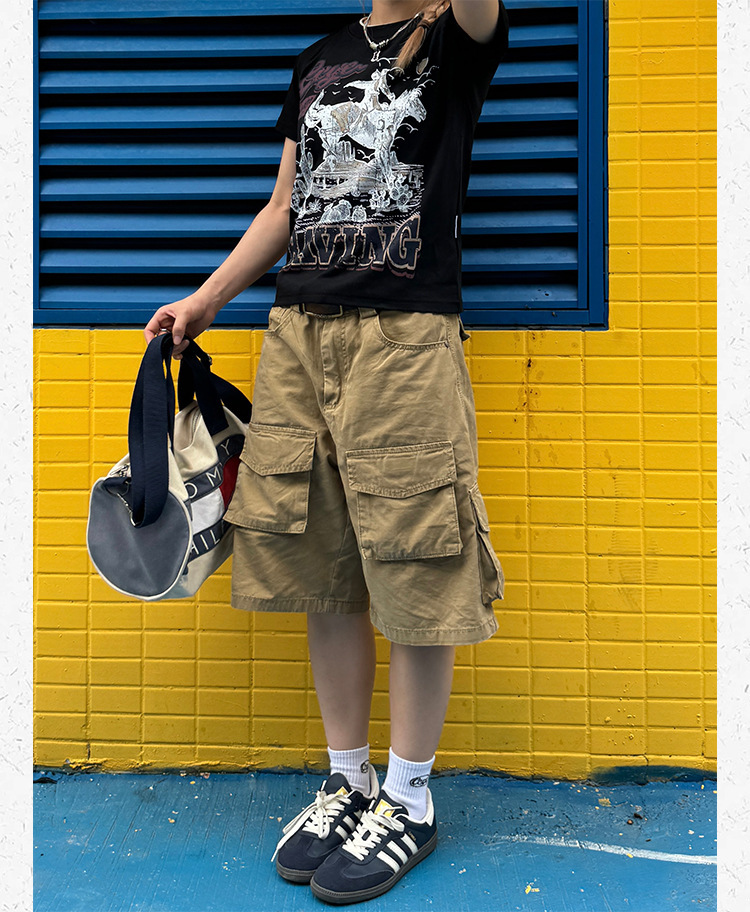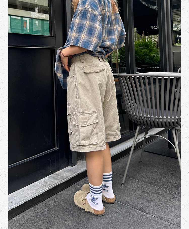 미국 레트로 멀티 포켓 툴링 반바지 남자 여름 2024 새로운 캐주얼 루즈 세척 스트레이트 바지스토어 가기