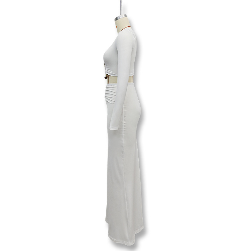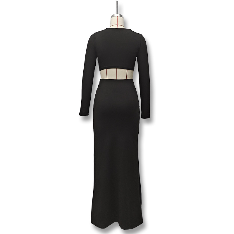 유럽과 미국 여성의 2024 가을과 겨울 국경 새로운 섹시한 배꼽 슬림 핏 백 팔 패션 세트 투피스 세트
