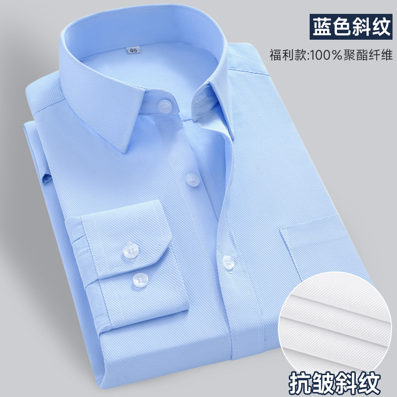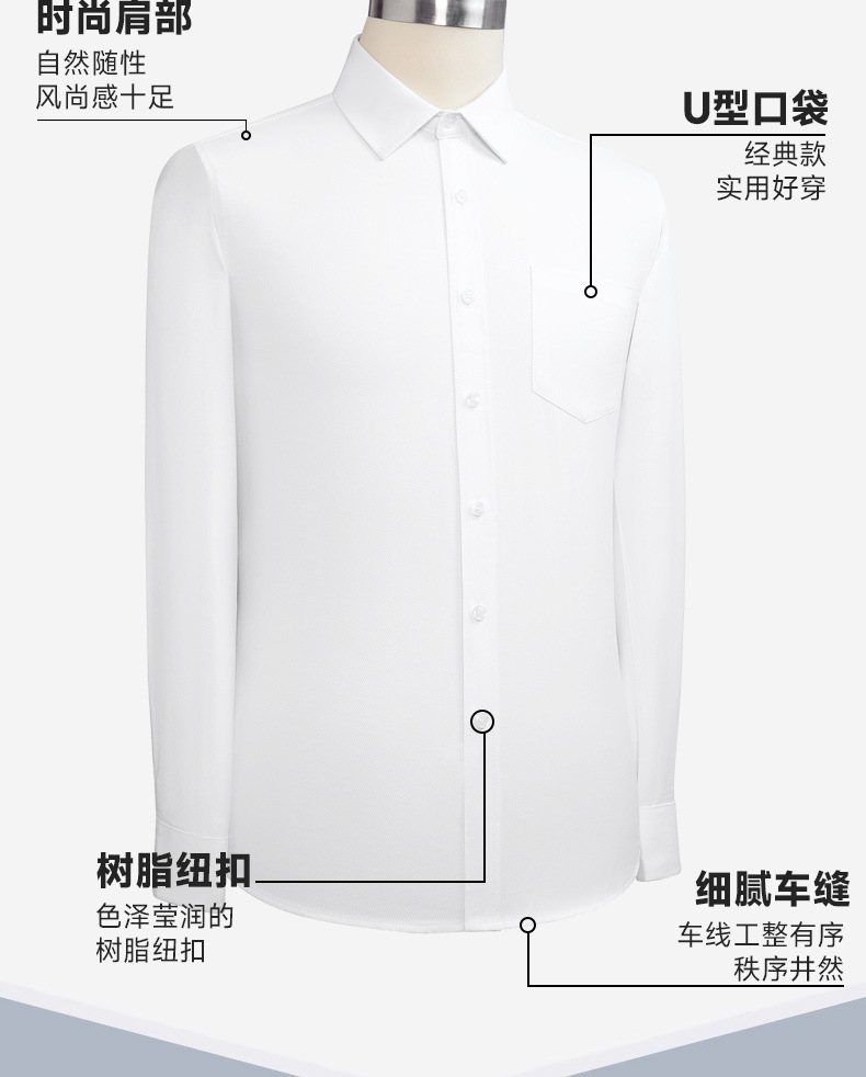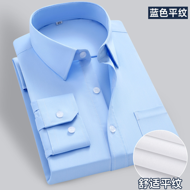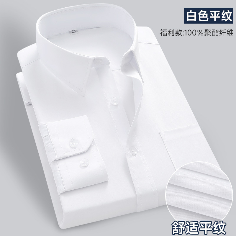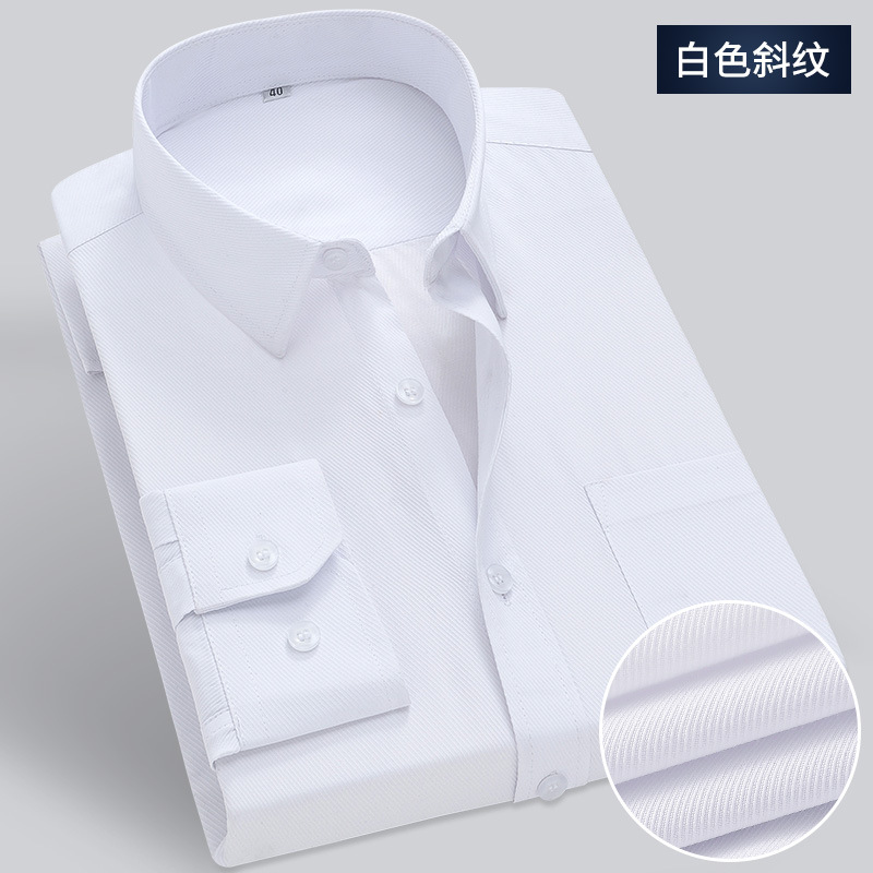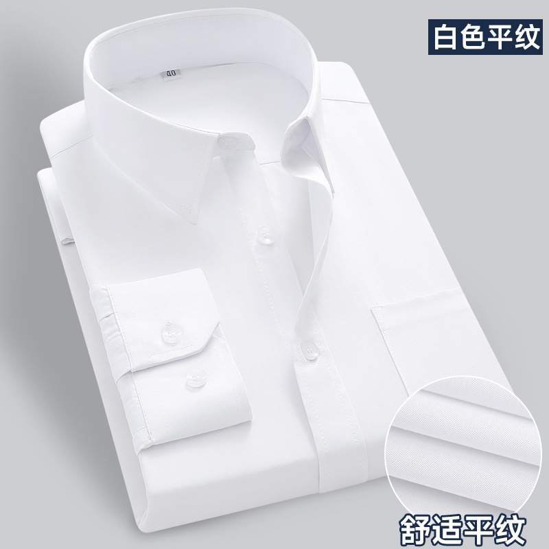 화이트 셔츠 남성용 긴팔 비즈니스 전문 원피스 주름 방지 슬림 핏 통근 셔츠 봄과 가을 작업 옷 단색 툴링