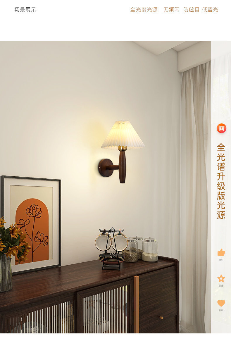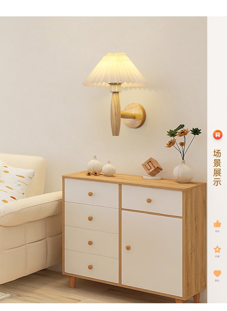 주름 단단한 나무 벽 램프 북유럽 인터넷 연예인 소녀의 따뜻한 눈 보호 일본 스타일 침묵 스타일 레트로 국경 독점