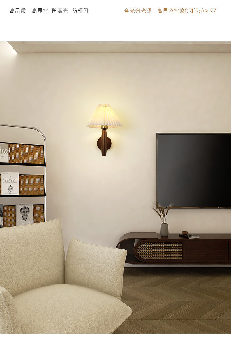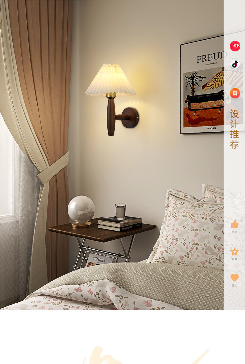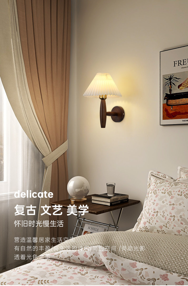 주름 단단한 나무 벽 램프 북유럽 인터넷 연예인 소녀의 따뜻한 눈 보호 일본 스타일 침묵 스타일 레트로 국경 독점스토어 가기