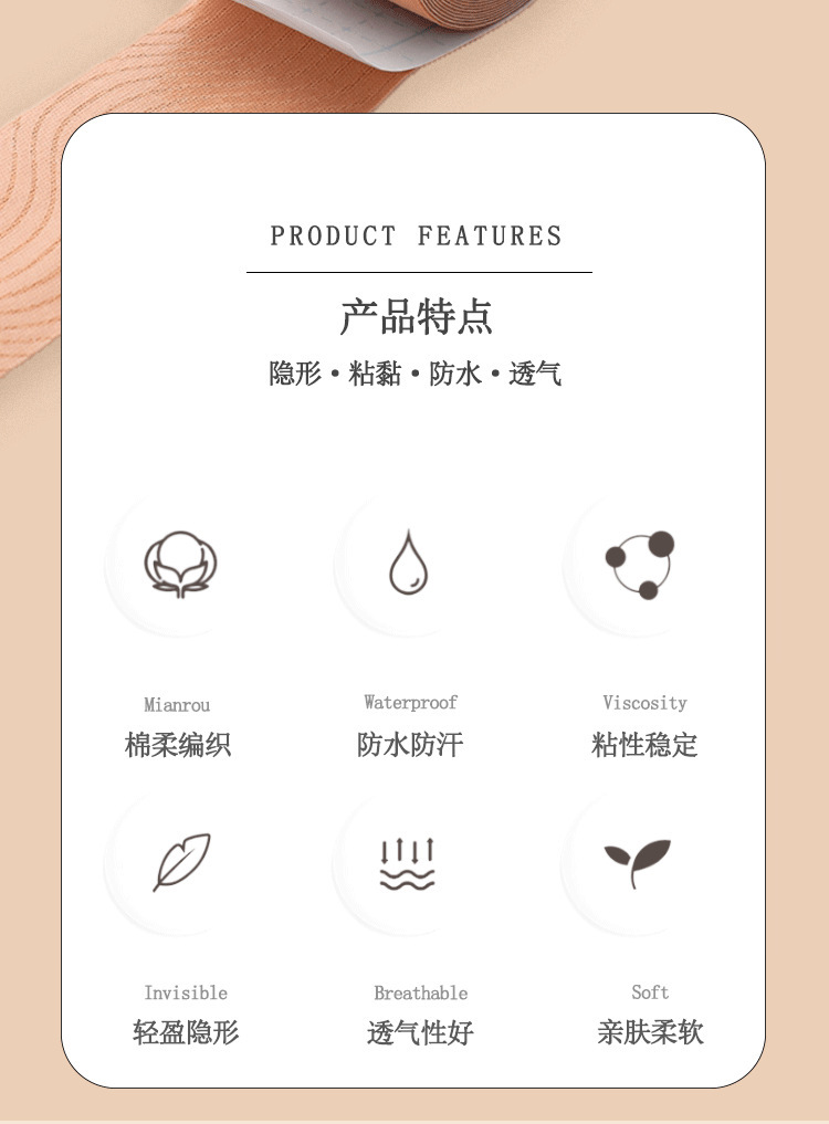 의료 탄성 강한 접착 테이프 붕대 가슴 패치 검은 음영 고정 패치 사천 패턴 인체 테이프 cos