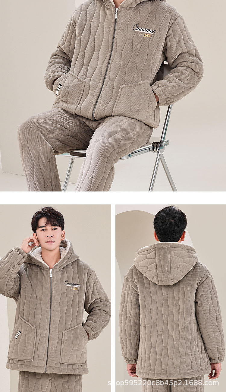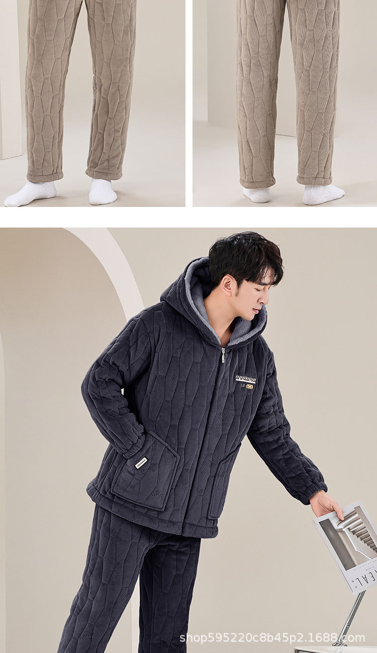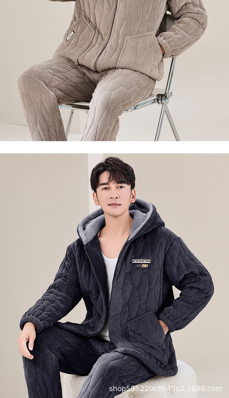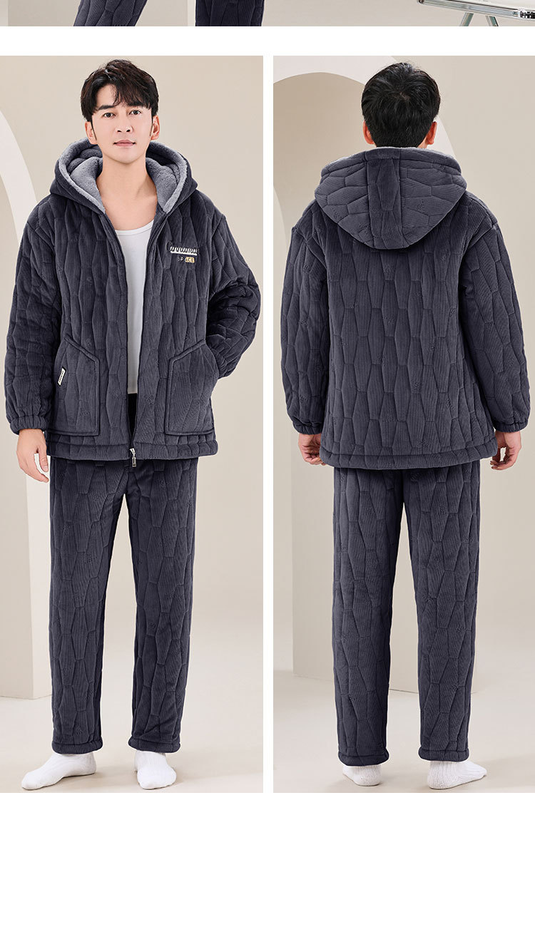 2024 새로운 도착 파자마 남자 겨울 3 층 퀼트 두꺼운 기모 산호 양털 따뜻한 옷을 입고스토어 가기