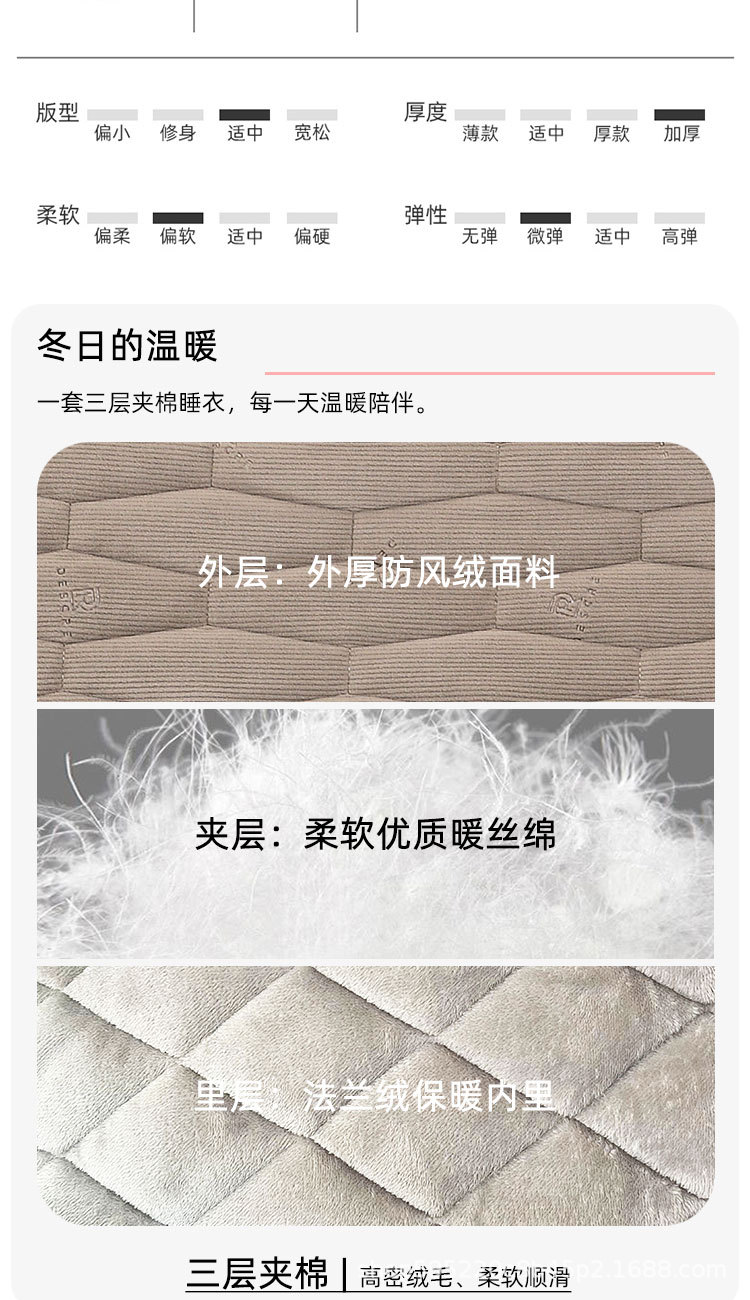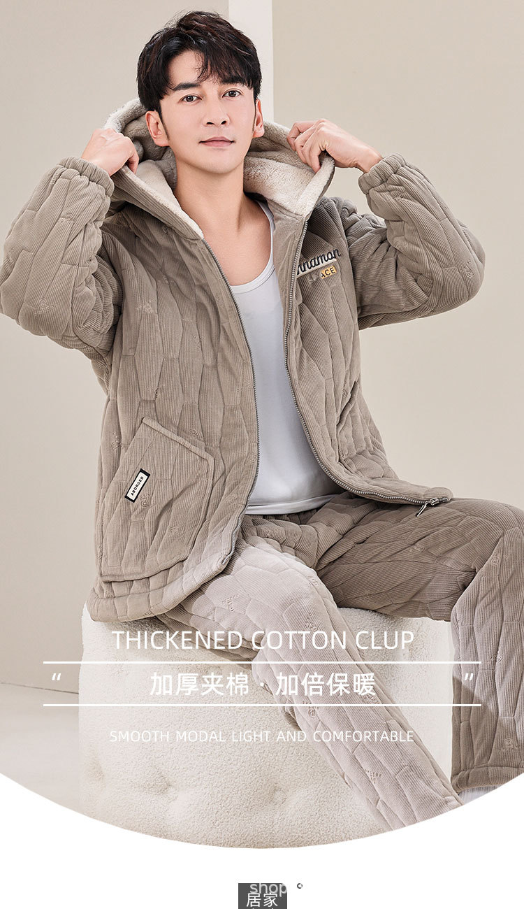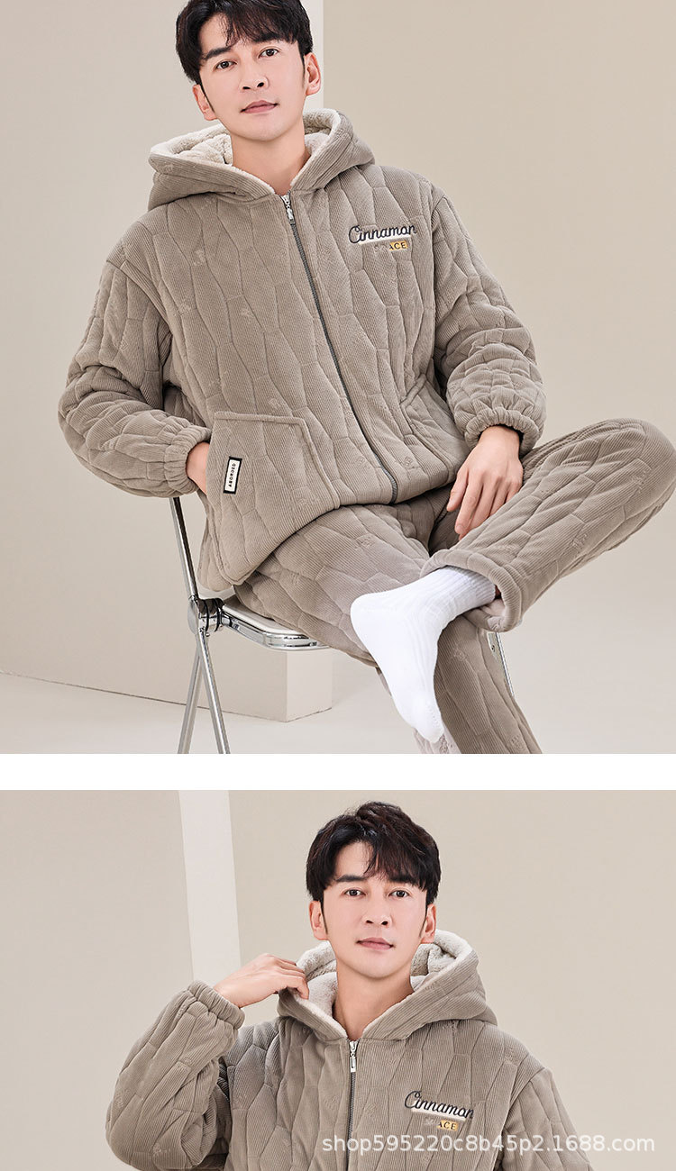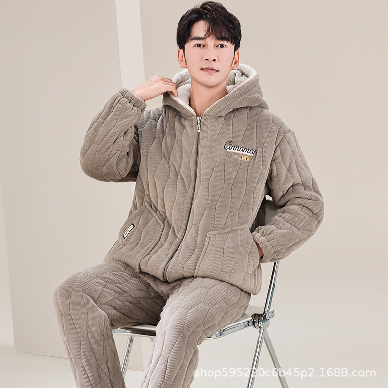 2024 새로운 도착 파자마 남자 겨울 3 층 퀼트 두꺼운 기모 산호 양털 따뜻한 옷을 입고스토어 가기