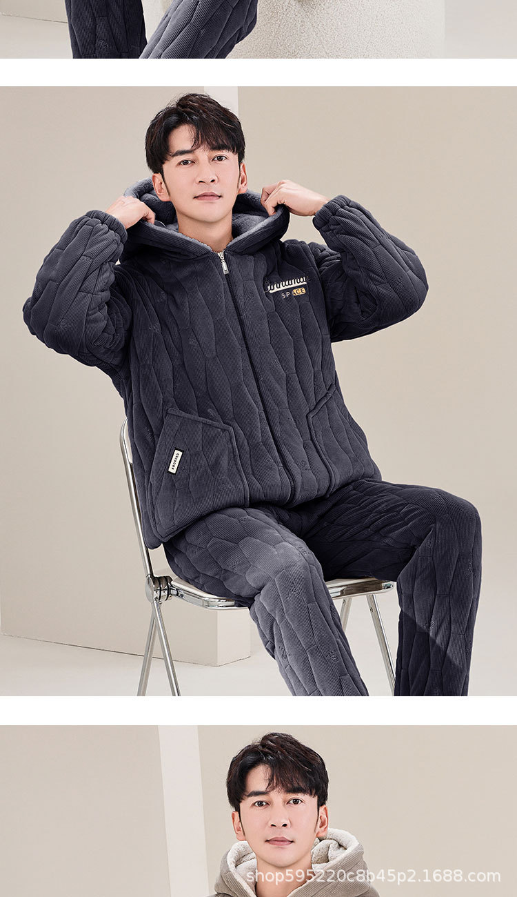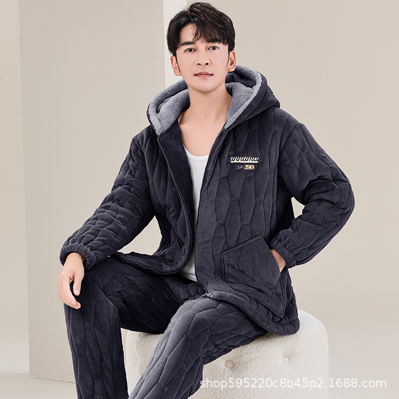 2024 새로운 도착 파자마 남자 겨울 3 층 퀼트 두꺼운 기모 산호 양털 따뜻한 옷을 입고