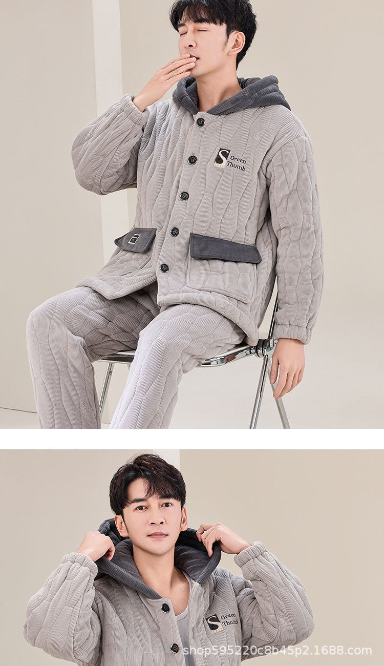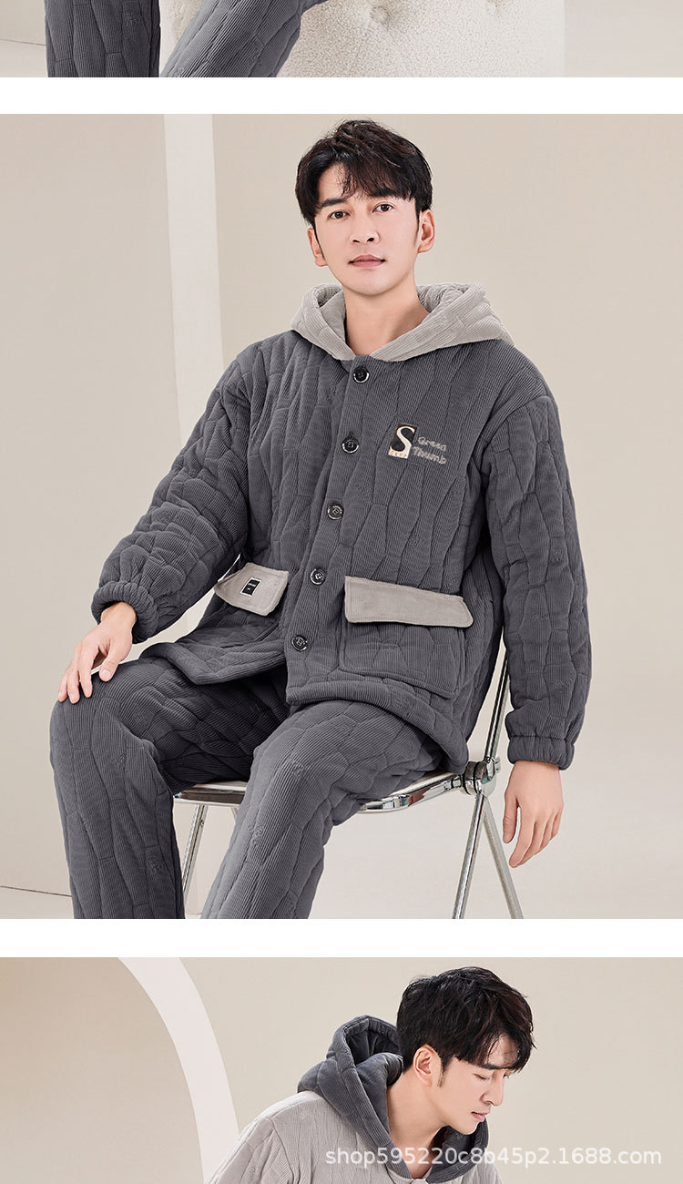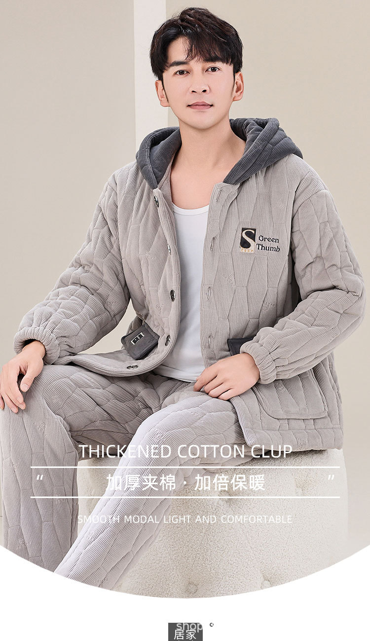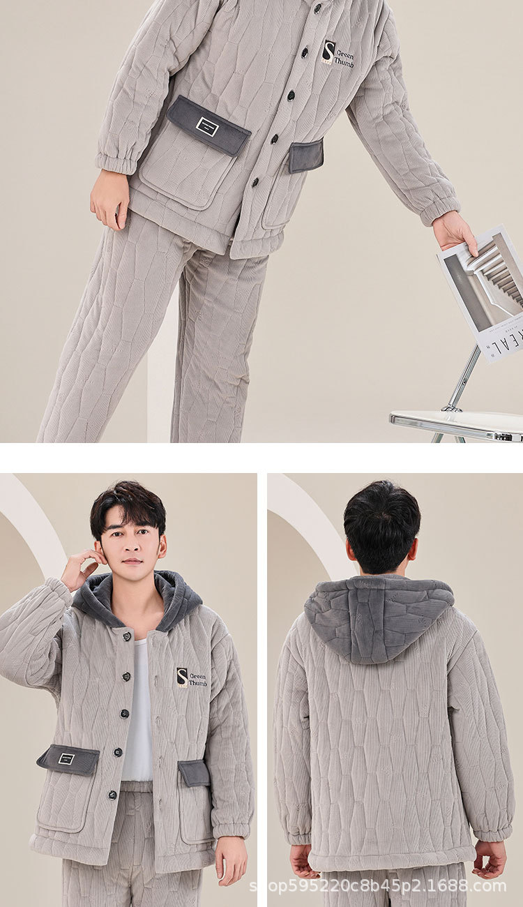 잠옷 남자의 겨울 두꺼운 기모 3 층 면 따뜻한 산호 양털 가을과 겨울 남자 홈 옷 후드 세트