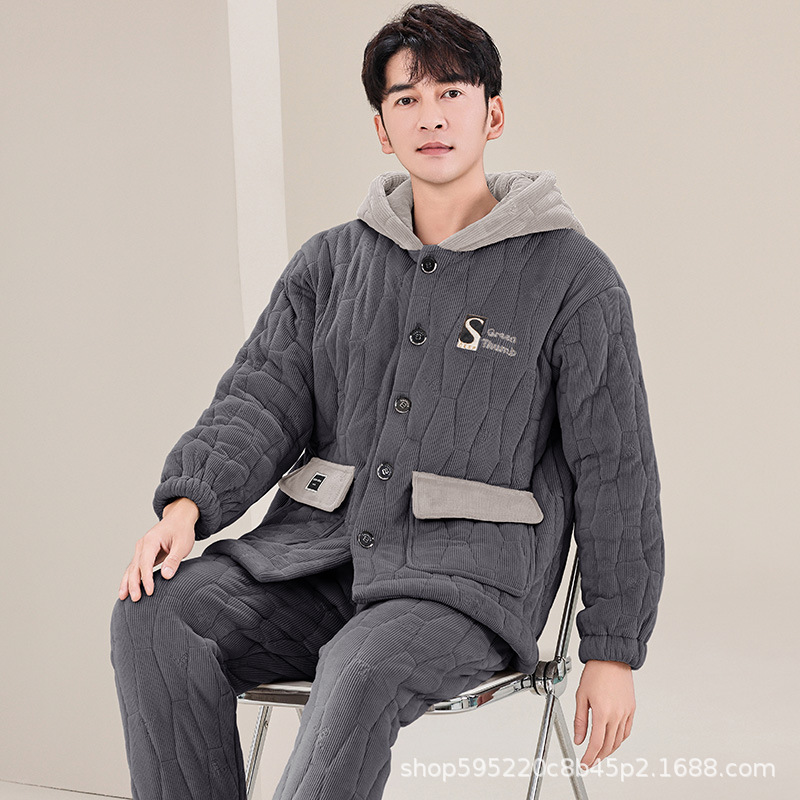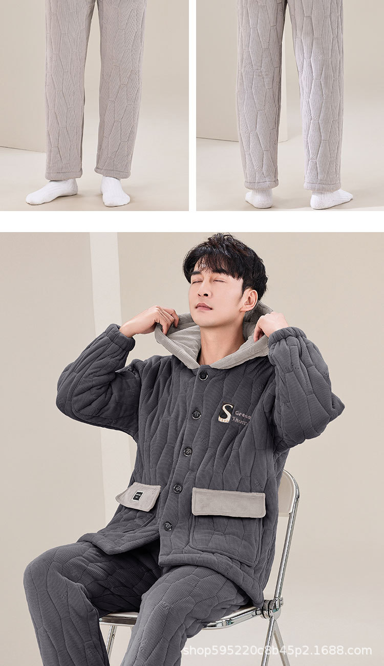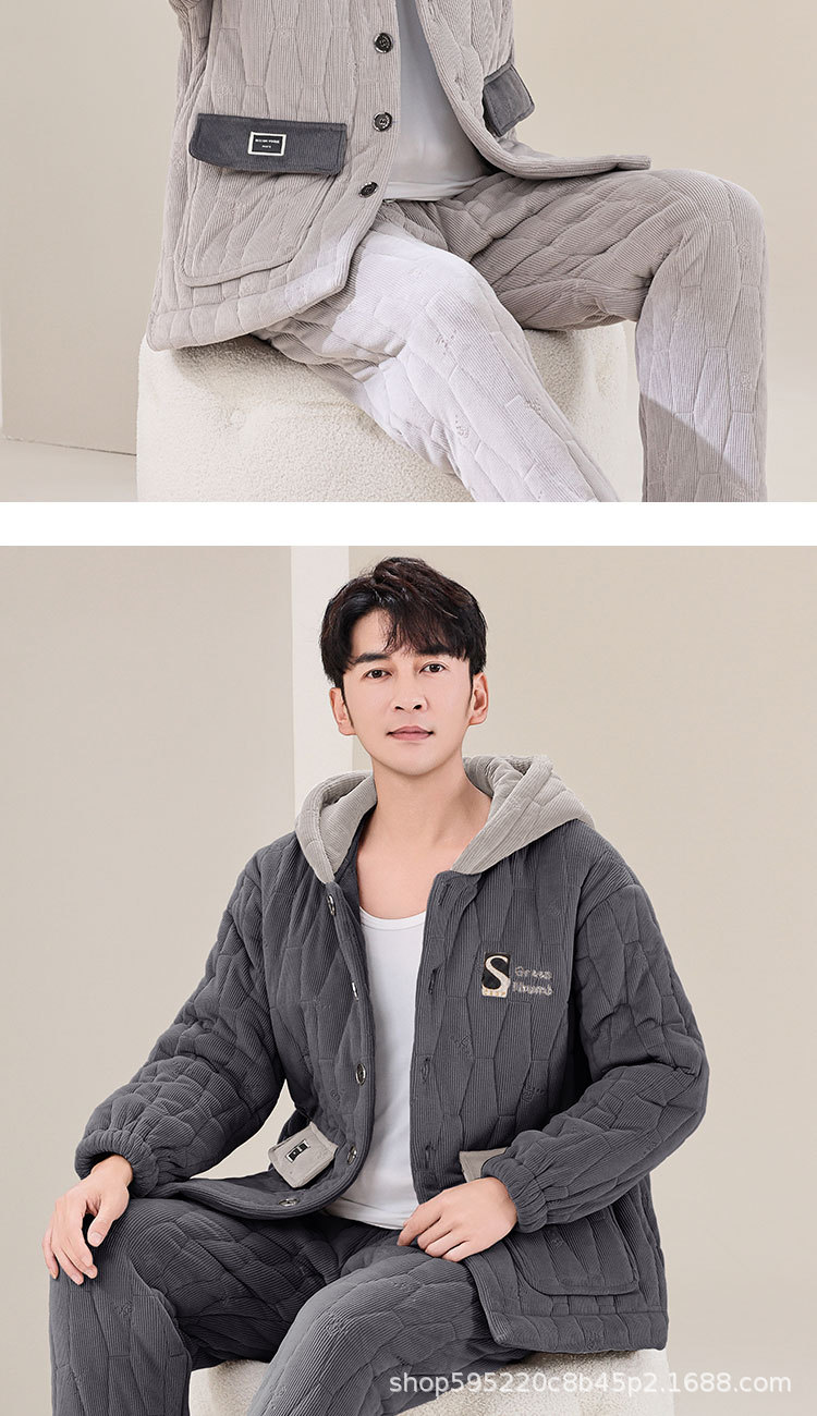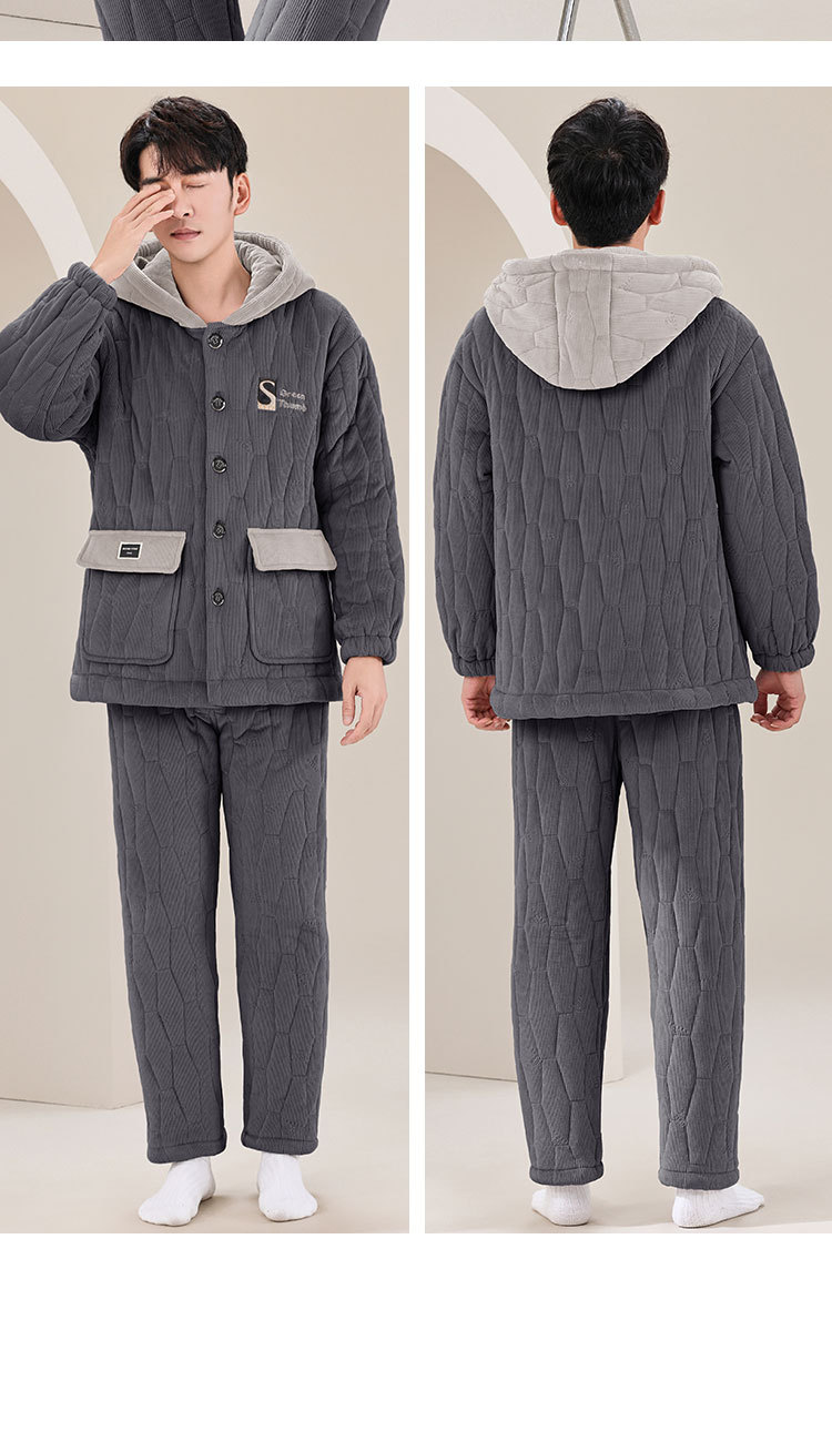잠옷 남자의 겨울 두꺼운 기모 3 층 면 따뜻한 산호 양털 가을과 겨울 남자 홈 옷 후드 세트