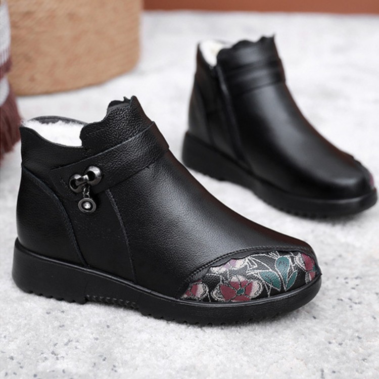 Guofeng Wedge 기모 엄마면 신발 방수 따뜻한 부츠 2024 겨울 새로운 미끄럼 방지 짧은 부츠 여성