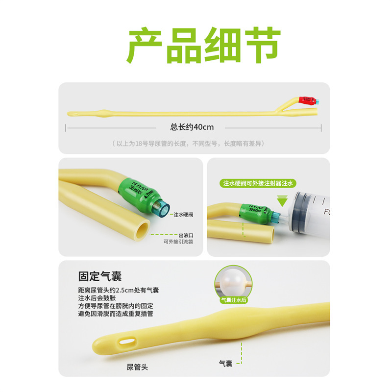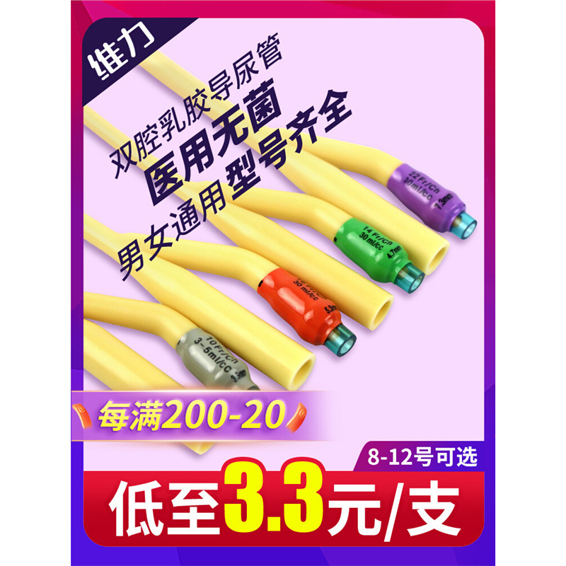 남성용 Weili 이중 루멘 카테터 일회용 살균 의료 성인 라텍스 여성 카테터 가방 배수 튜브 소변 가방스토어 가기
