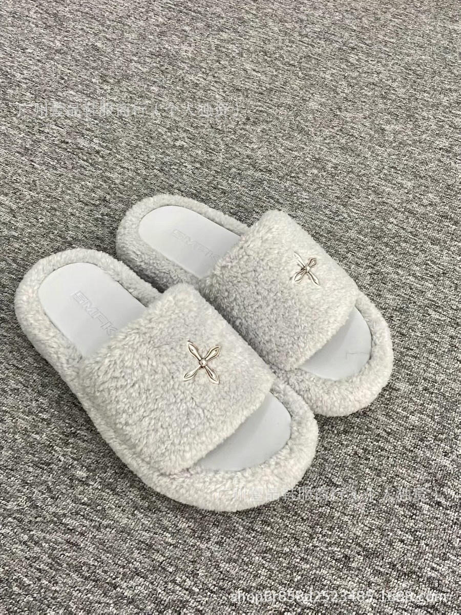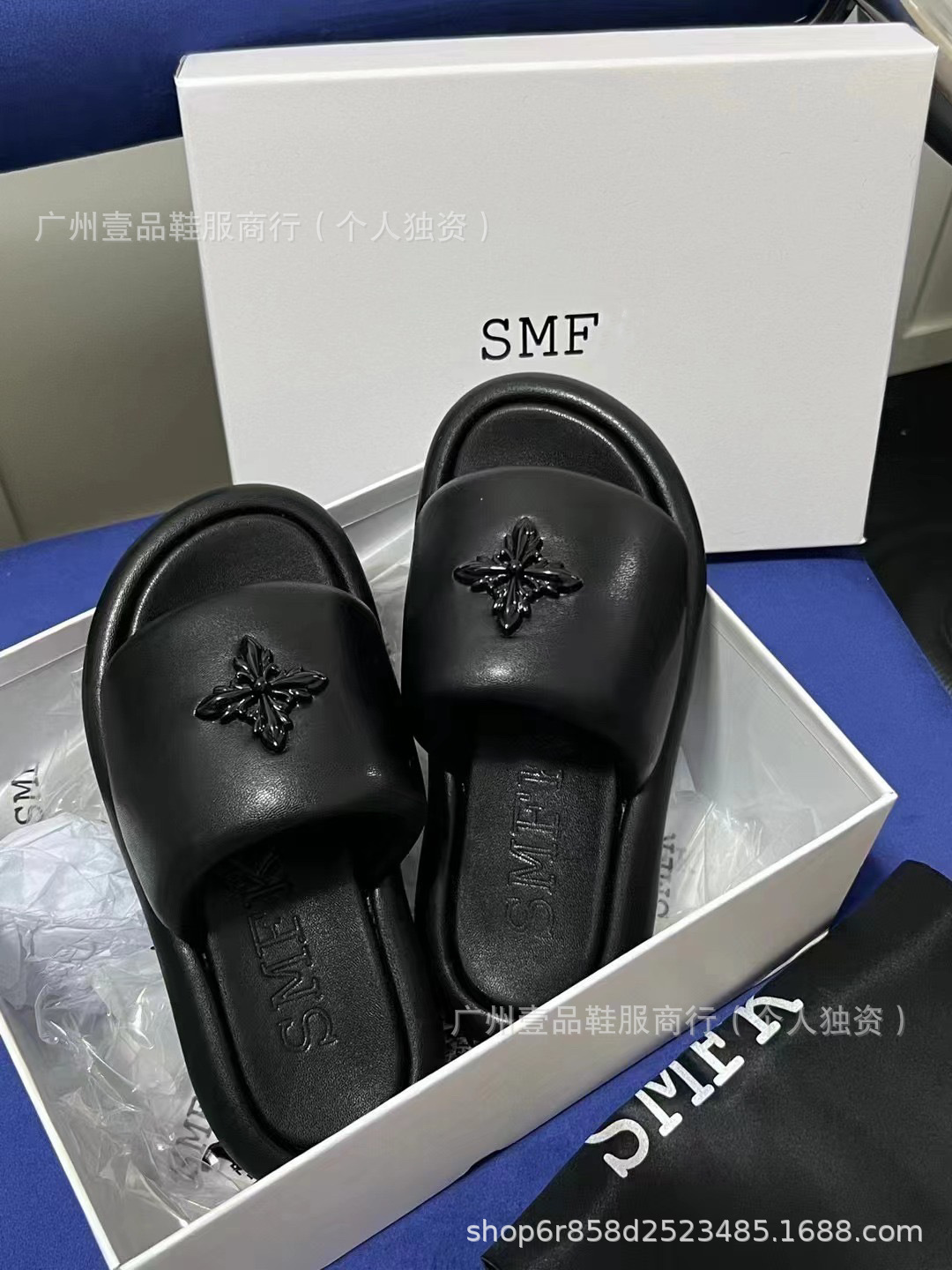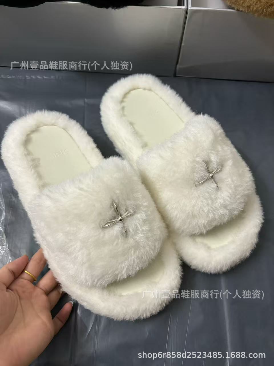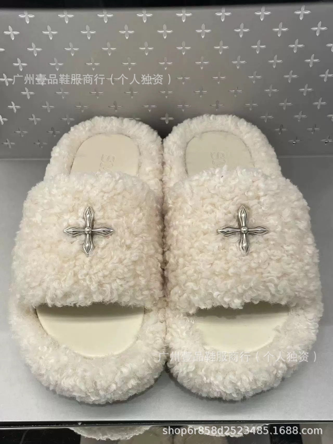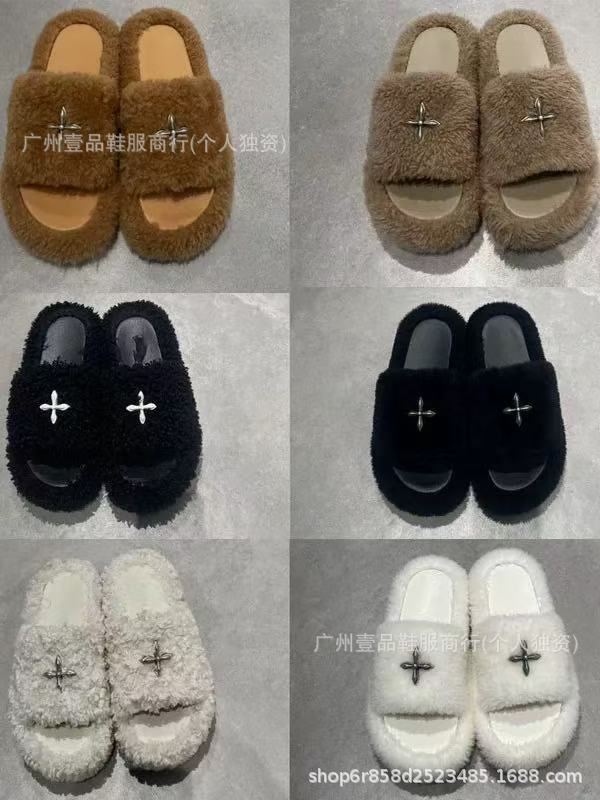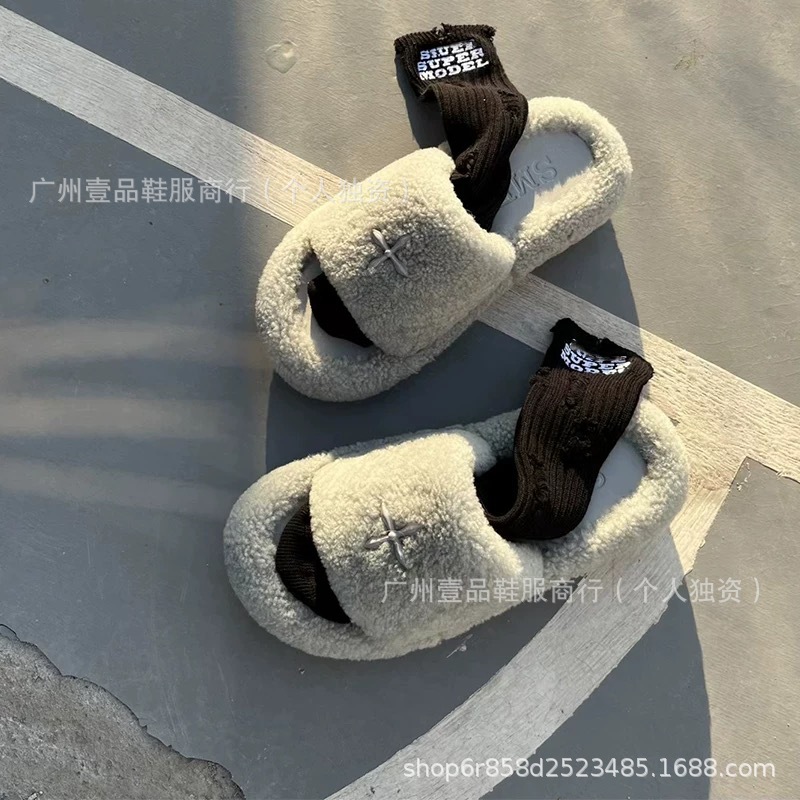 하이 퀄리티 SK 블랙 및 화이트 벨벳 모피 슬리퍼 십자형 두꺼운 하단 블랙 풍선 가죽 슬리퍼