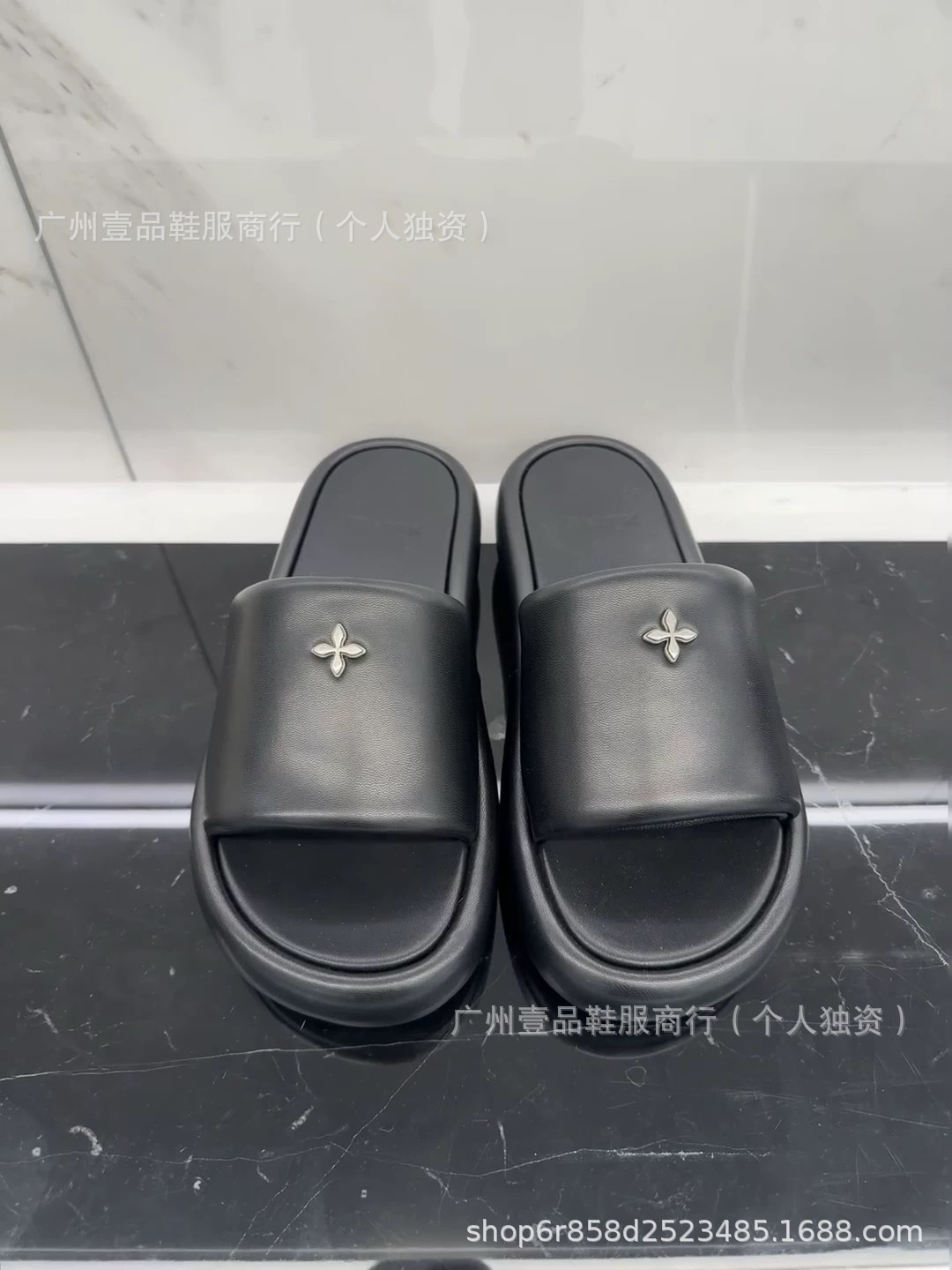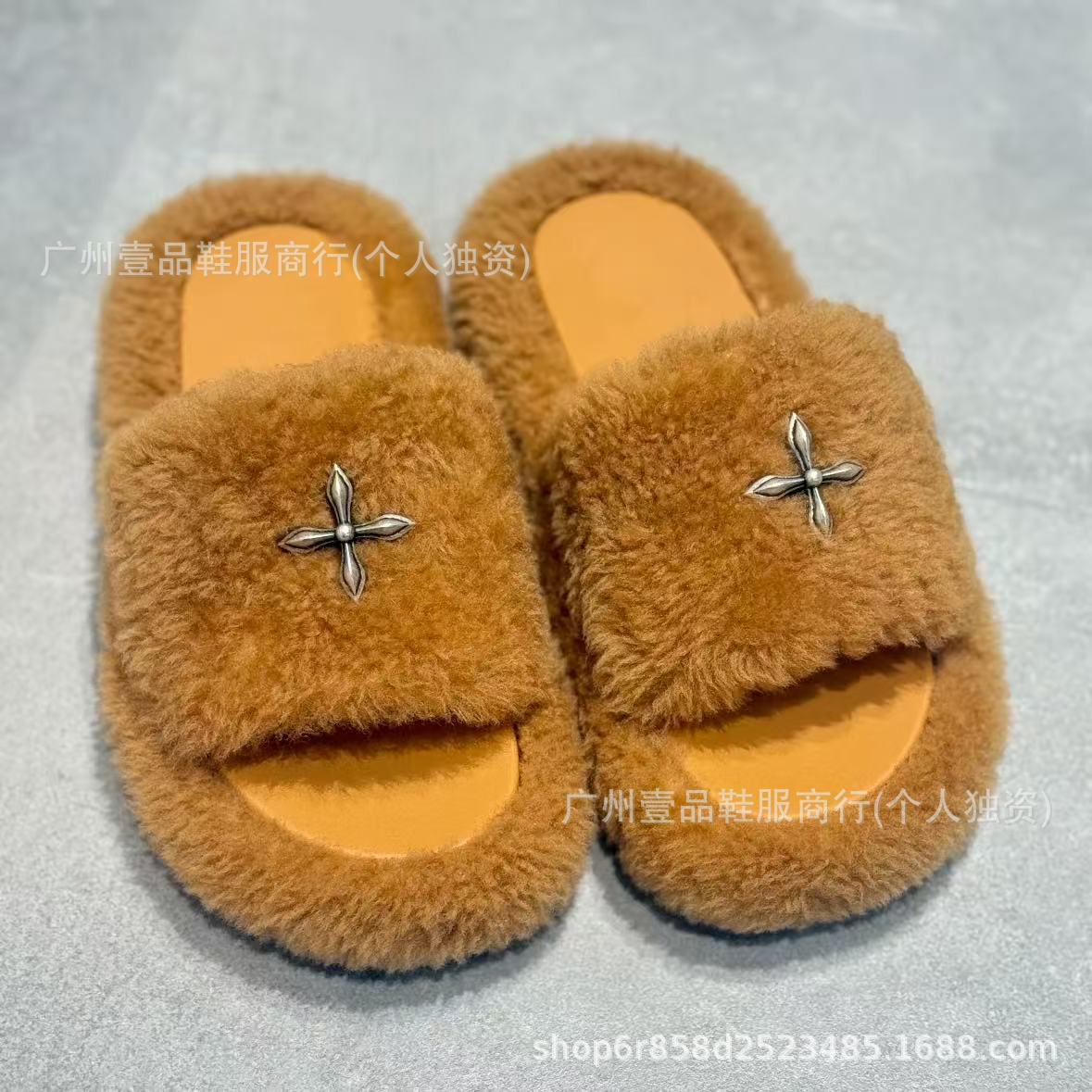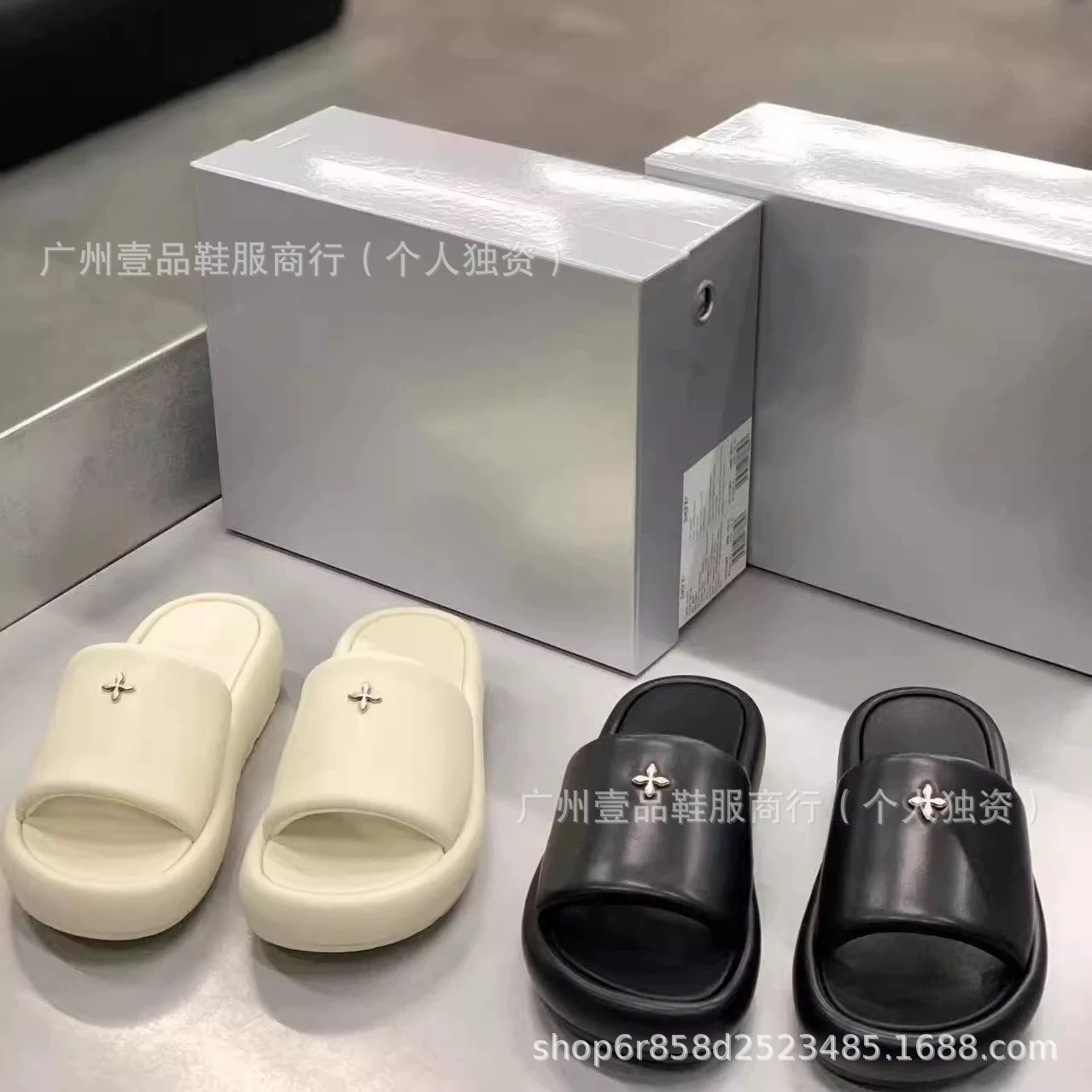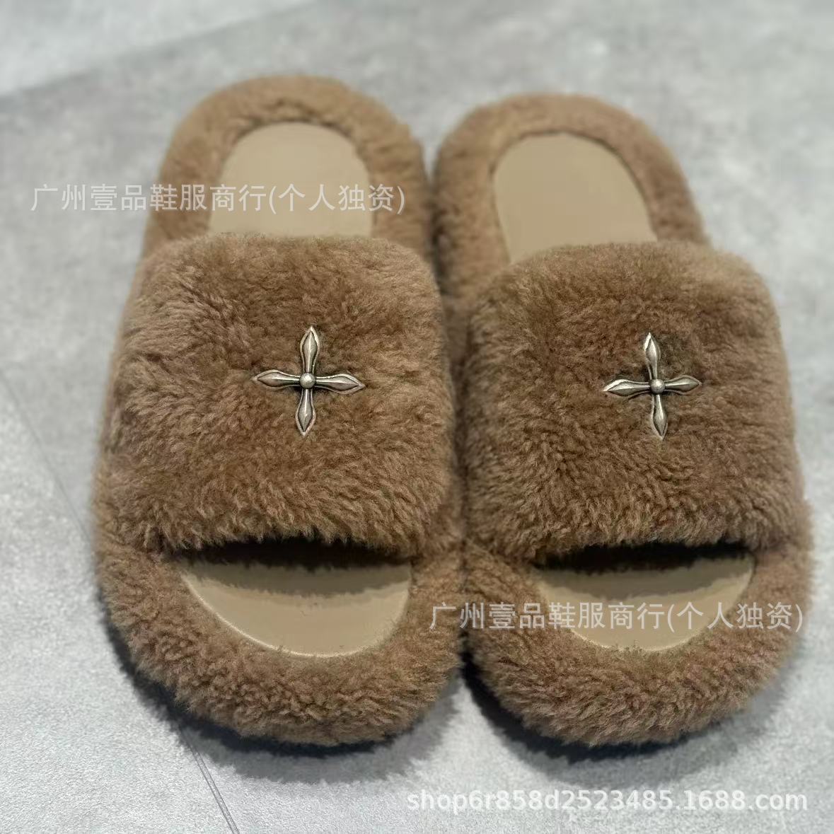 하이 퀄리티 SK 블랙 및 화이트 벨벳 모피 슬리퍼 십자형 두꺼운 하단 블랙 풍선 가죽 슬리퍼