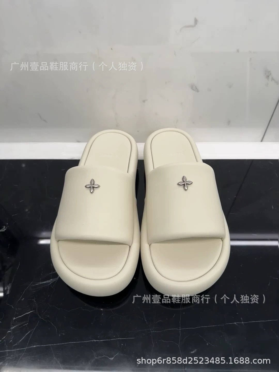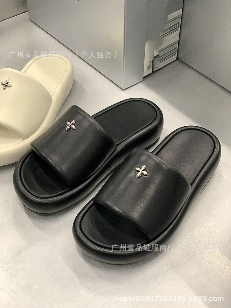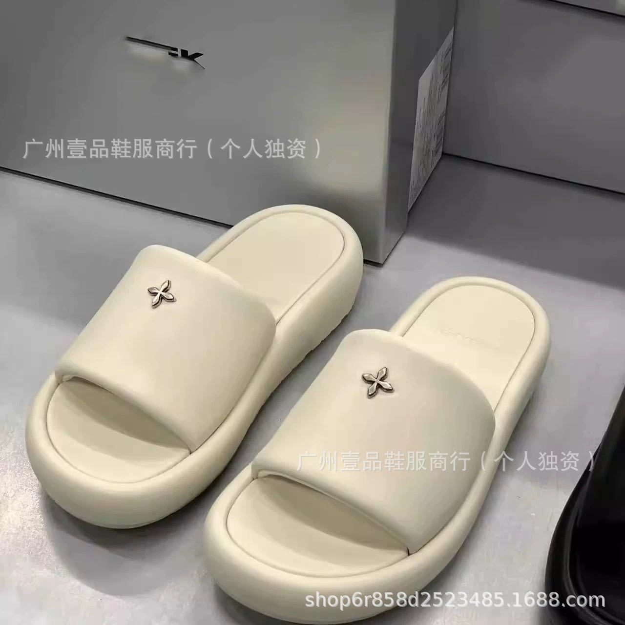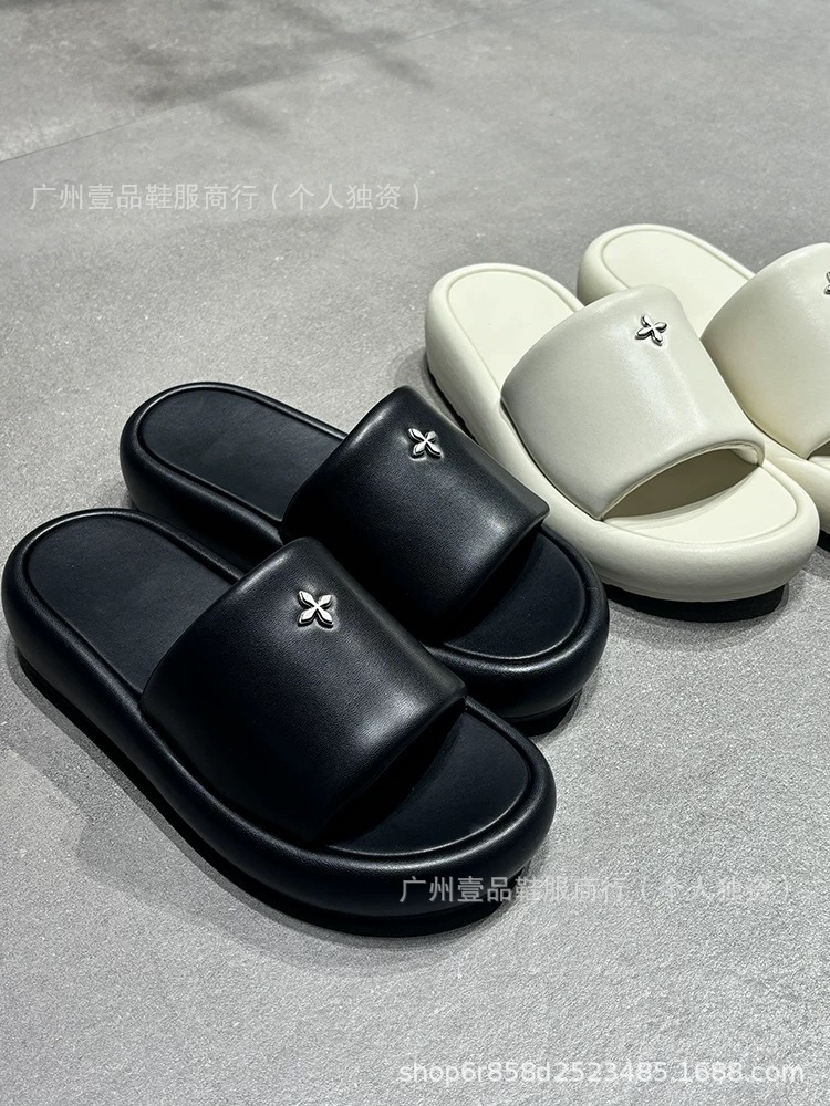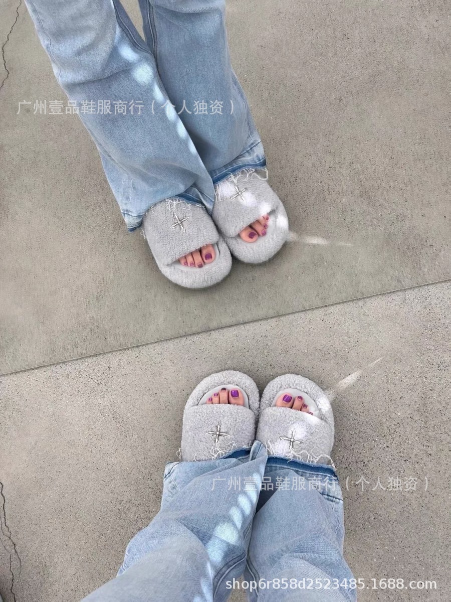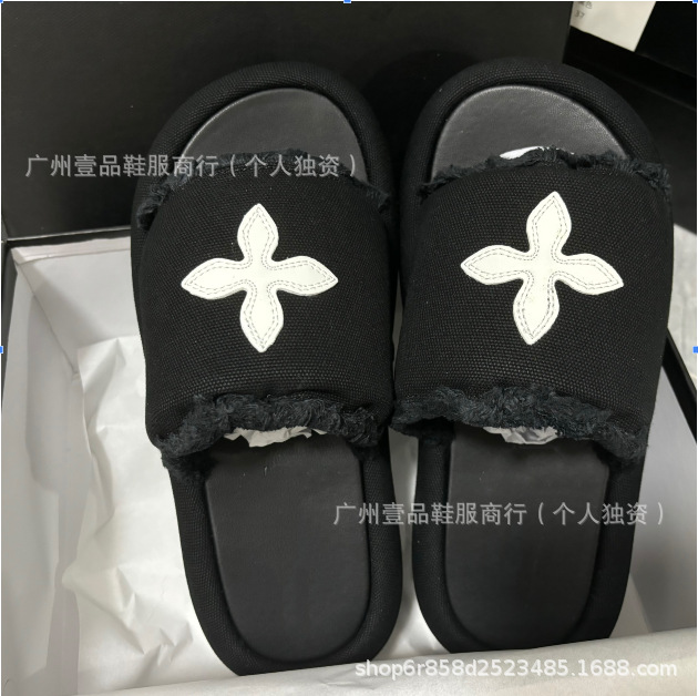 하이 퀄리티 SK 블랙 및 화이트 벨벳 모피 슬리퍼 십자형 두꺼운 하단 블랙 풍선 가죽 슬리퍼