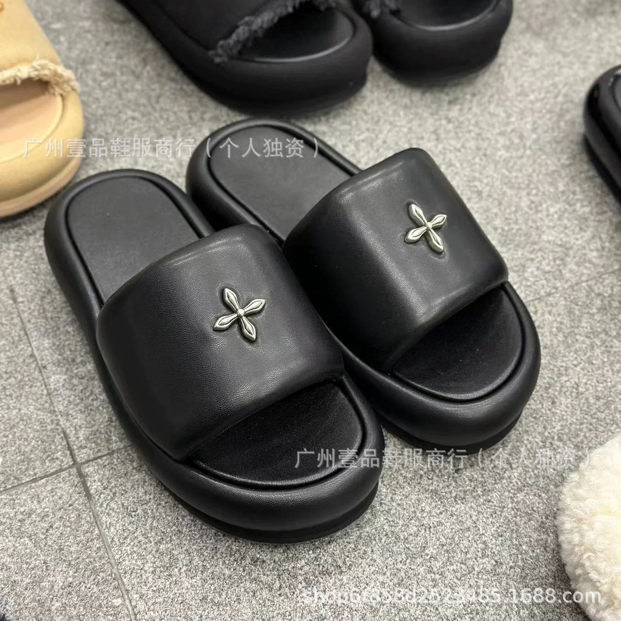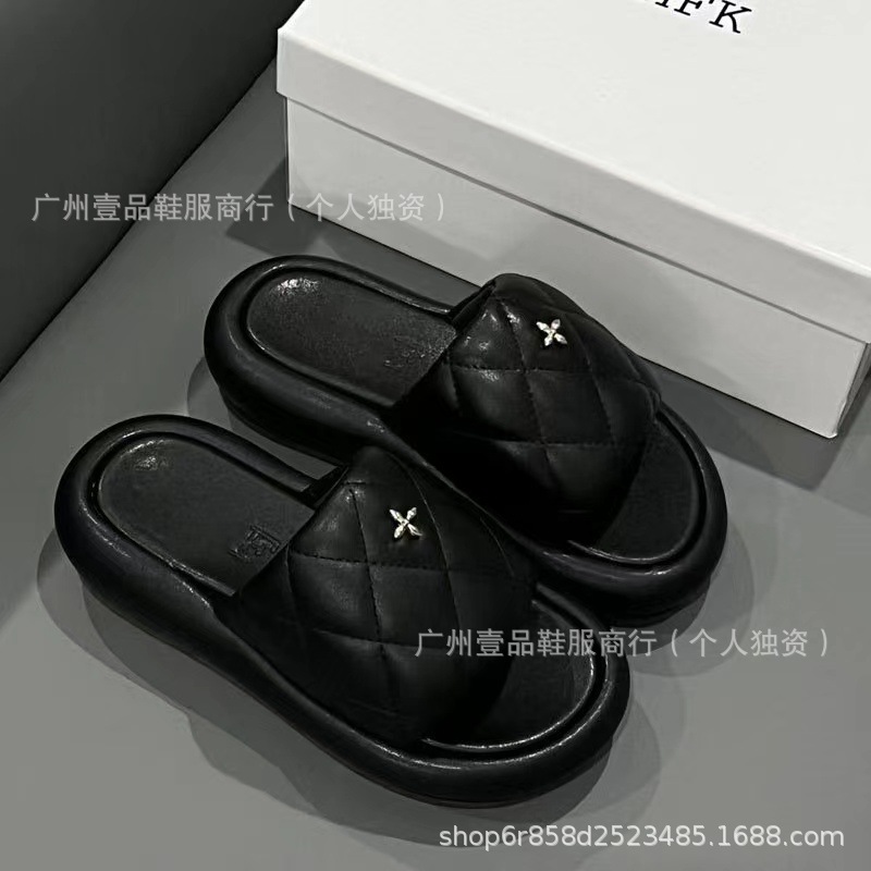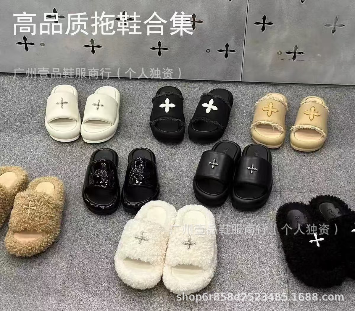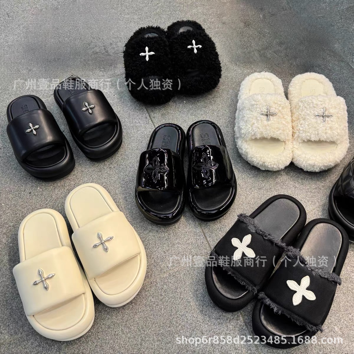 하이 퀄리티 SK 블랙 및 화이트 벨벳 모피 슬리퍼 십자형 두꺼운 하단 블랙 풍선 가죽 슬리퍼스토어 가기