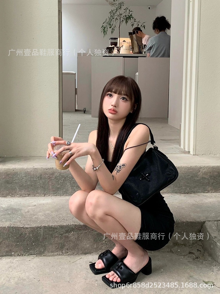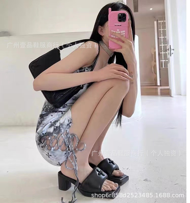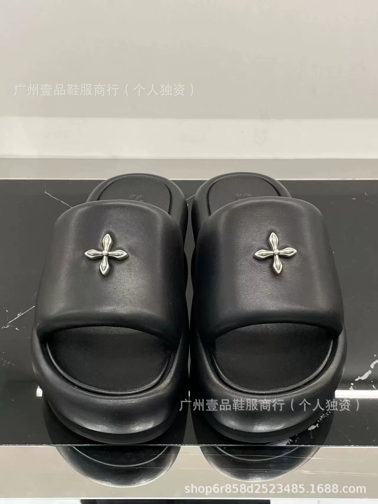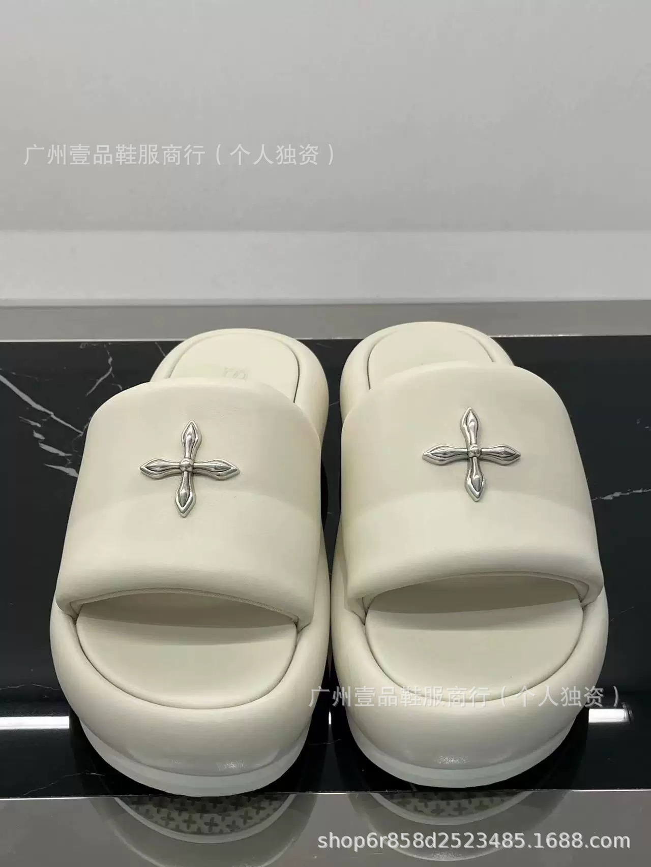하이 퀄리티 SK 블랙 및 화이트 벨벳 모피 슬리퍼 십자형 두꺼운 하단 블랙 풍선 가죽 슬리퍼스토어 가기