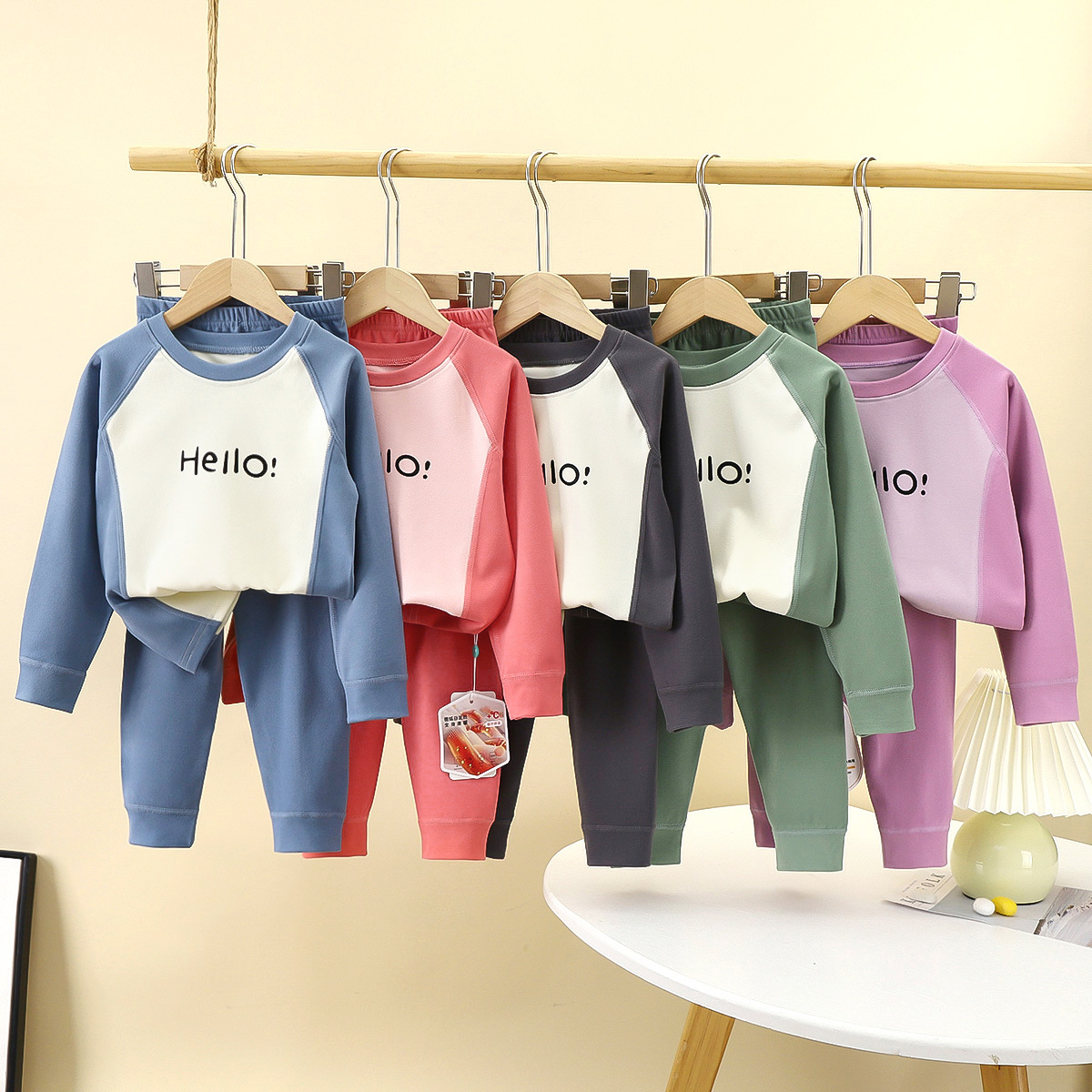 어린이 뼈없는 벨벳 따뜻한 세트 중대형 어린이 가을 옷과 바지 소년 소녀 속옷 홈 의류 기본 세트