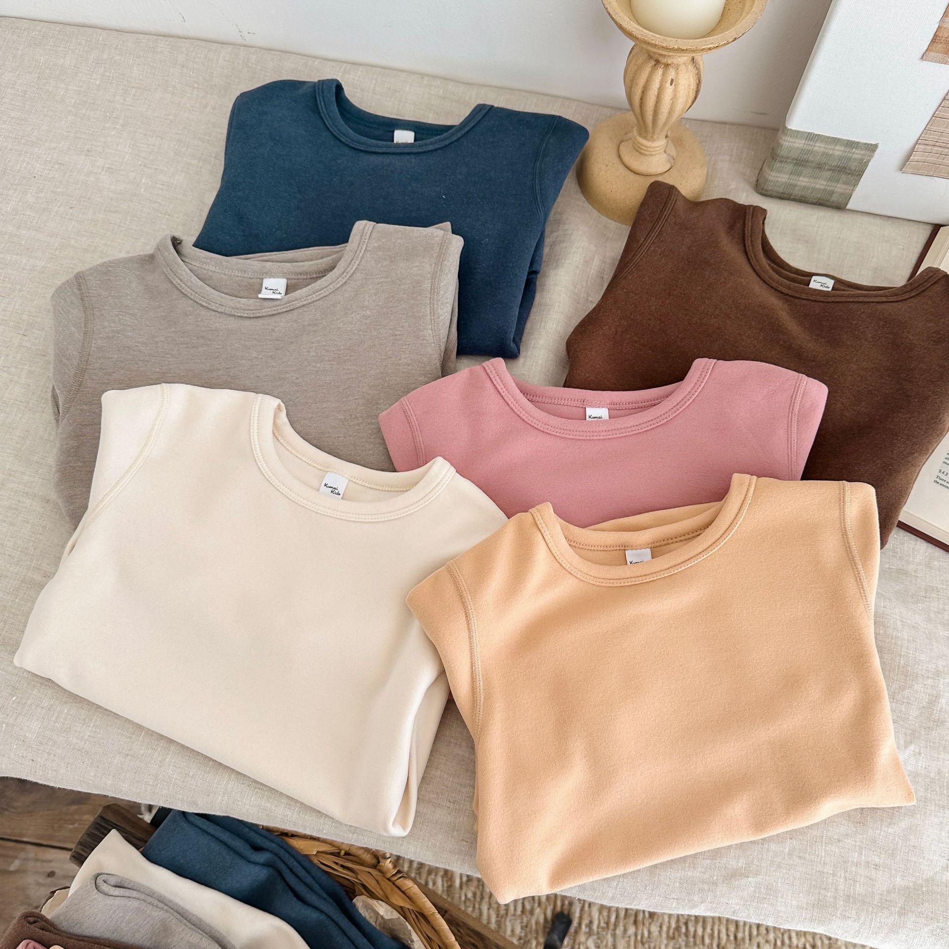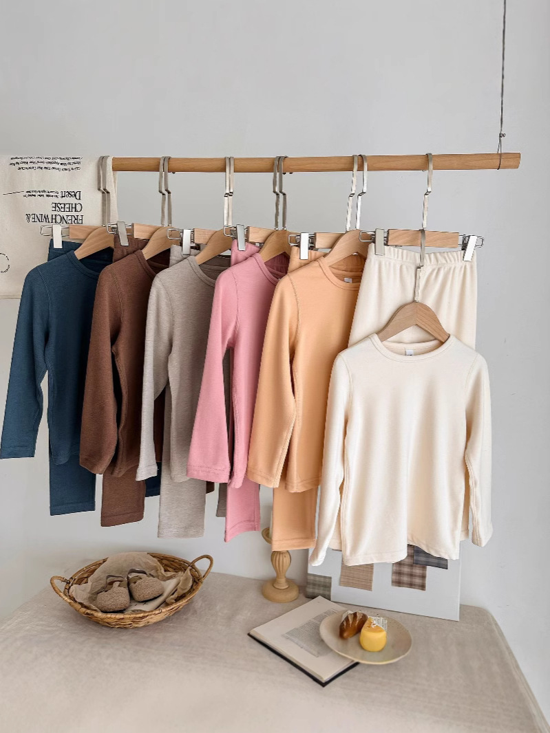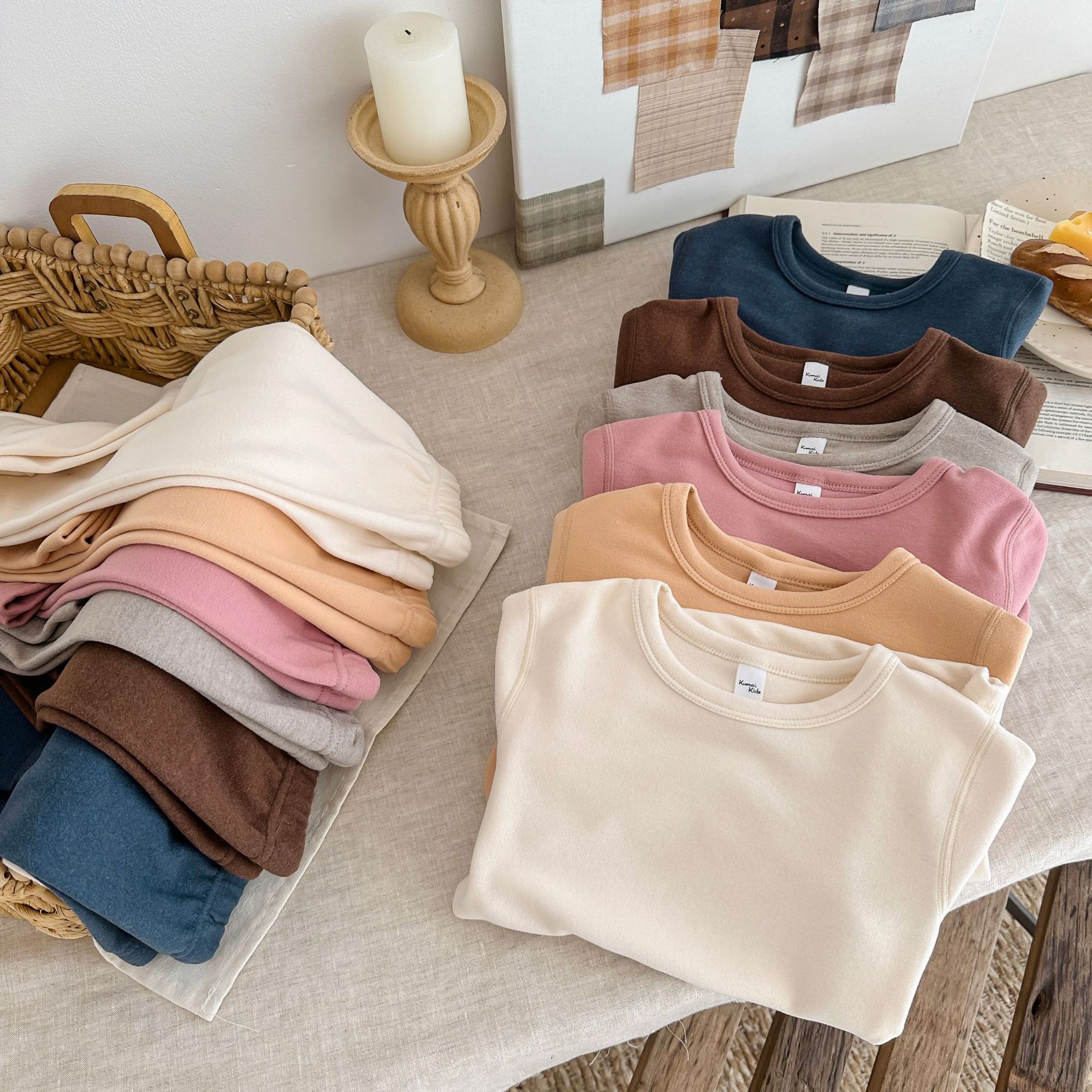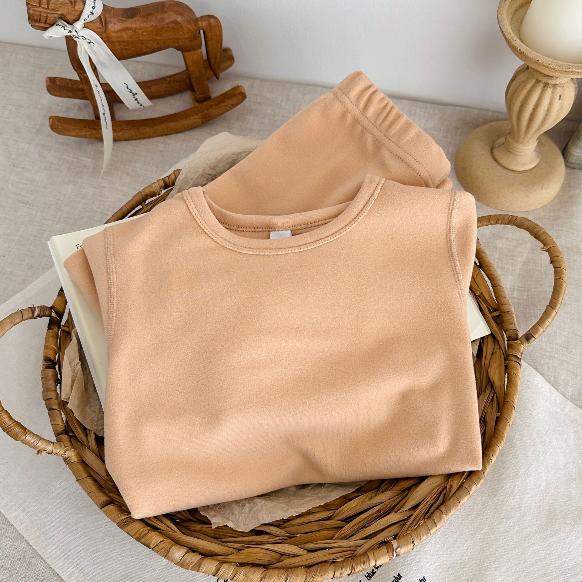 아동복 2025 겨울 남아 여아 한국 스타일 단색 무봉제 홈웨어 어린이 부드럽고 탄력 있는 잠옷 세트스토어 가기
