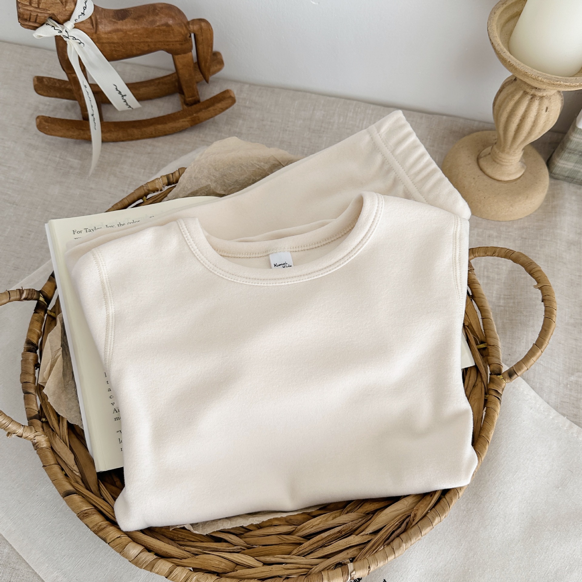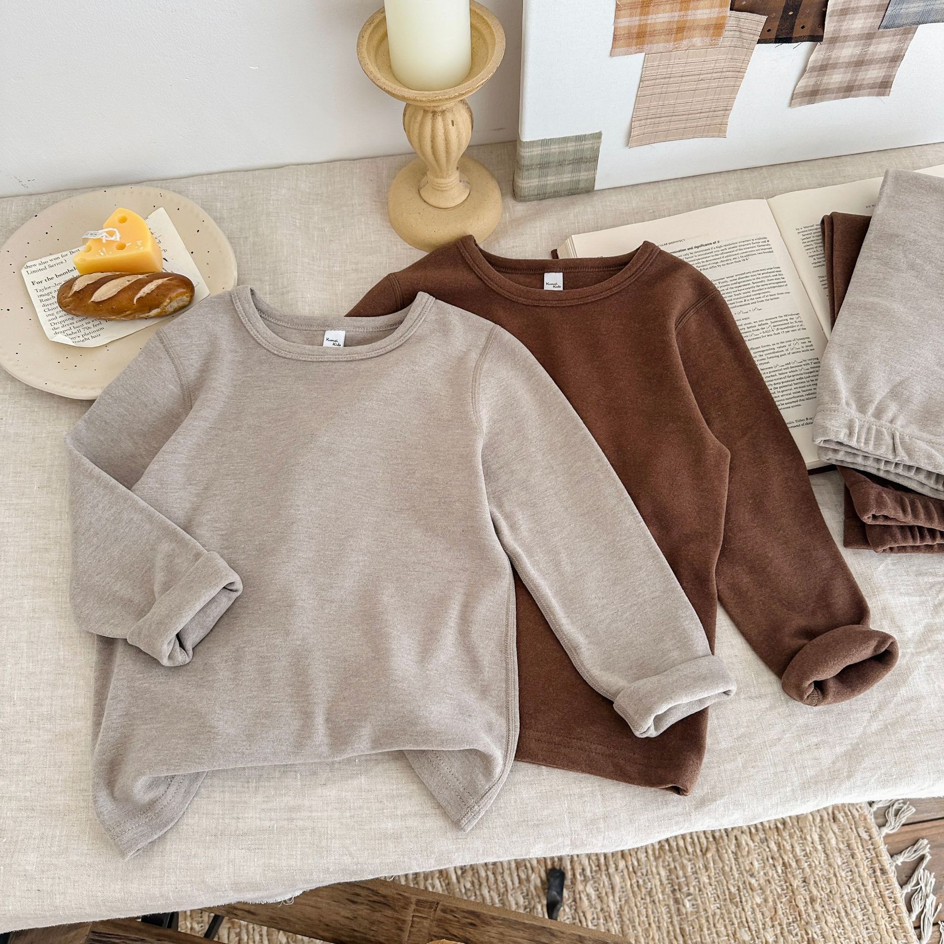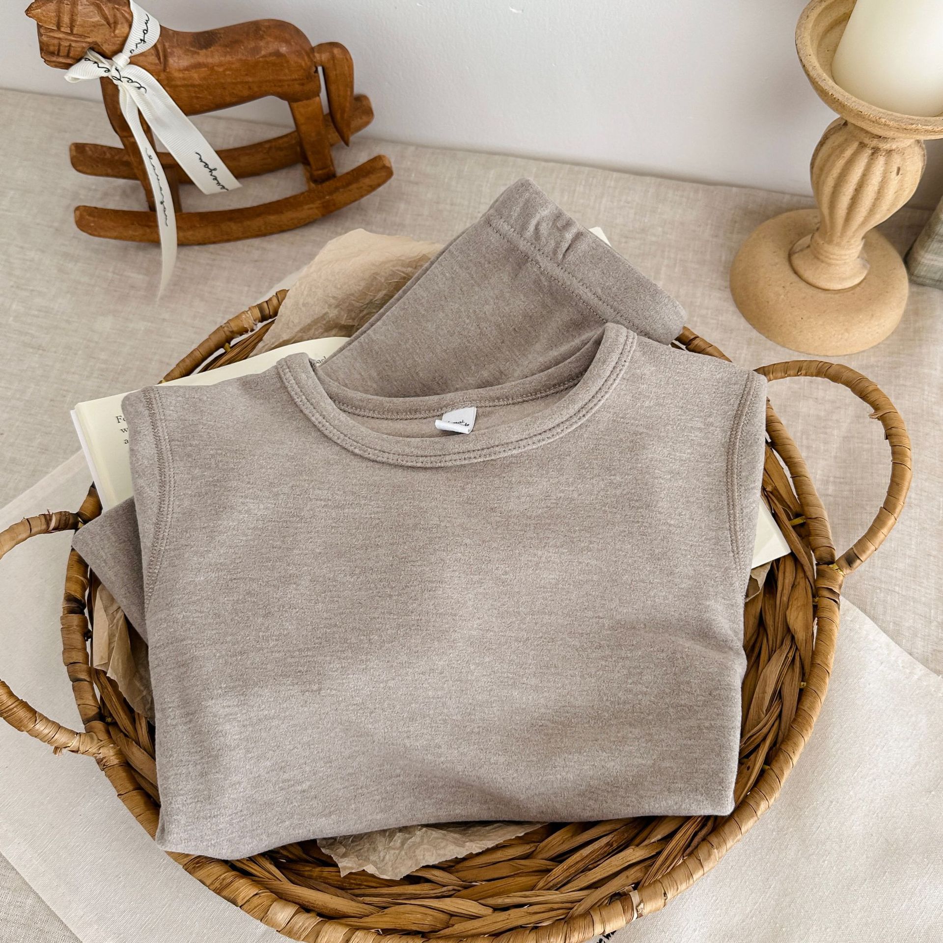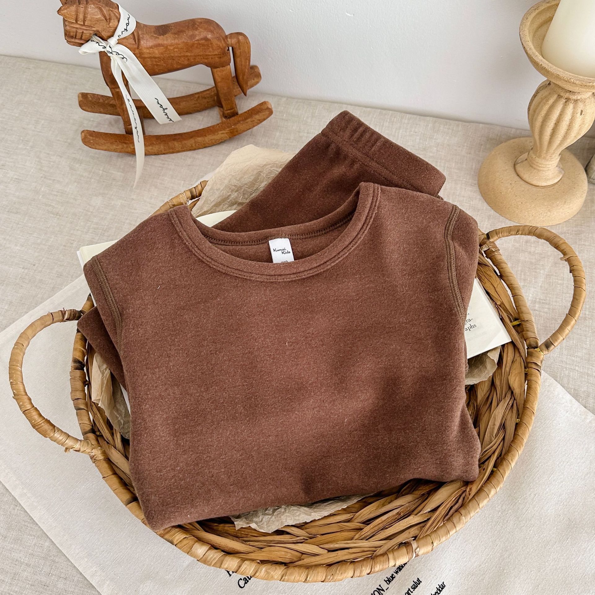 아동복 2025 겨울 남아 여아 한국 스타일 단색 무봉제 홈웨어 어린이 부드럽고 탄력 있는 잠옷 세트