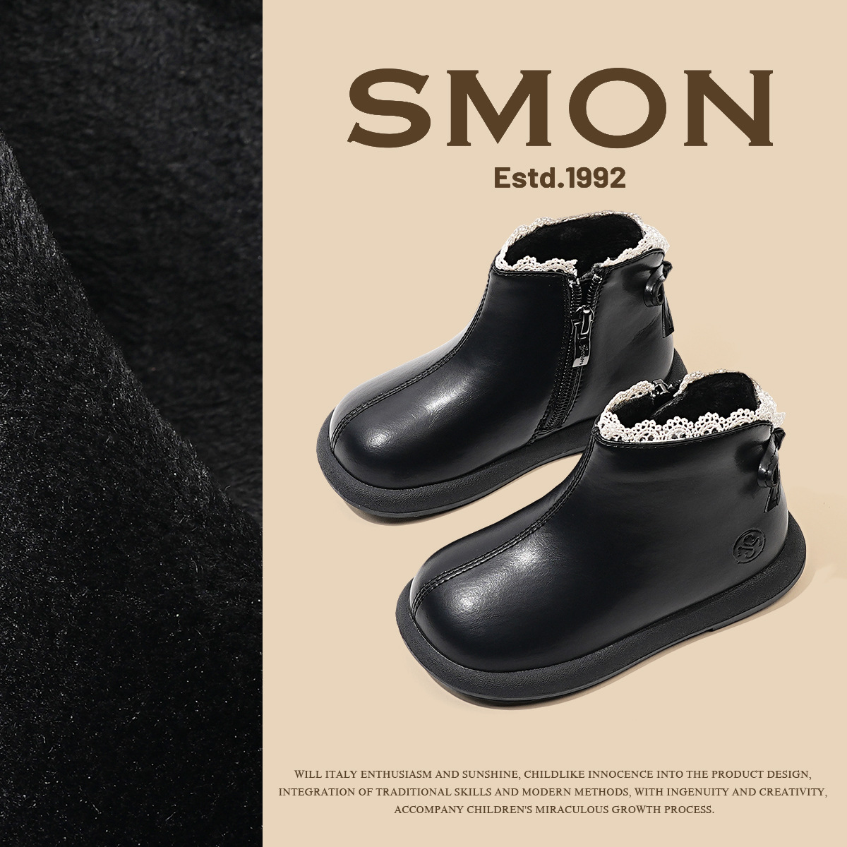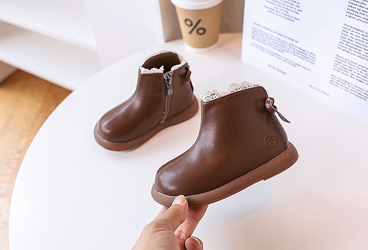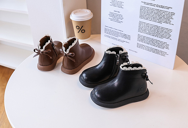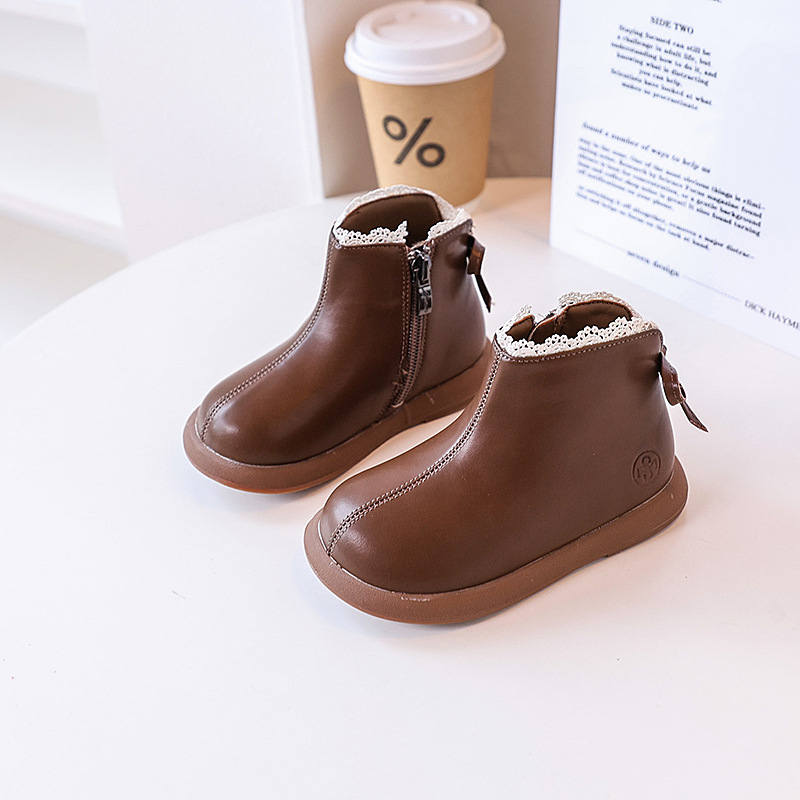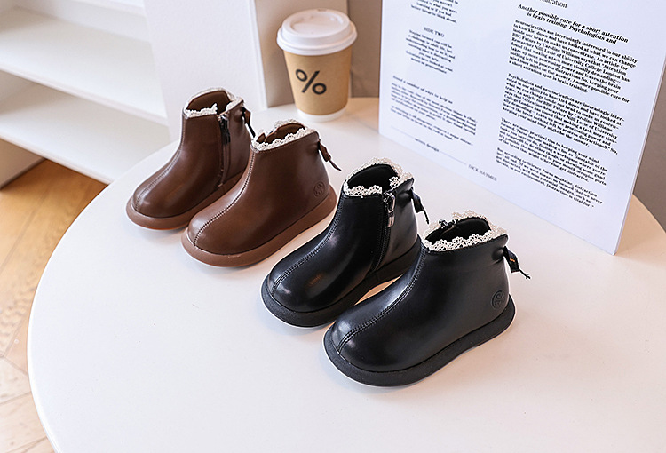 2024 년 소녀 가죽 부츠 2024 가을과 겨울 새 기모 따뜻한 면화 부츠 어린이 아기 짧은 부츠 어린이 싱글 부츠스토어 가기
