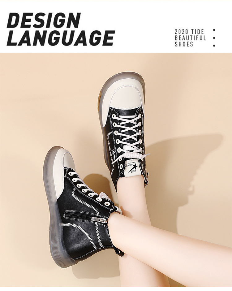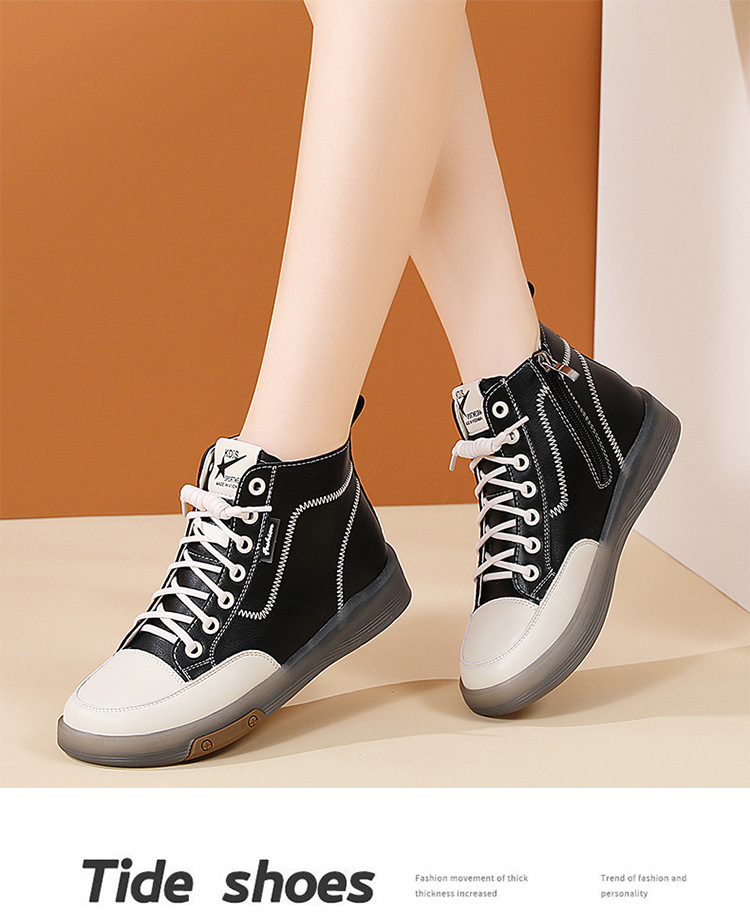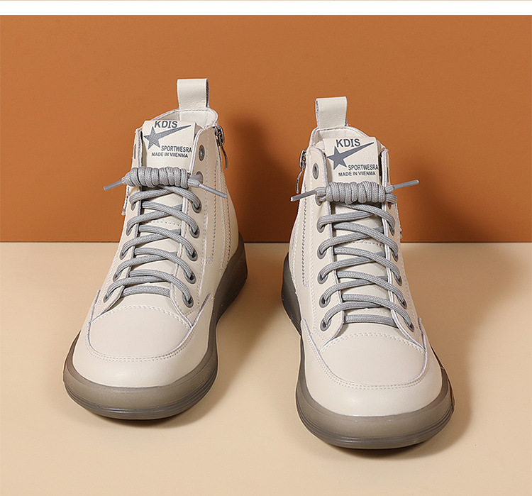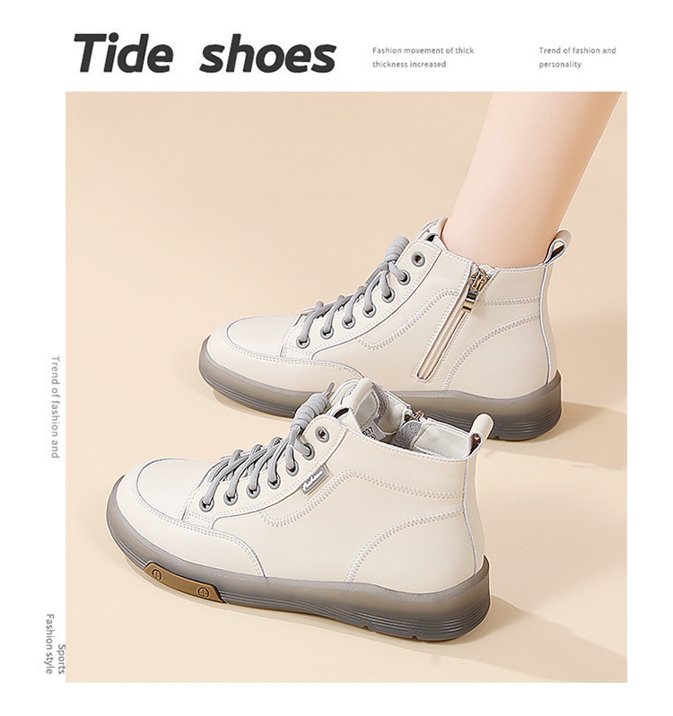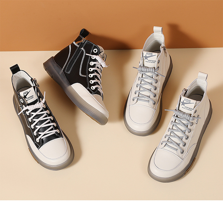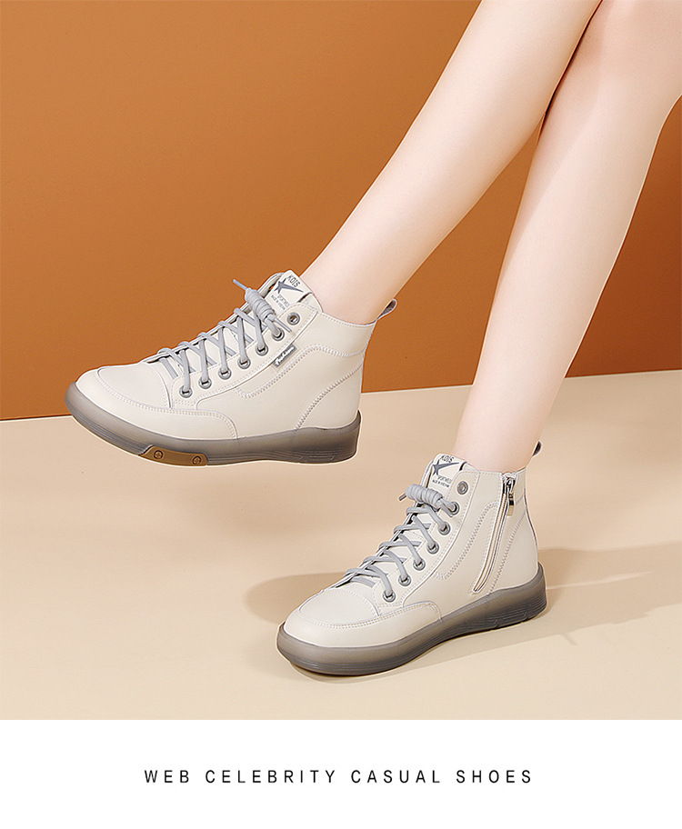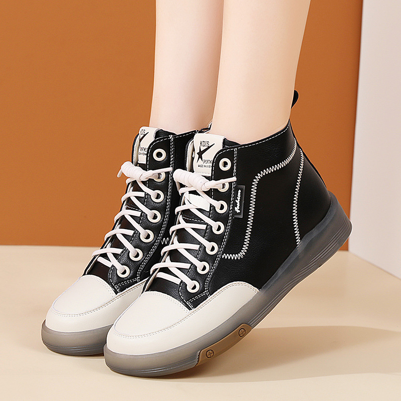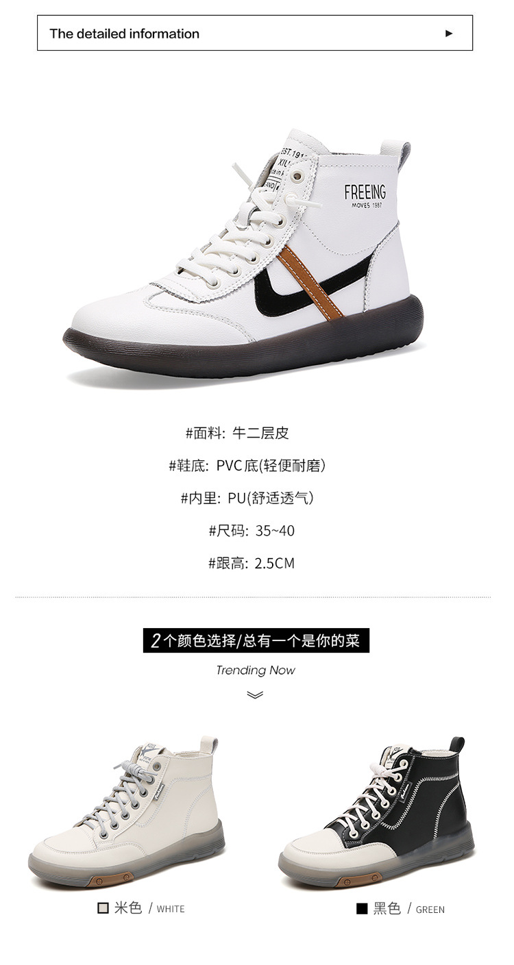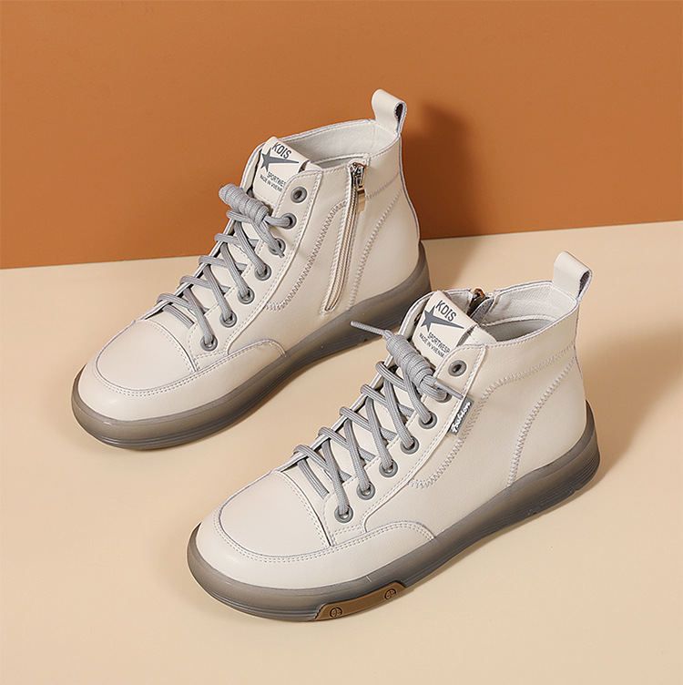 화이트 슈즈 여성의 2024 봄 새로운 정품 가죽 부드러운 밑창 플랫 스포츠 캐주얼 스니커즈 편안한 하이 탑 비프 신발스토어 가기