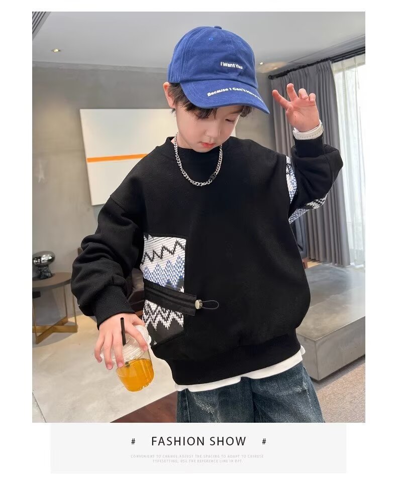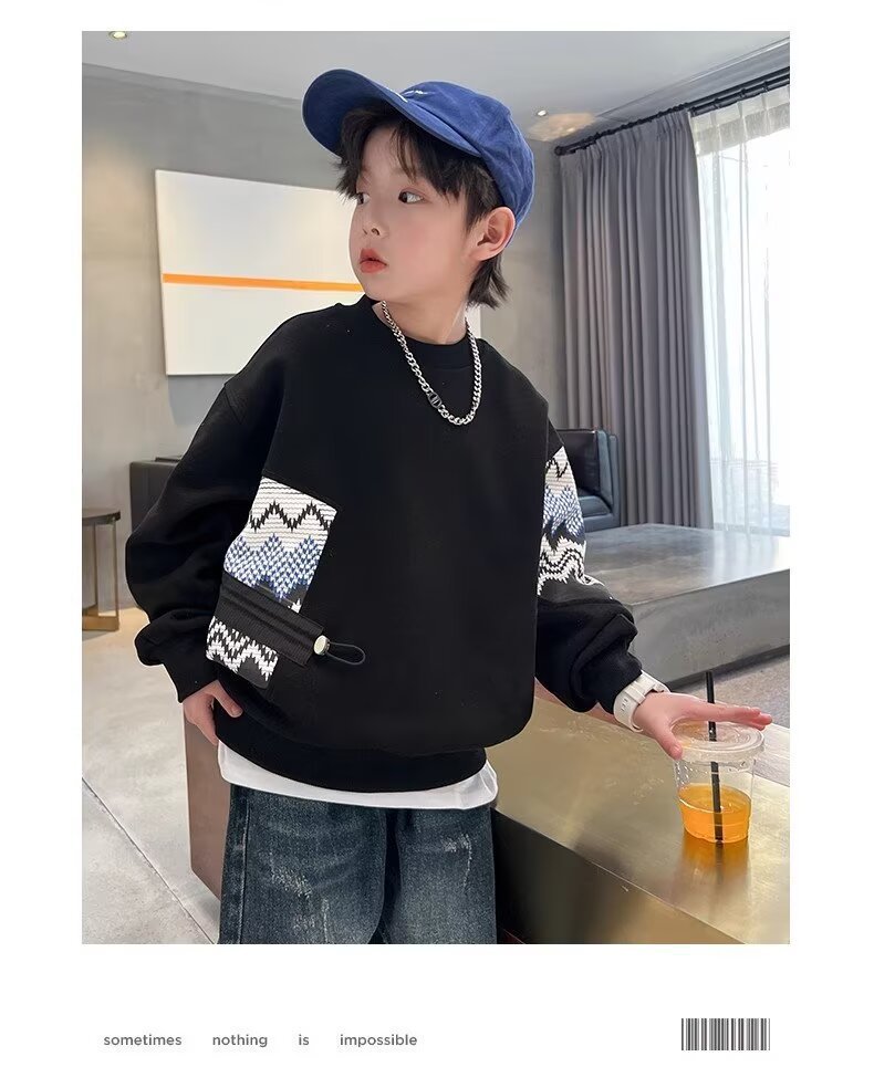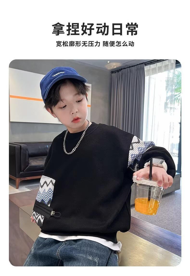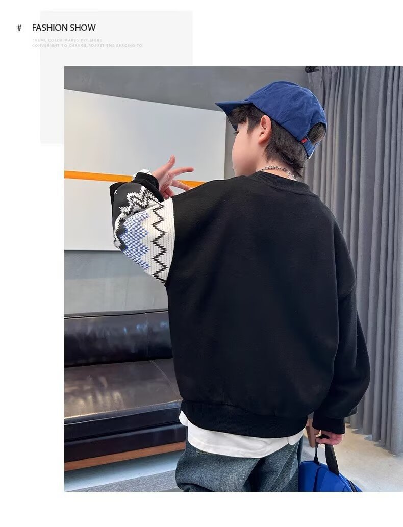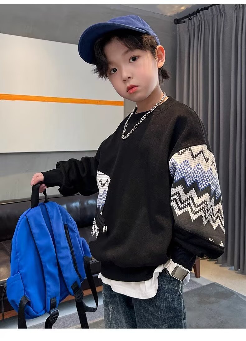 남학생 스웨터 기모 가을과 겨울 2024 새로운 어린이 서양식 탑 미드 빅 소년의 가을베이스 셔츠 트렌디스토어 가기