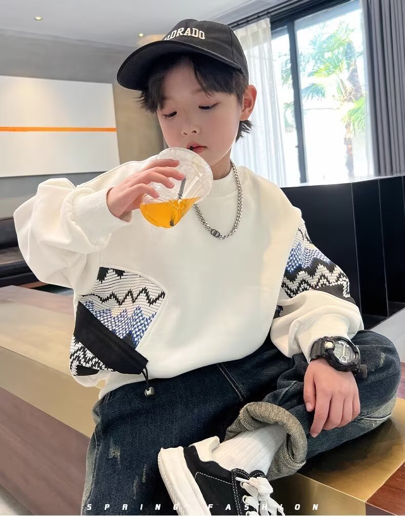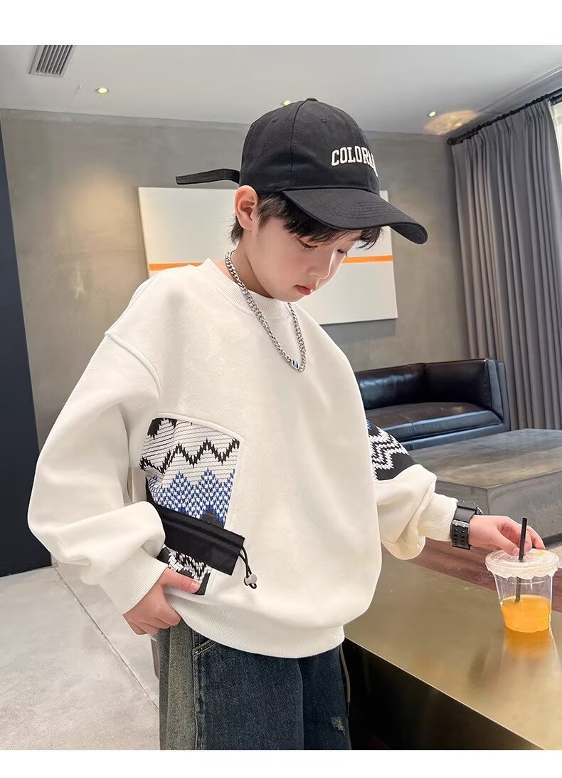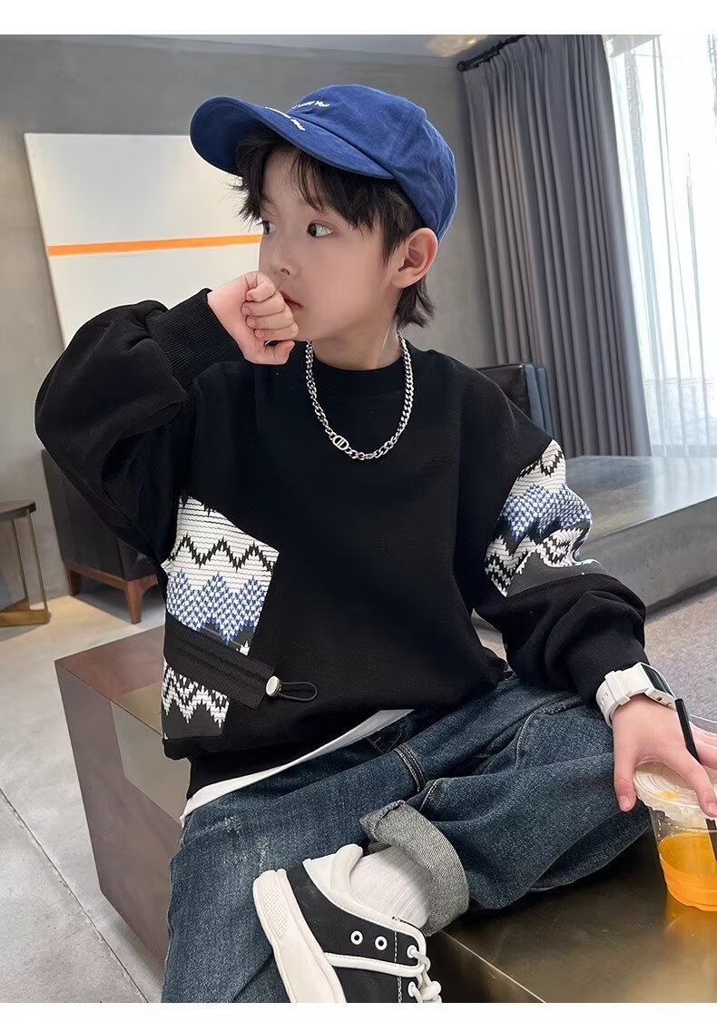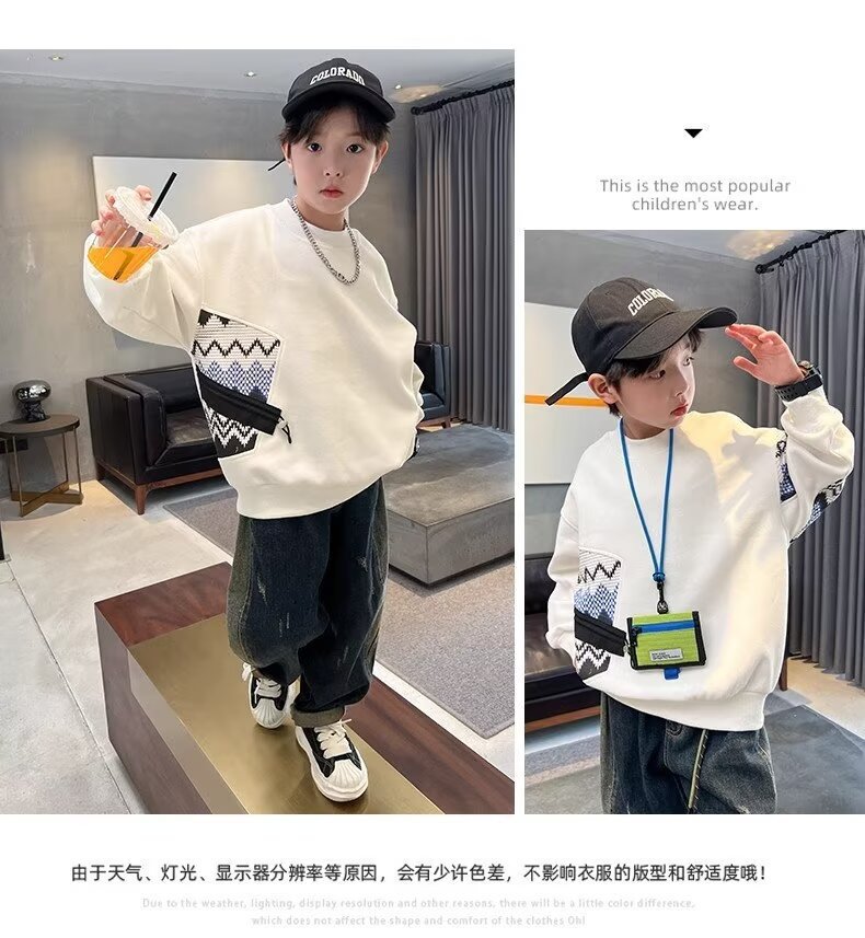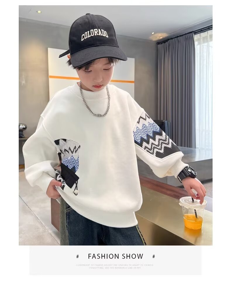 남학생 스웨터 기모 가을과 겨울 2024 새로운 어린이 서양식 탑 미드 빅 소년의 가을베이스 셔츠 트렌디스토어 가기