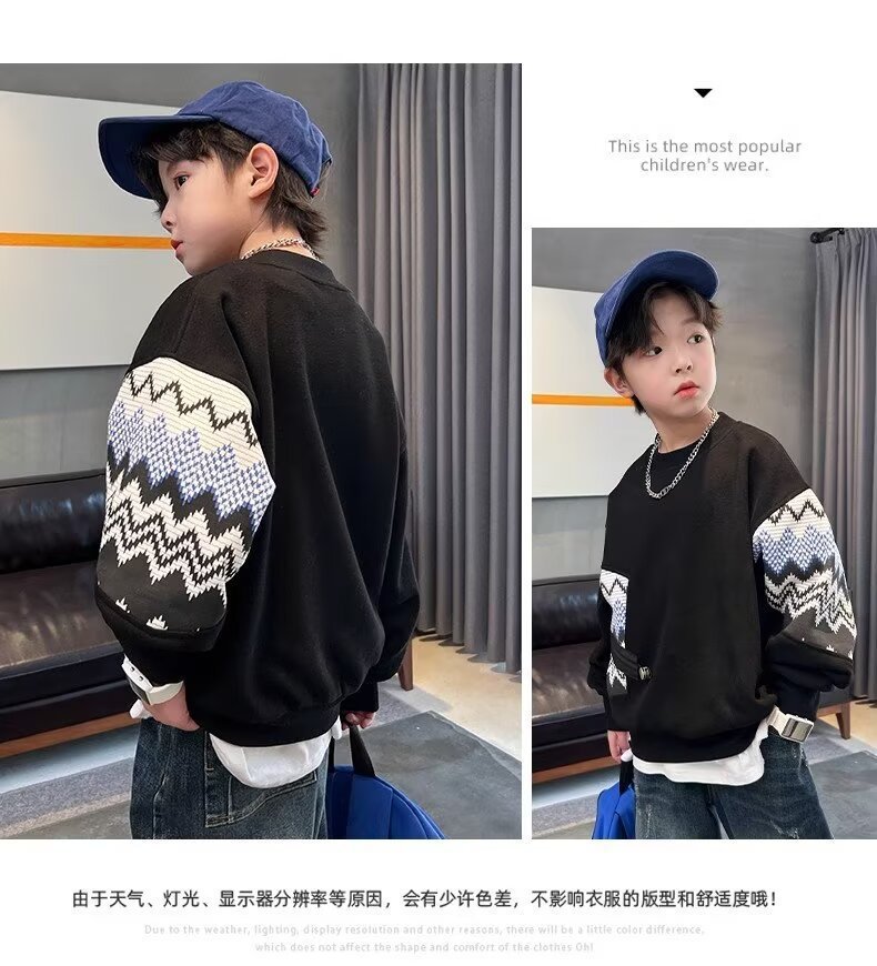 남학생 스웨터 기모 가을과 겨울 2024 새로운 어린이 서양식 탑 미드 빅 소년의 가을베이스 셔츠 트렌디