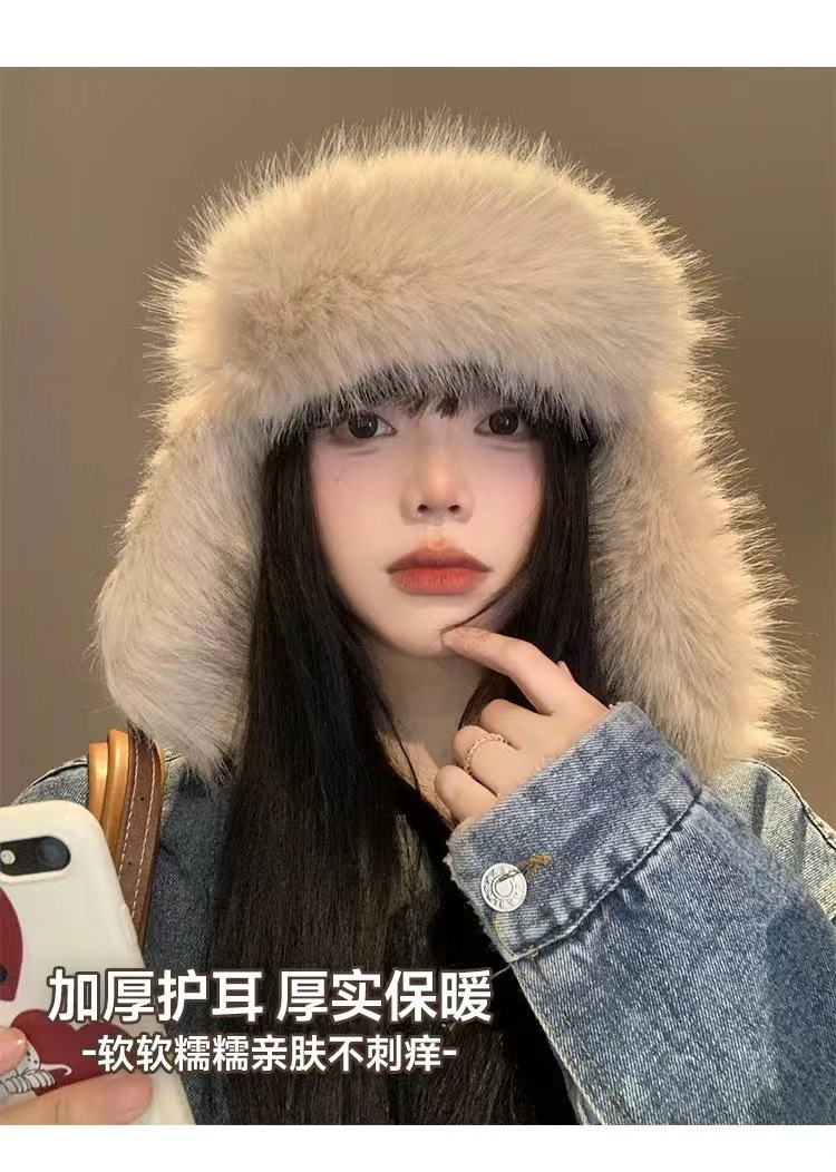 별 봉제 Lei Feng Hat 여성의 겨울 전기 자동차 방풍 가죽 귀 보호 모자 기모 두꺼운 따뜻한 동북 모자스토어 가기