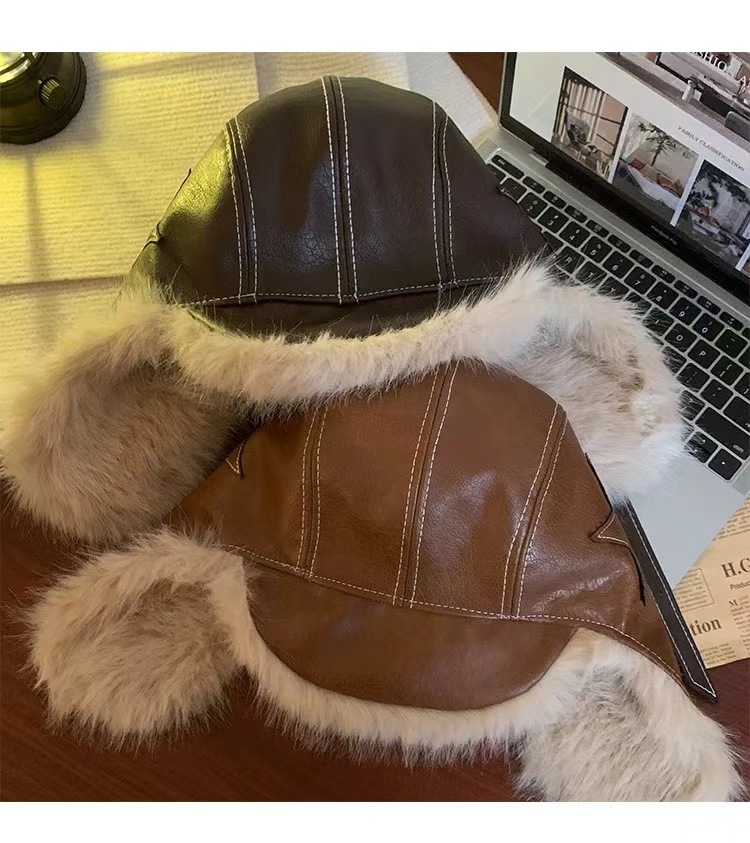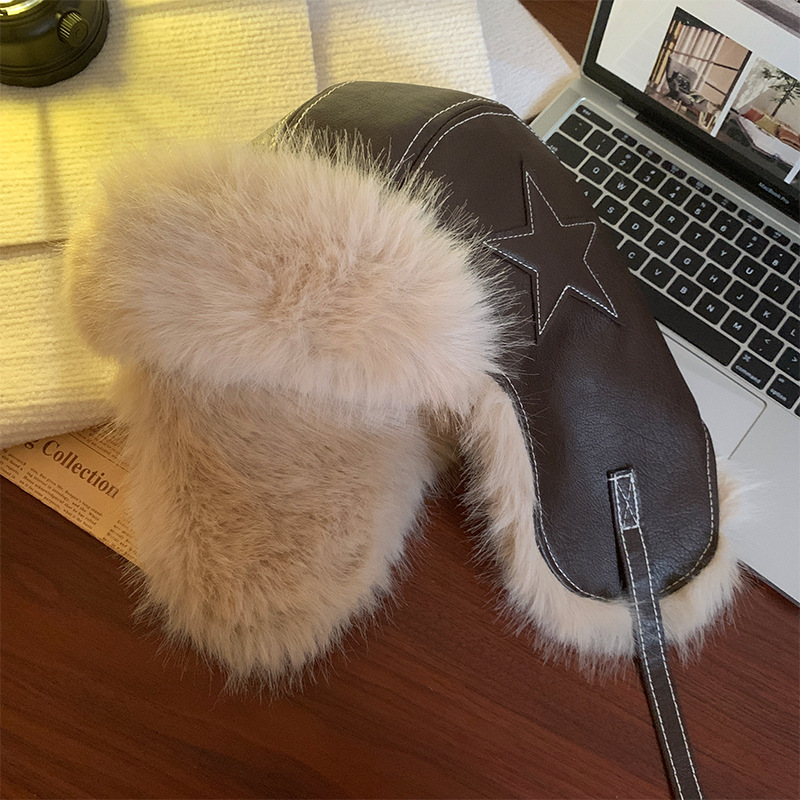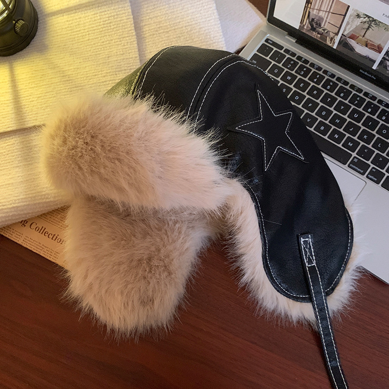 별 봉제 Lei Feng Hat 여성의 겨울 전기 자동차 방풍 가죽 귀 보호 모자 기모 두꺼운 따뜻한 동북 모자